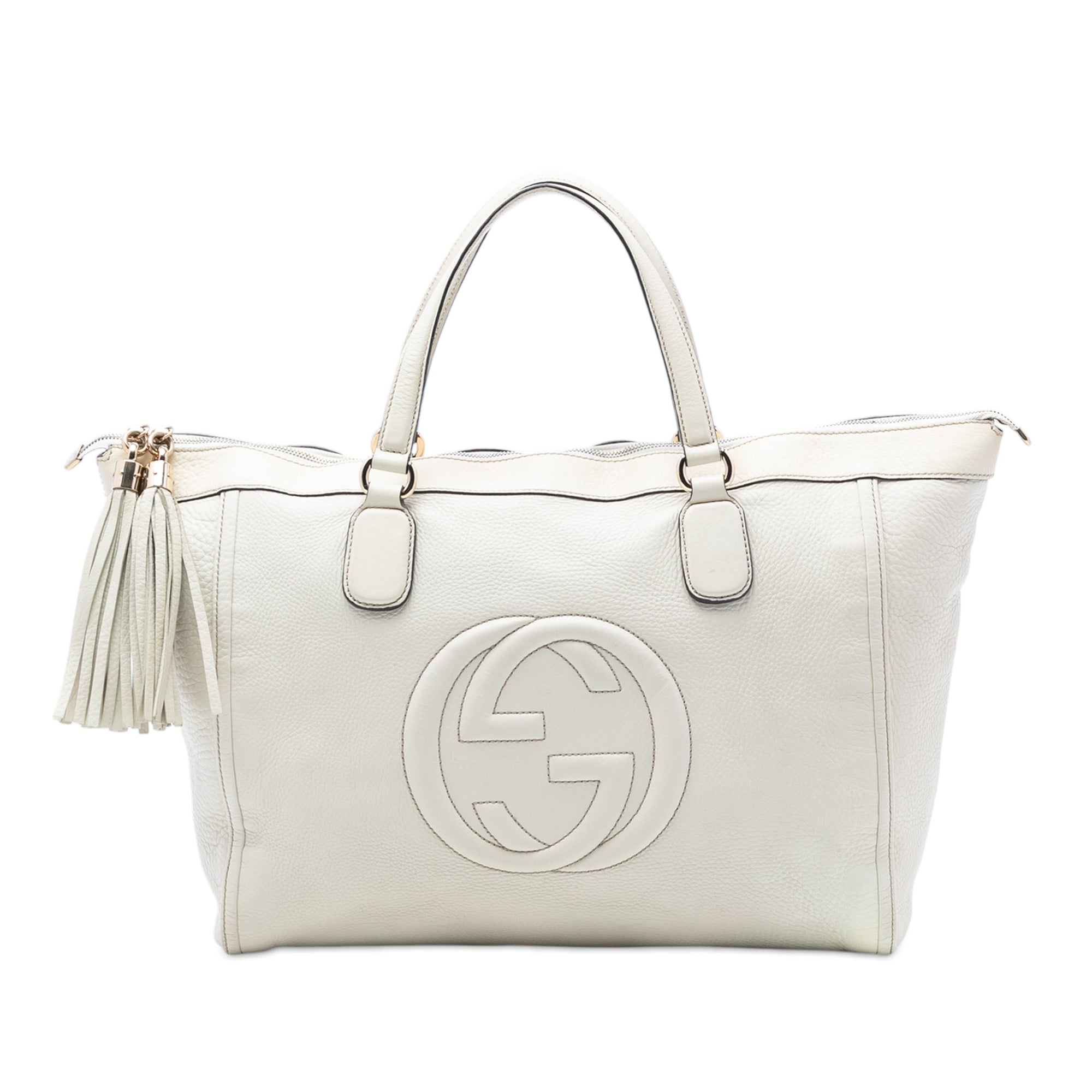 Please note this is a pre-owned item that may display signs of wear consistent with the condition listed above and shown in photos. Designer Revival guarantees this is an authentic White Gucci Large Leather Soho Working Tote or 100% of your money back. Learn more about our authentication process.
