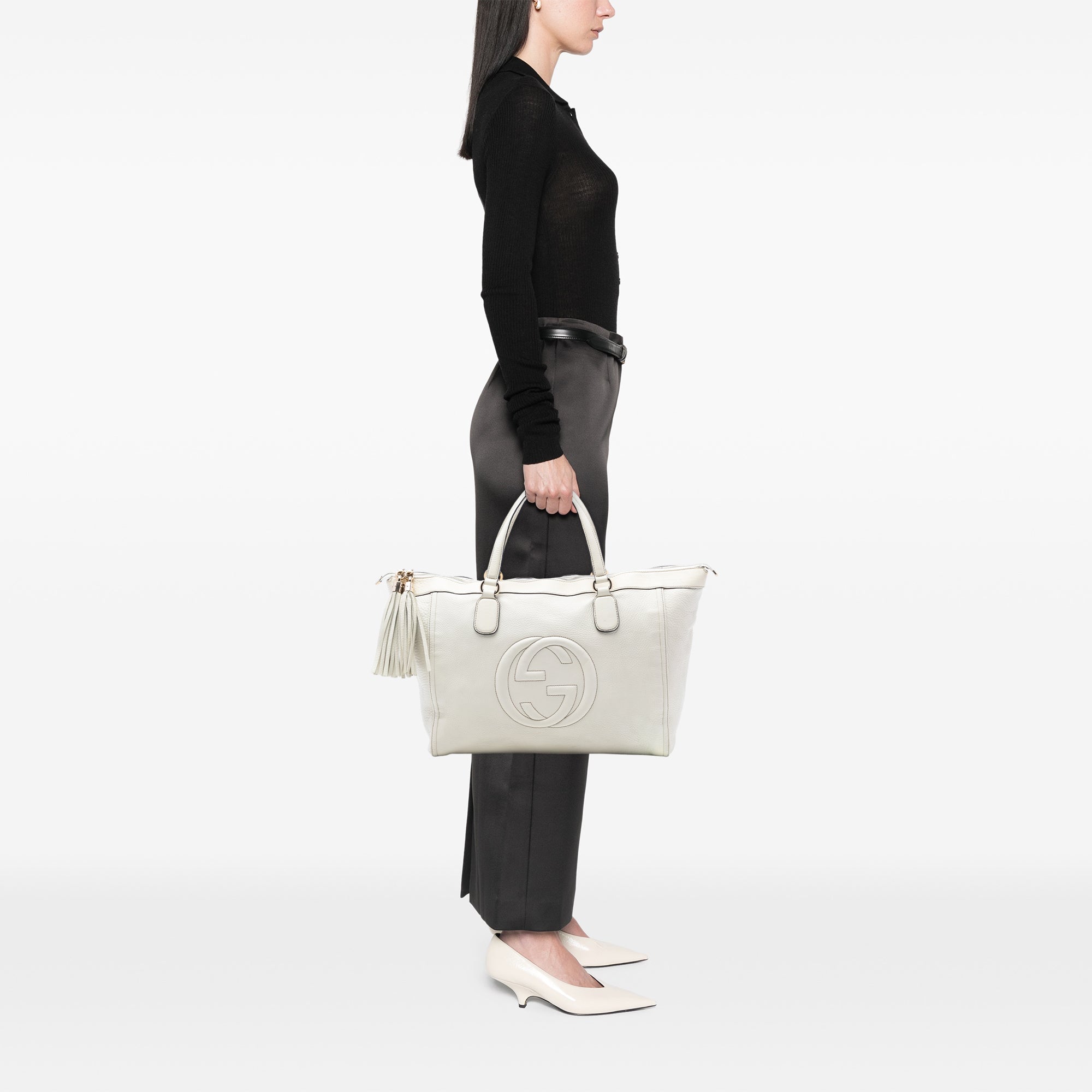 White Gucci Large Leather Soho Working Tote