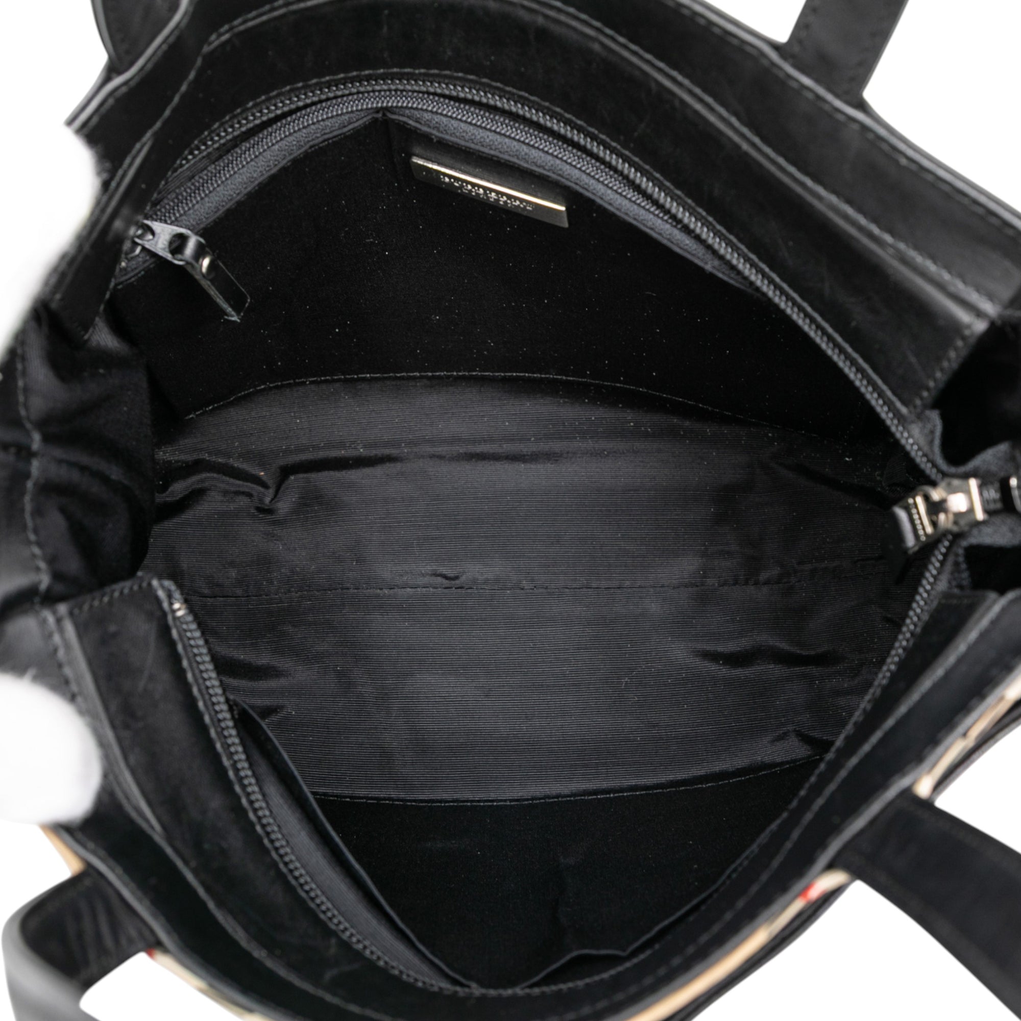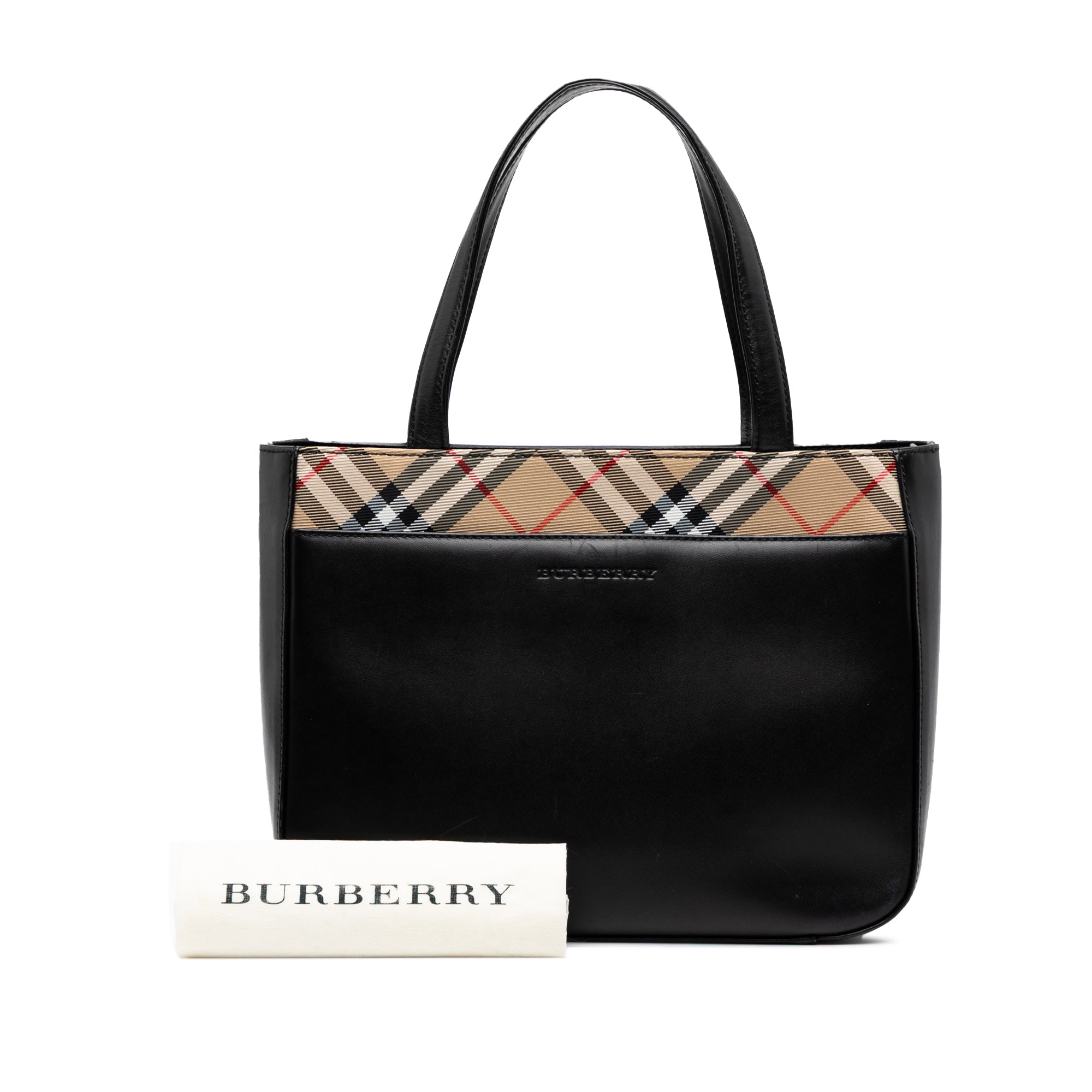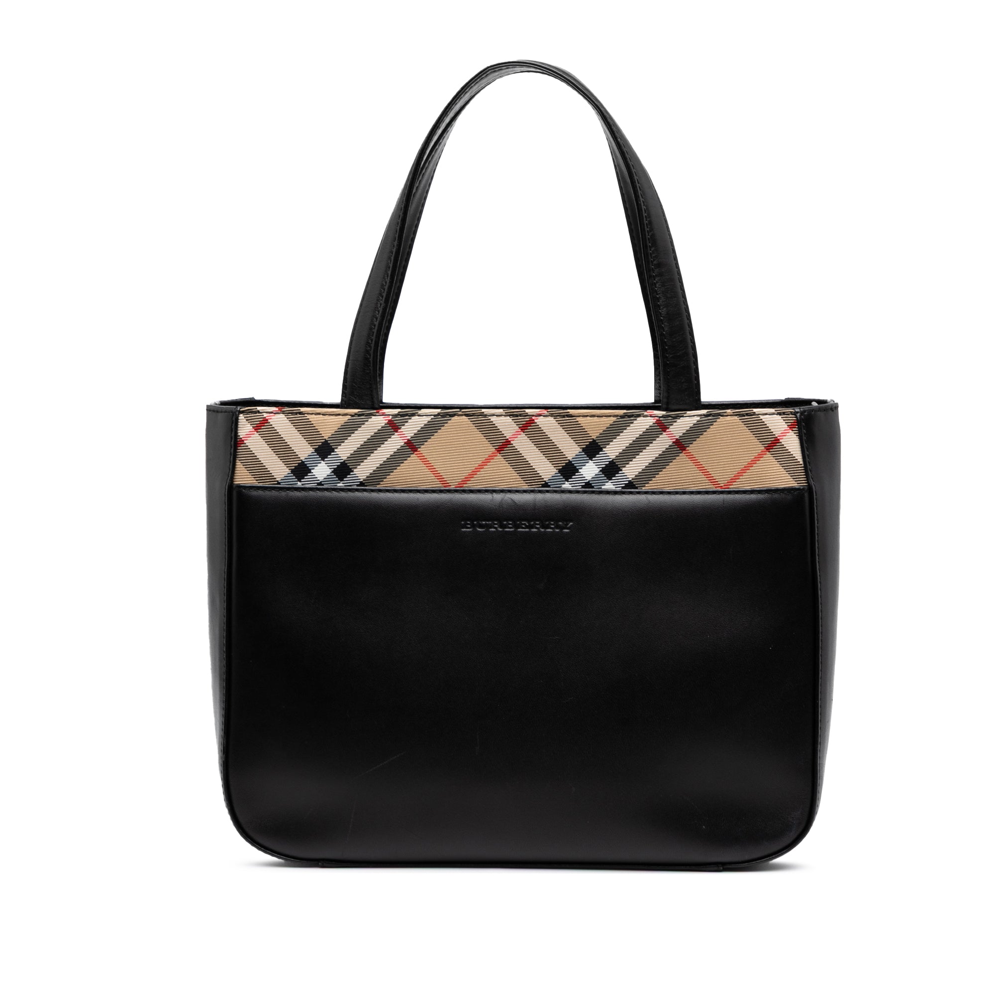 Black Burberry Nova Check Canvas Trimmed Leather Handbag