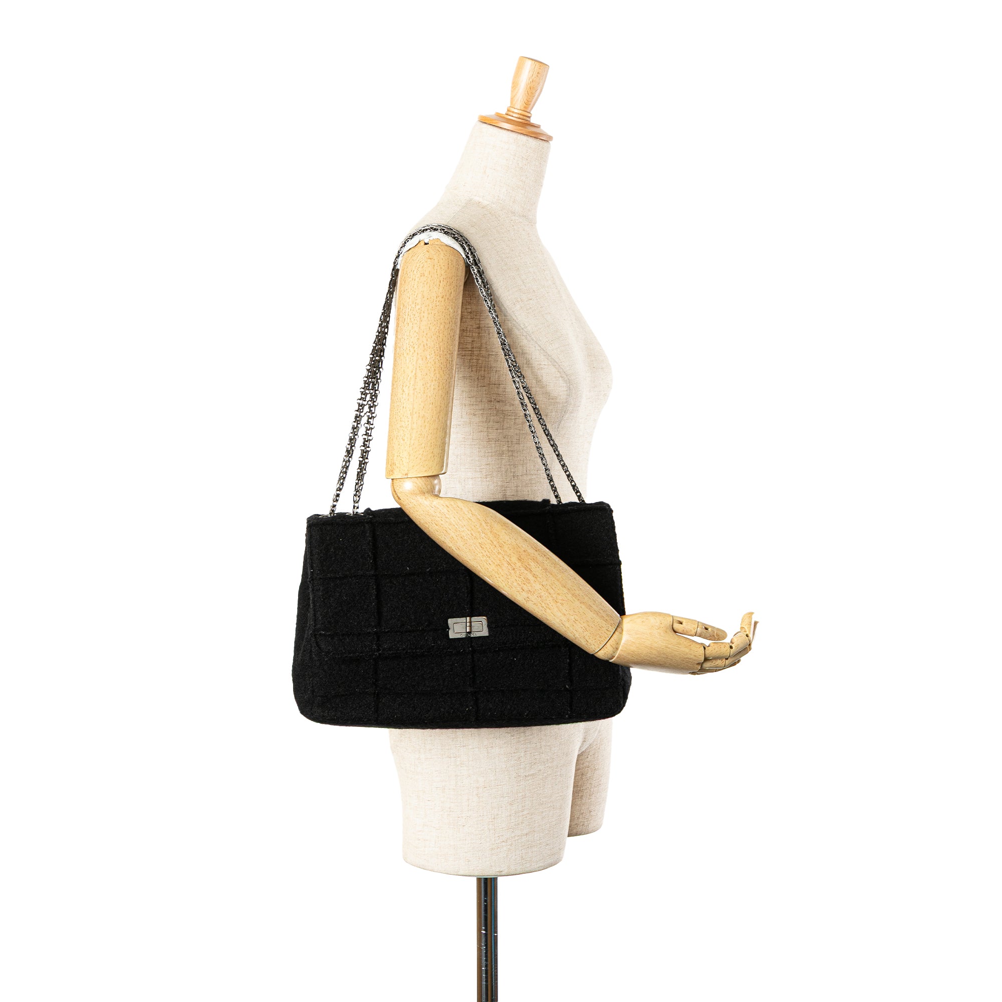 Black Chanel Jumbo Reissue 2.55 Choco Bar Wool Felt Identification Flap Shoulder Bag