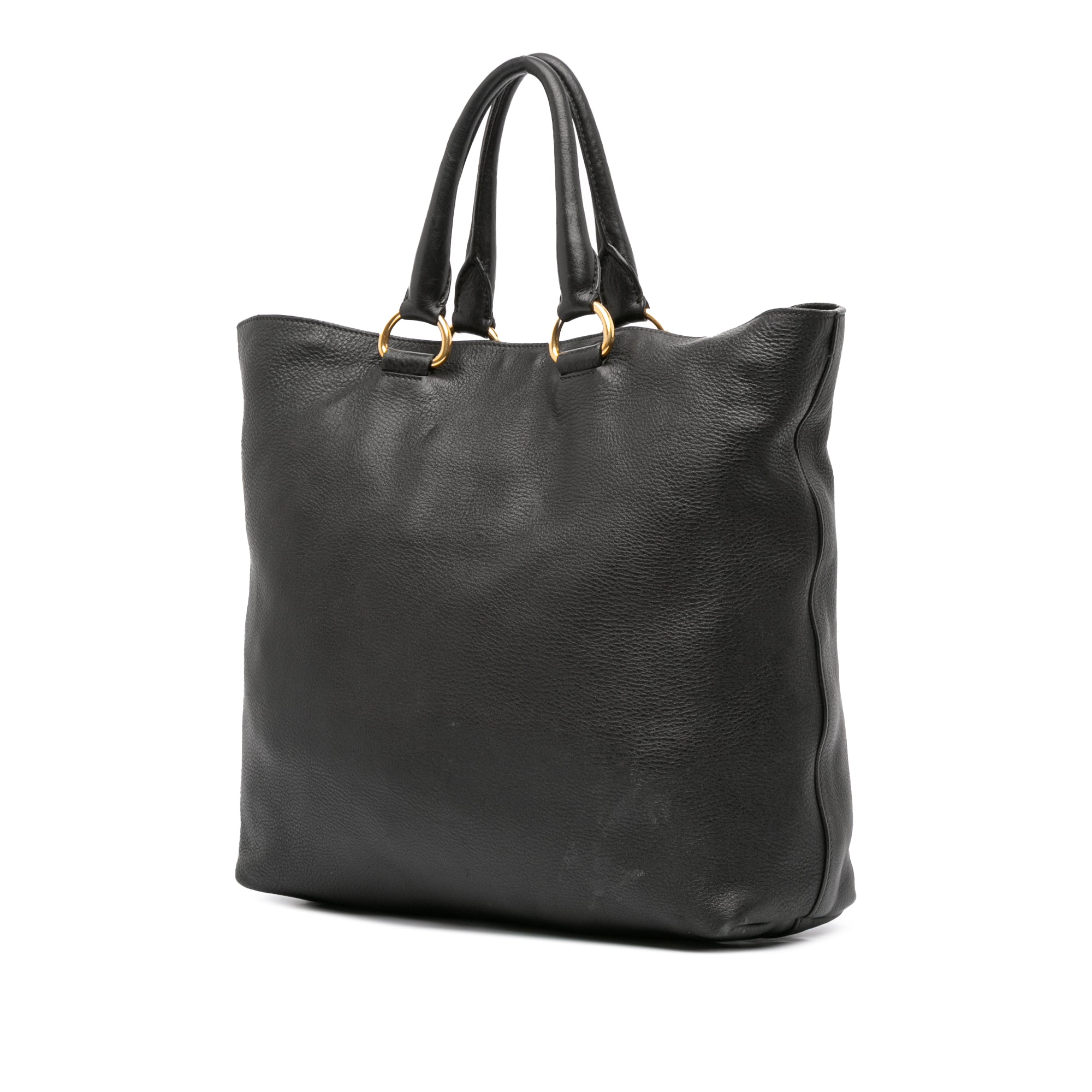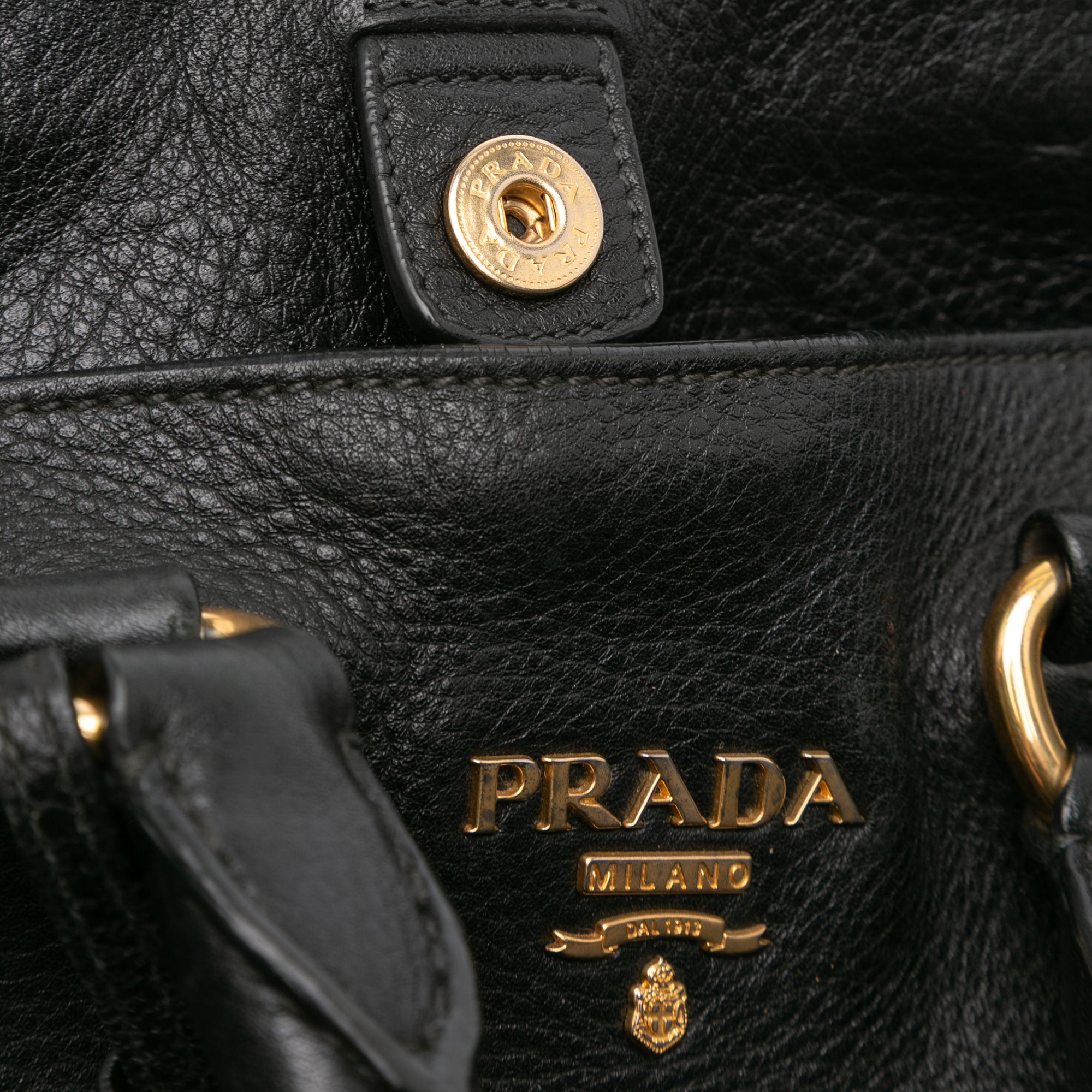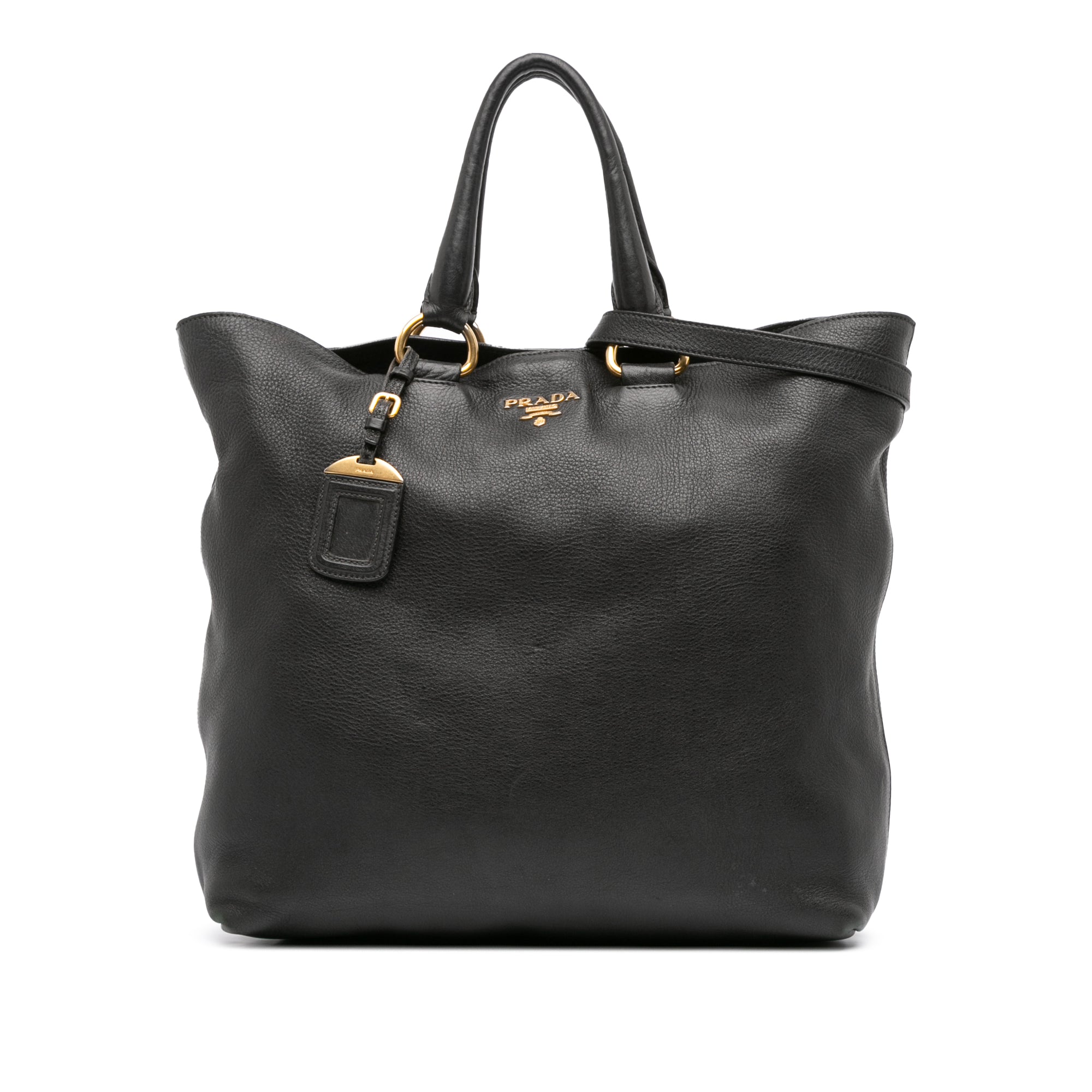 Black Prada Vitello Daino Open Convertible Tote Satchel