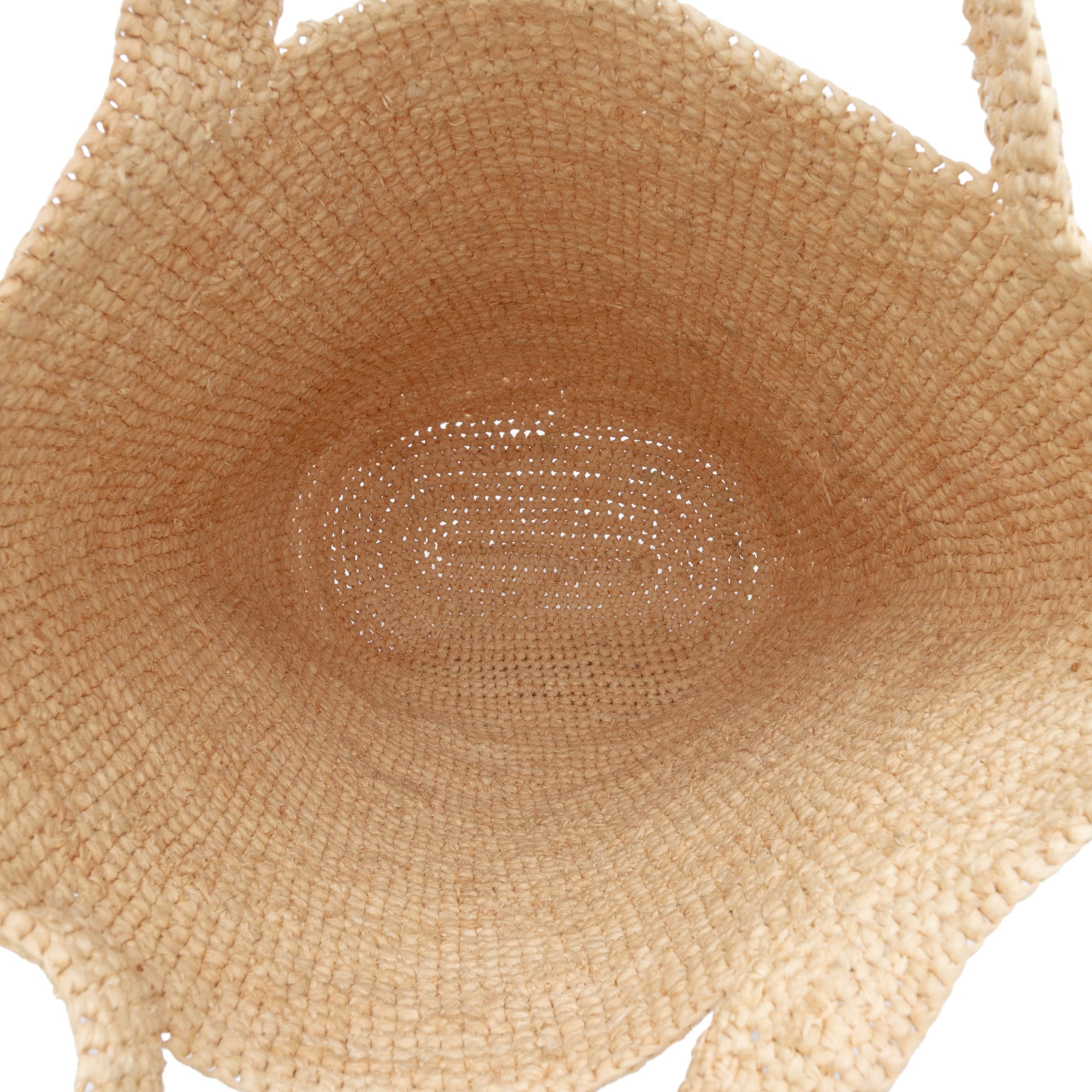 Product Details: Brown LOEWE Mini Raffia Slit Satchel. This satchel features a raffia body, flat handles, a detachable flat canvas strap, and an open top. 11.8" L x 11.4" W x 4.3" D, 5.5" drop. Serial number 652320.