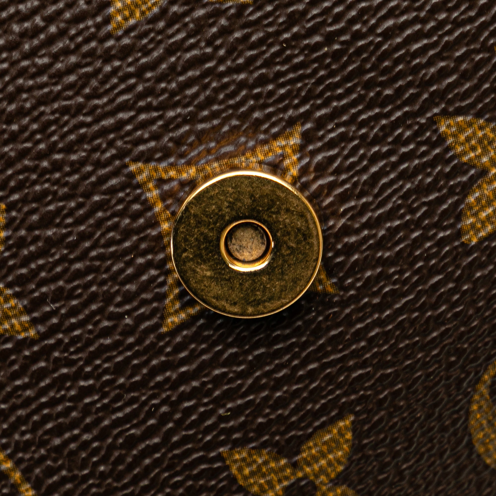 Product Details: Brown Louis Vuitton Monogram Musette Salsa Short Strap Shoulder Bag. The Musette Salsa features a monogram canvas body, an adjustable flat vachetta shoulder strap, a front flap with a magnetic closure, and an interior slip pocket. 9.4" L x 7.9" W x 1.6" D. Serial number AS1000.