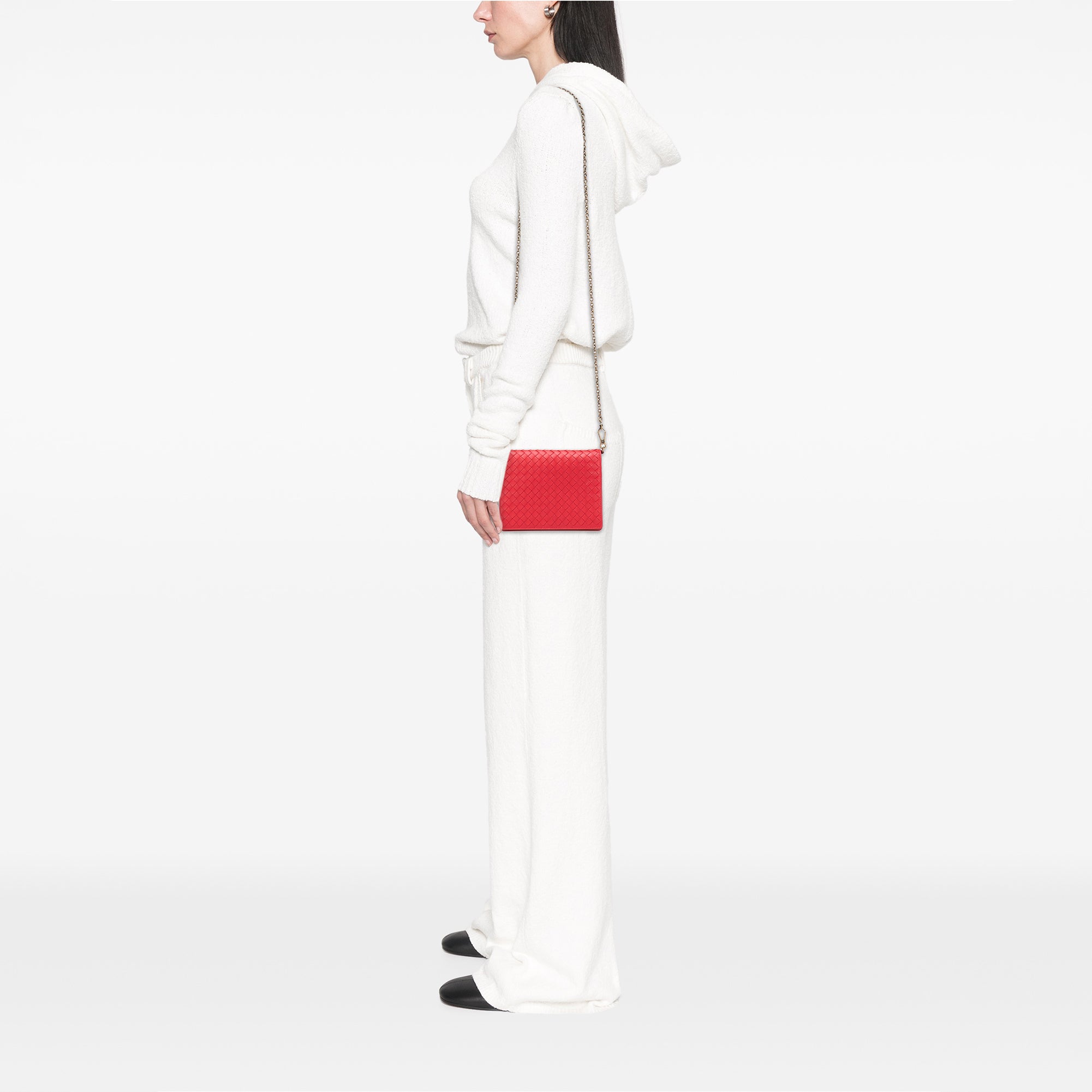 Red Bottega Veneta Nappa Intrecciato Wallet On Chain Crossbody Bag