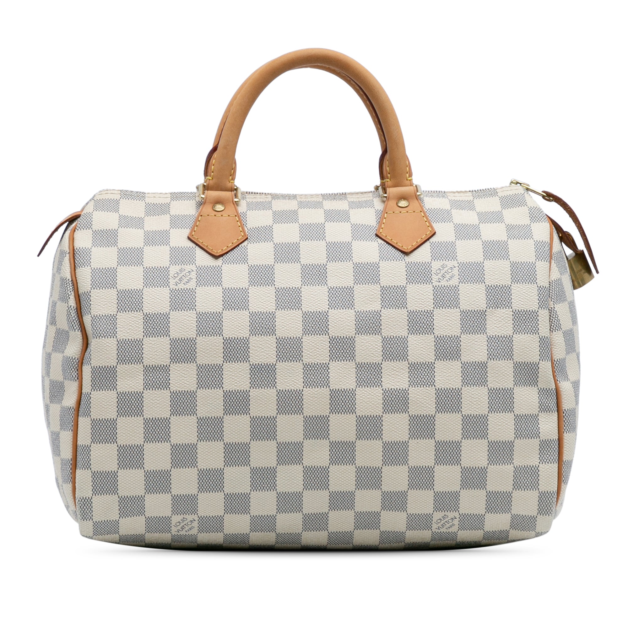Please note this is a pre-owned item that may display signs of wear consistent with the condition listed above and shown in photos. Designer Revival guarantees this is an authentic White Louis Vuitton Damier Azur Speedy 30 Boston Bag or 100% of your money back. Learn more about our authentication process.