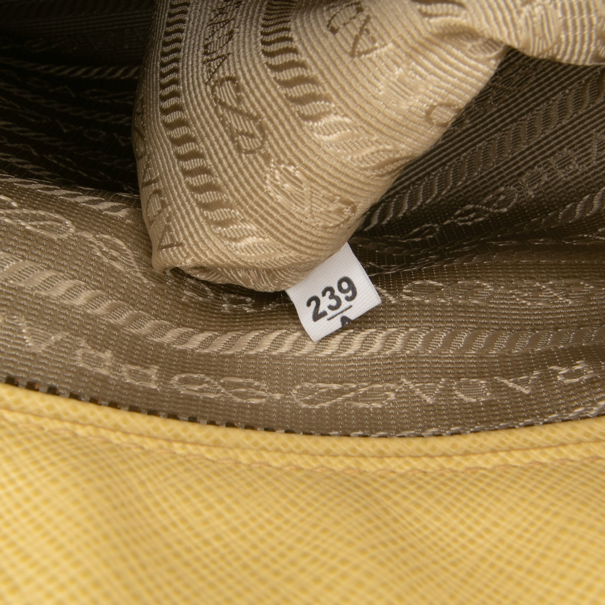 Please note this is a pre-owned item that may display signs of wear consistent with the condition listed above and shown in photos. Designer Revival guarantees this is an authentic Yellow Prada Medium Saffiano Lux Galleria Double Zip Satchel or 100% of your money back. Learn more about our authentication process.