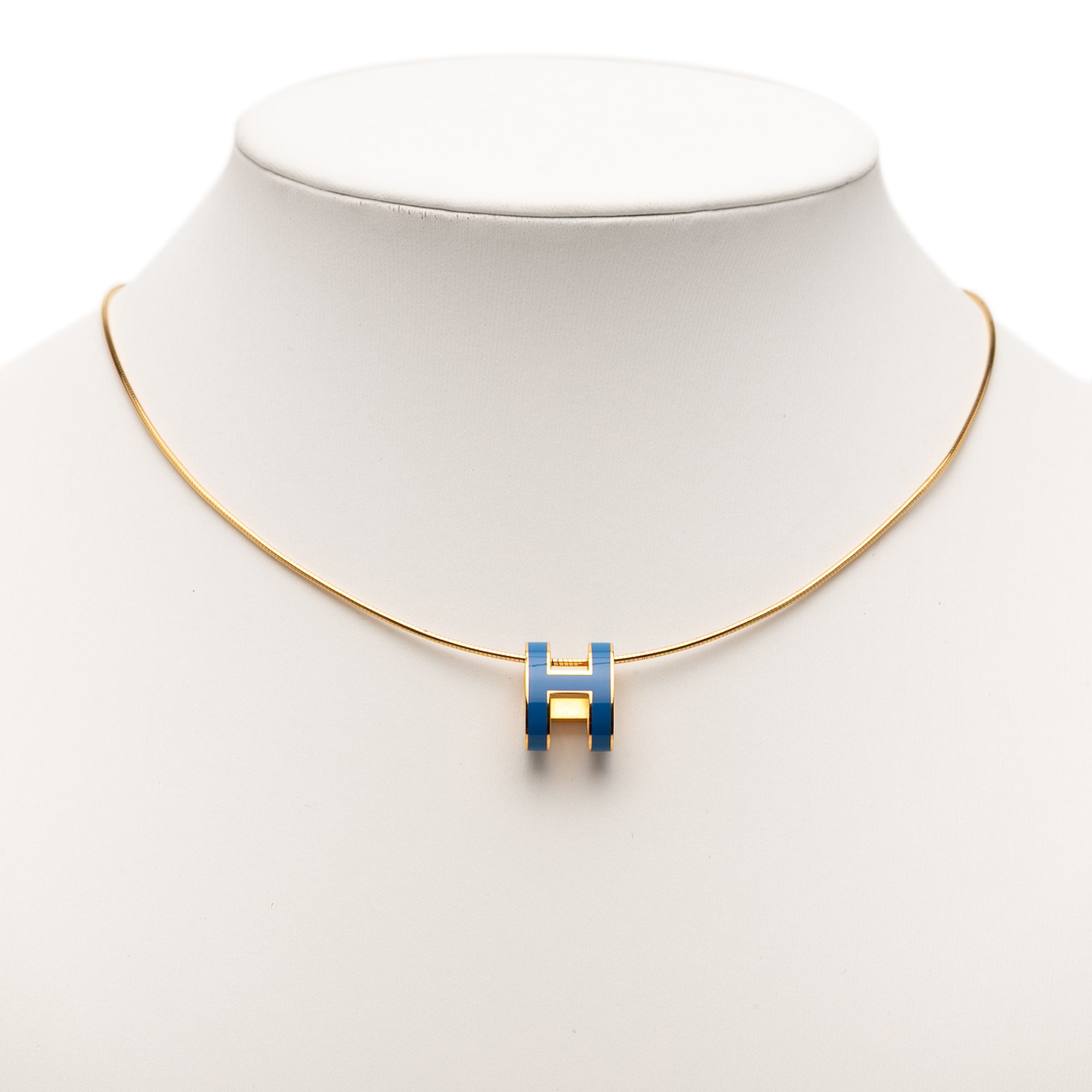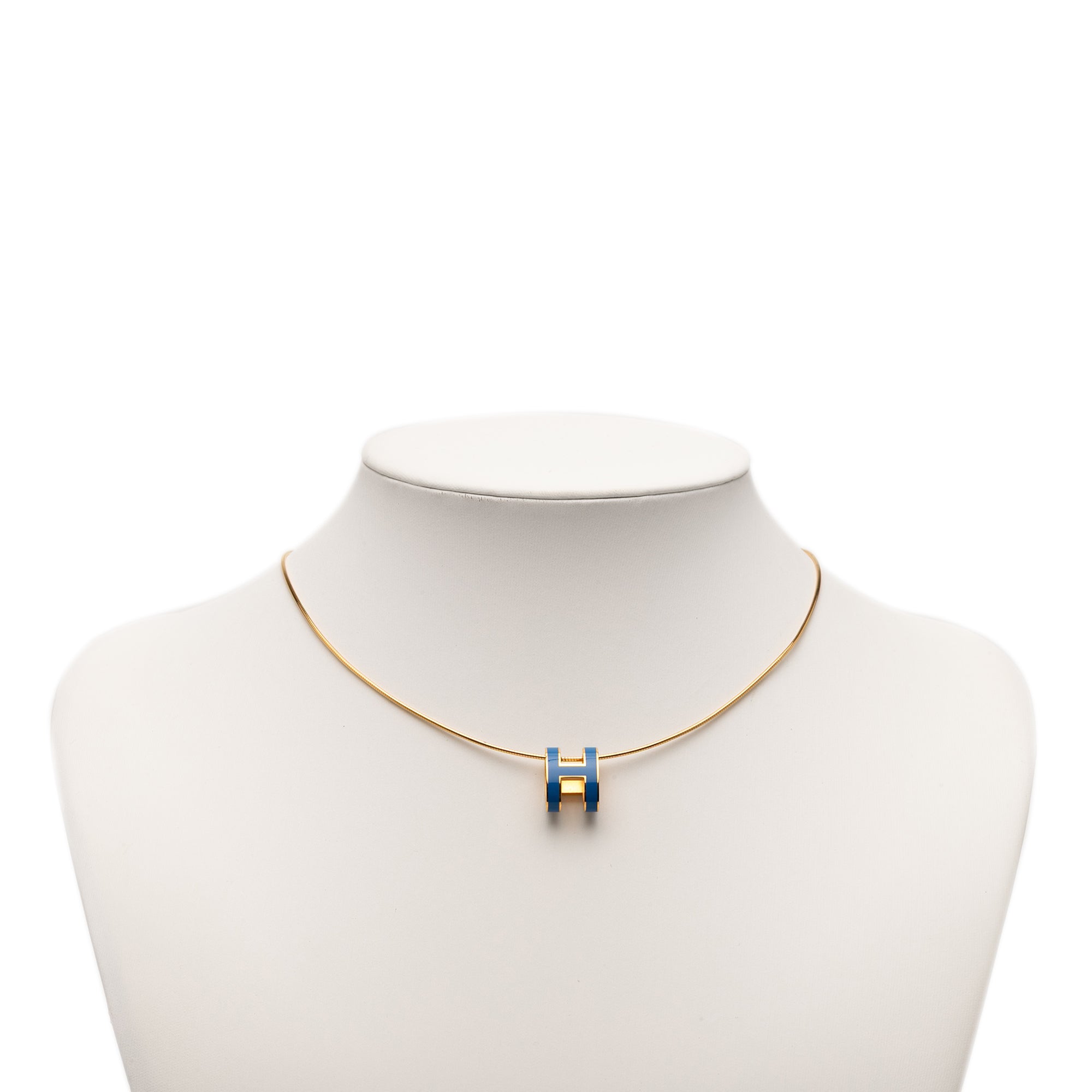 Blue Hermès Gold Plated Enamel Pop H Pendant Necklace