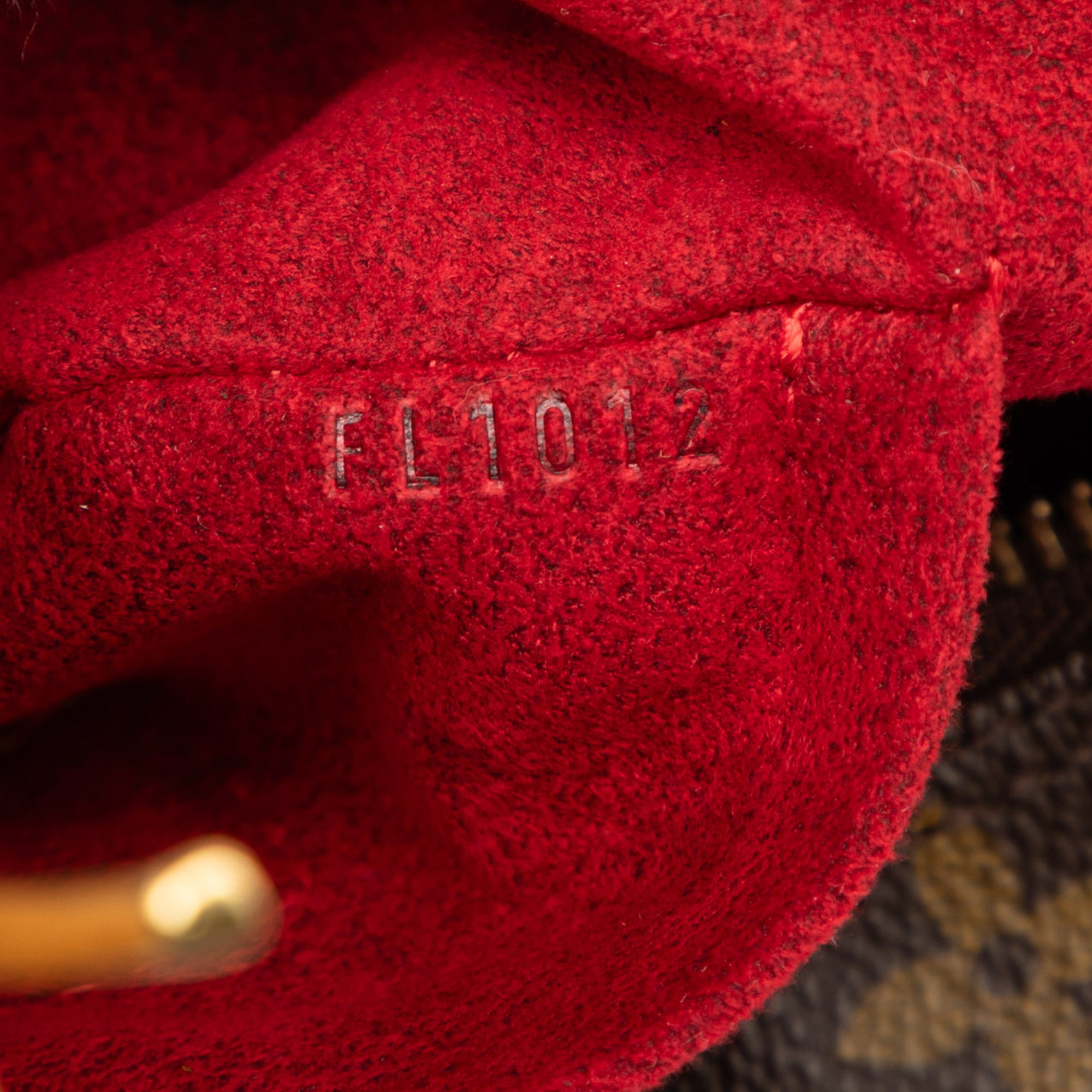 Product Details: Brown Louis Vuitton Monogram Croissant MM Hobo Bag. The Croissant MM features a monogram canvas body with vachetta leather trim, a flat vachetta leather shoulder strap, a top zip closure, and interior slip pockets. 7.5" L x 10.2" W x 2.8" D. Serial number FL1012.