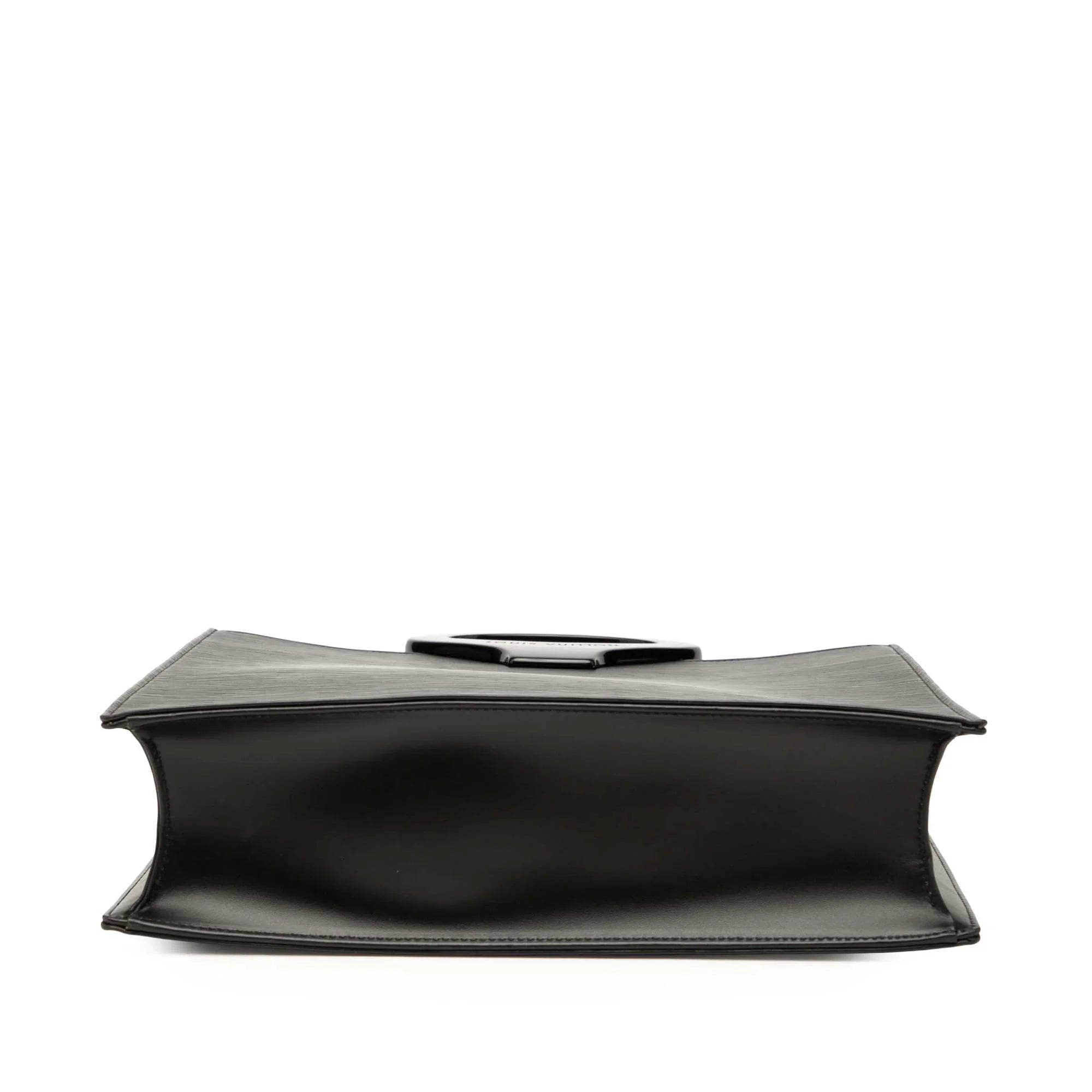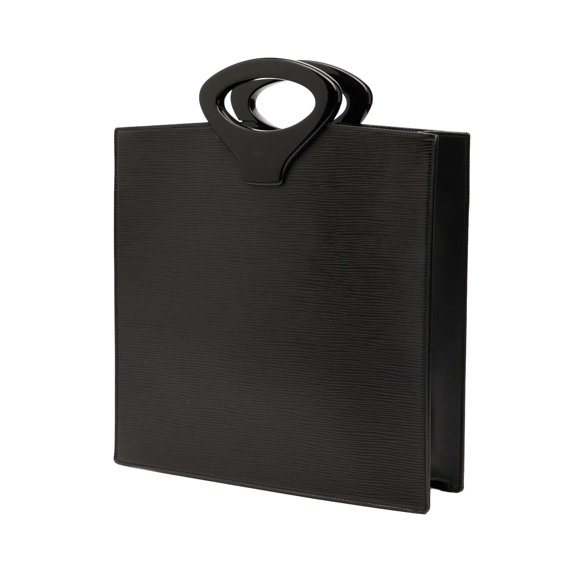 Product Details: Black Louis Vuitton Epi Ombre Tote Bag. The Ombre features an epi leather body, flat resin top handles, an open top, and an interior slip pocket. 10.8" L x 11" W x 2.8" D, 1.6" drop. Serial number MI0998.
