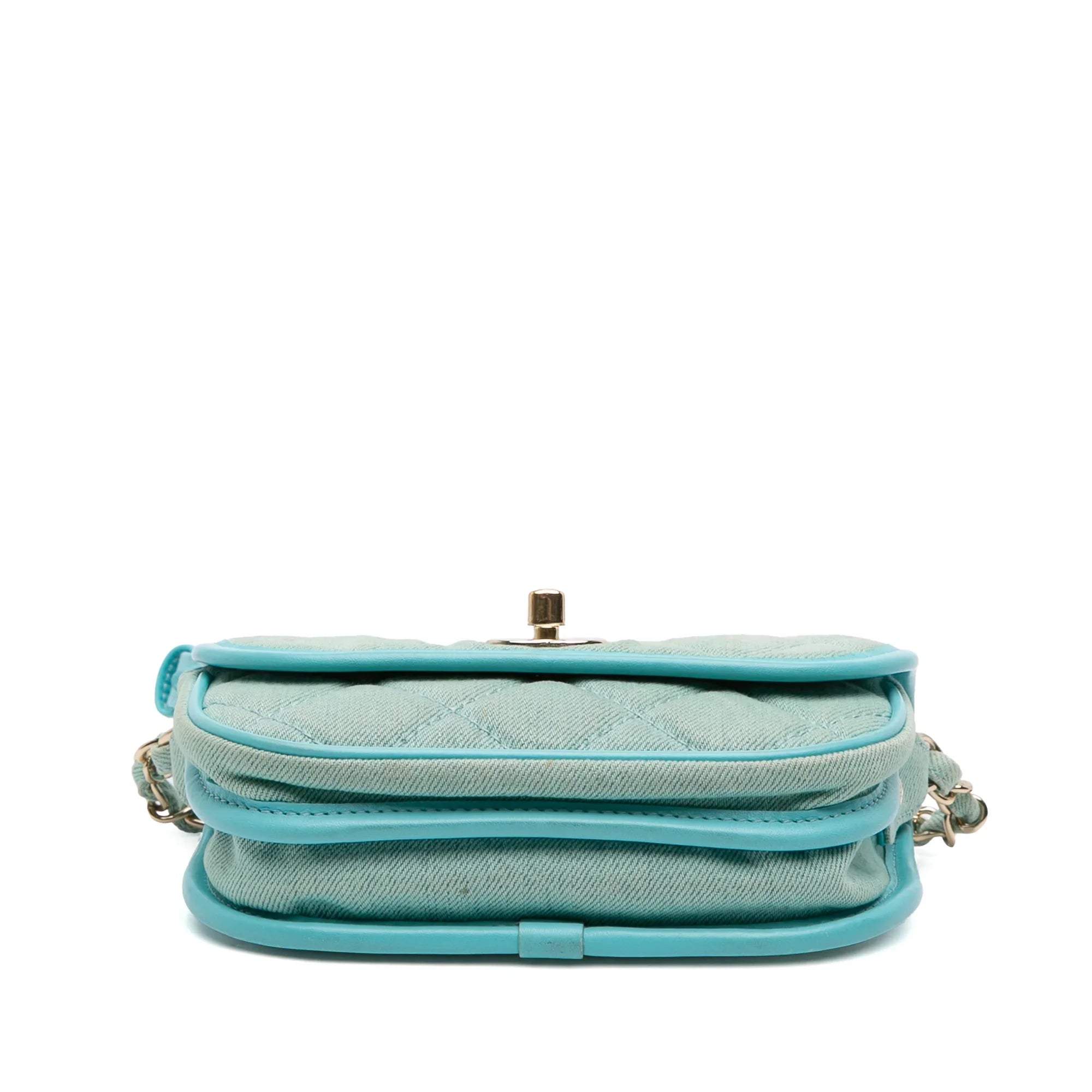 Blue Chanel Mini CC Quilted Denim Messenger Flap Crossbody Bag