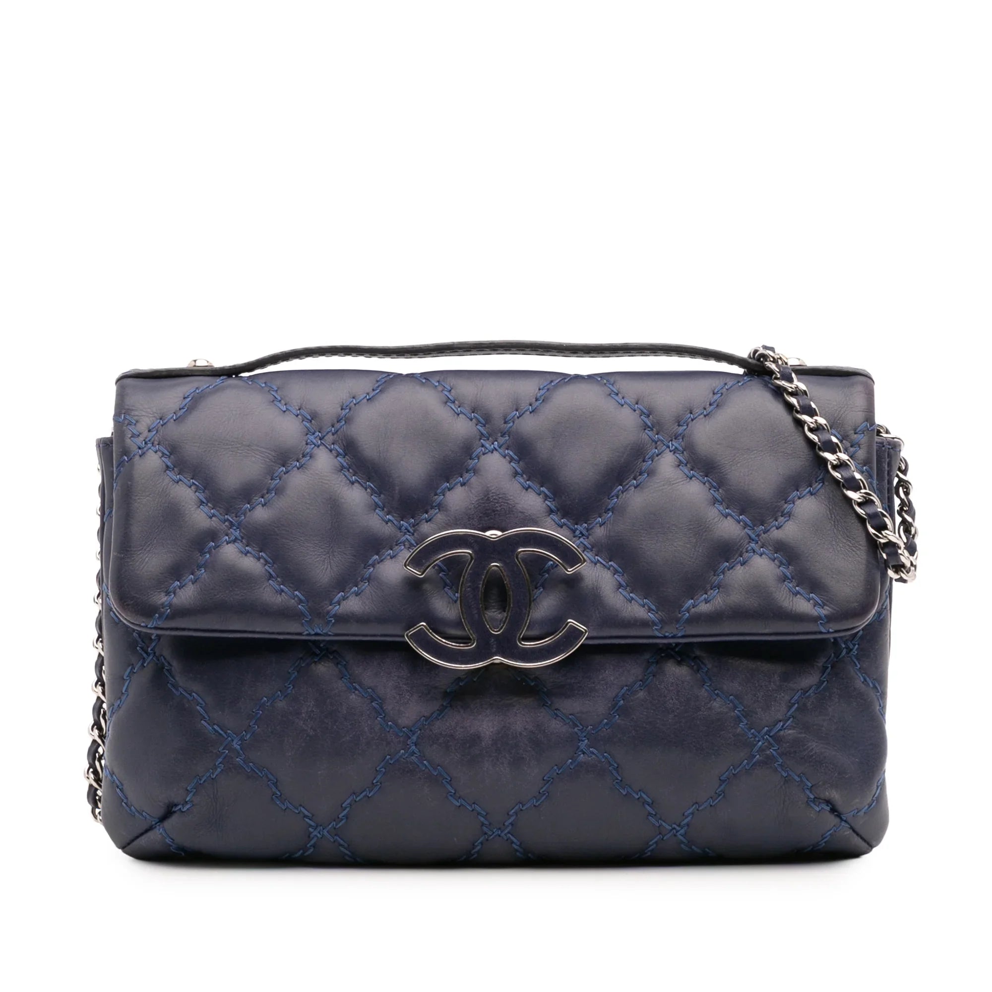 Blue Chanel Mini Double Stitch Hamptons Flap Satchel - Designer Revival Blue Chanel Mini Double Stitch Hamptons Flap Satchel - Designer Revival