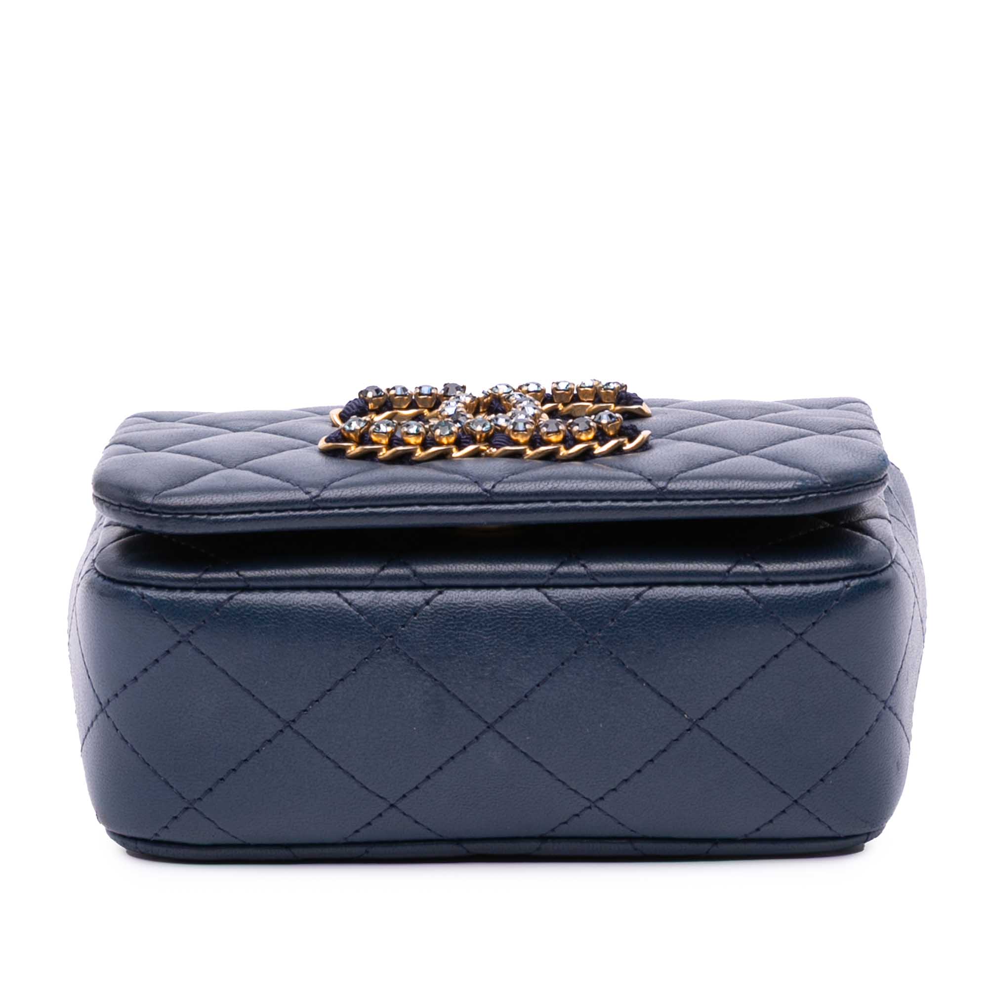Blue Chanel Mini Lambskin CC Crystal Full flap Crossbody Bag
