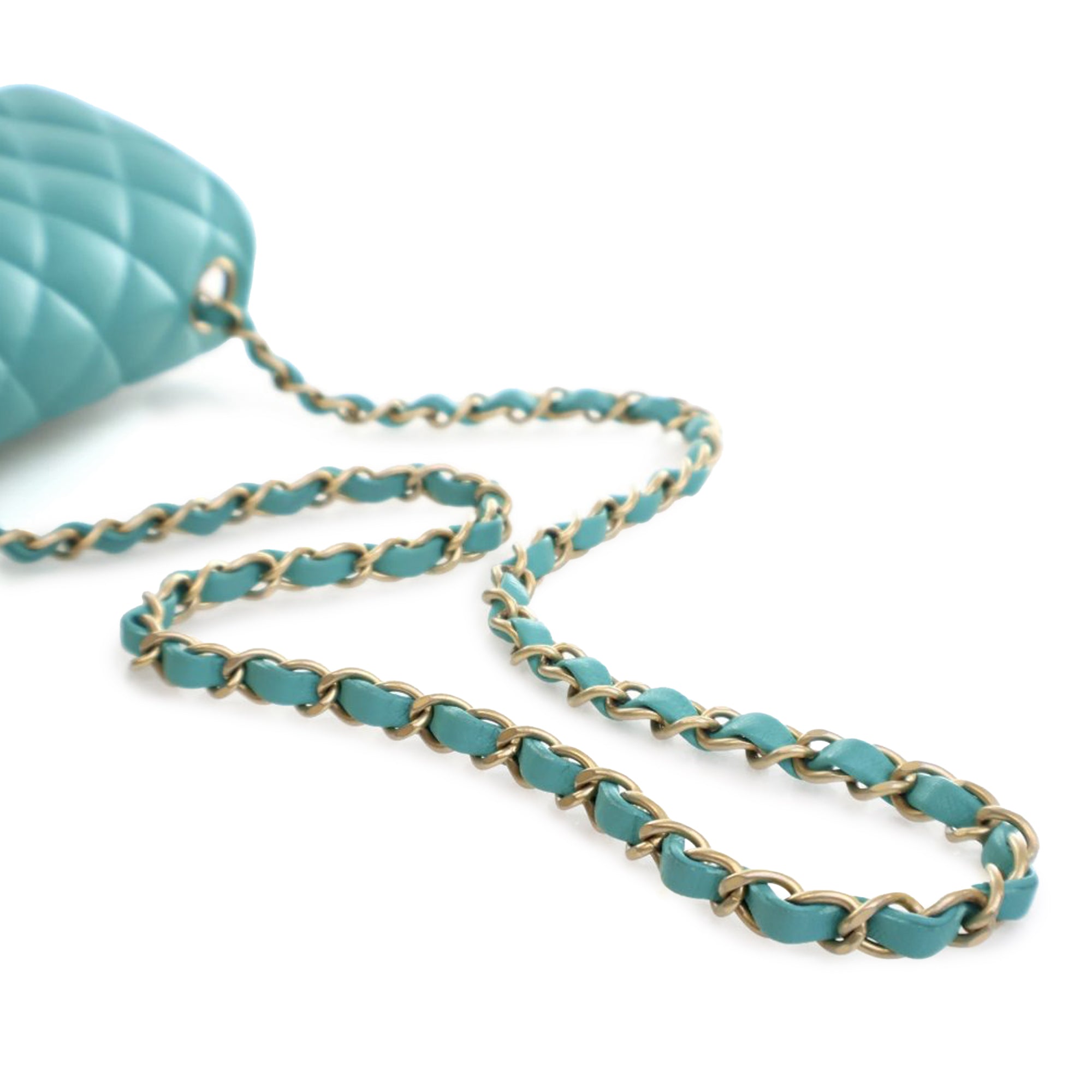 Blue Chanel Mini Square Classic Lambskin Single Flap Crossbody Bag