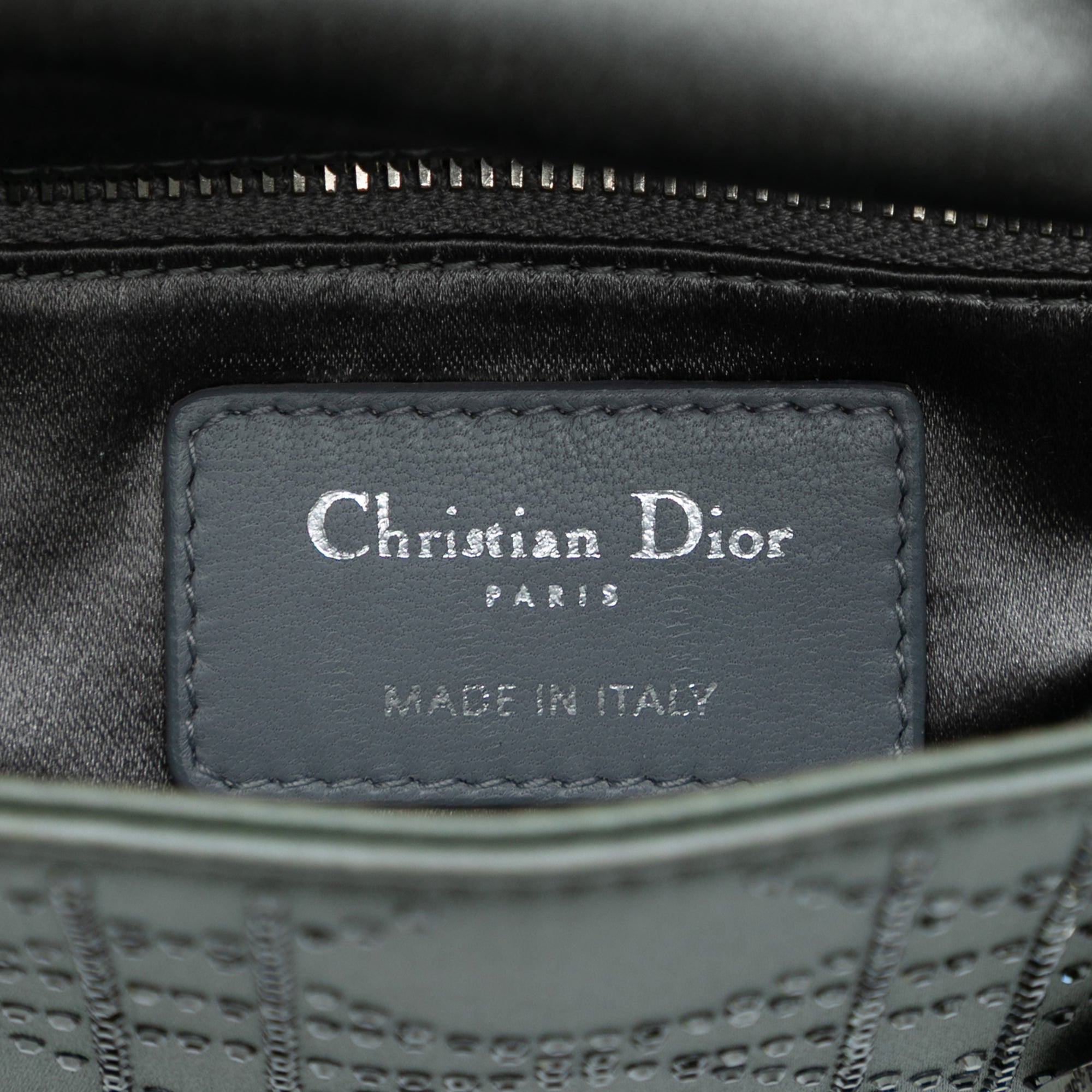Gray Dior Mini Satin Cannage Strass Crystal Embellished Lady Dior Satchel
