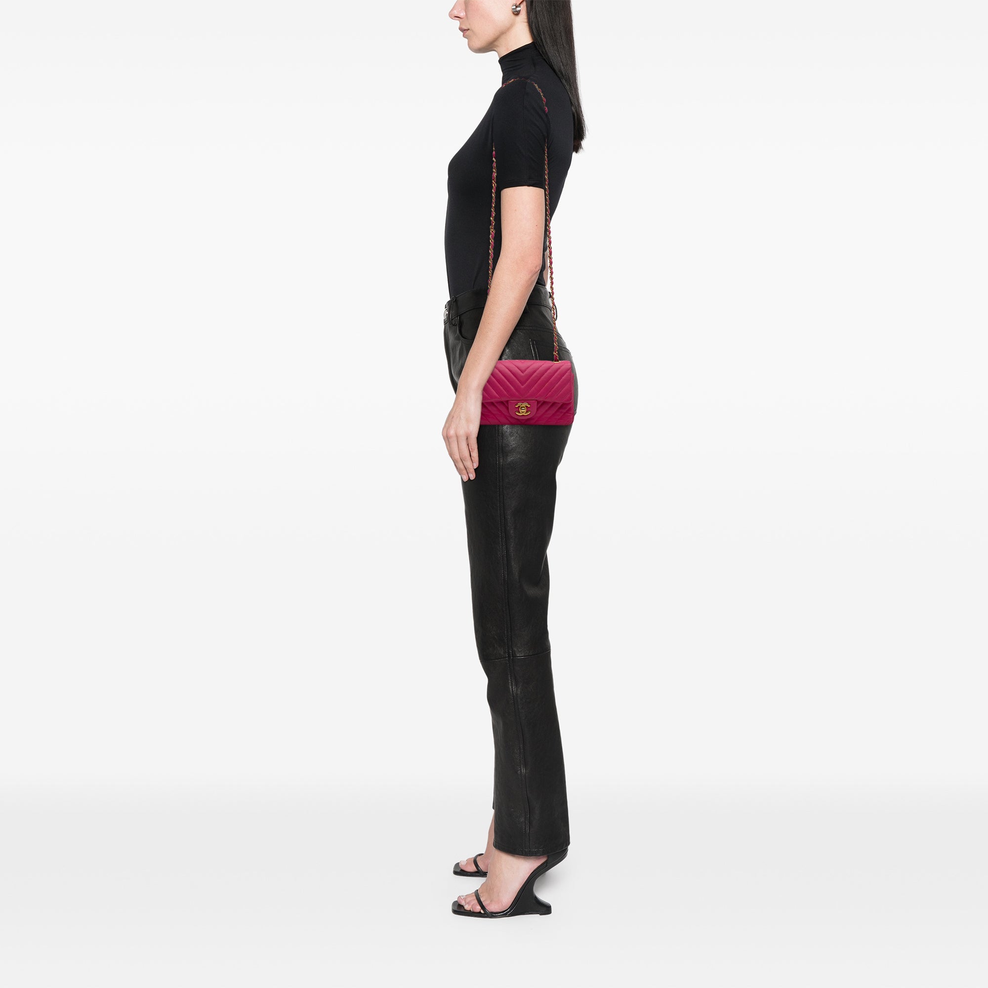 Pink Chanel Mini Rectangular Classic Chevron Lambskin Single Flap Crossbody Bag