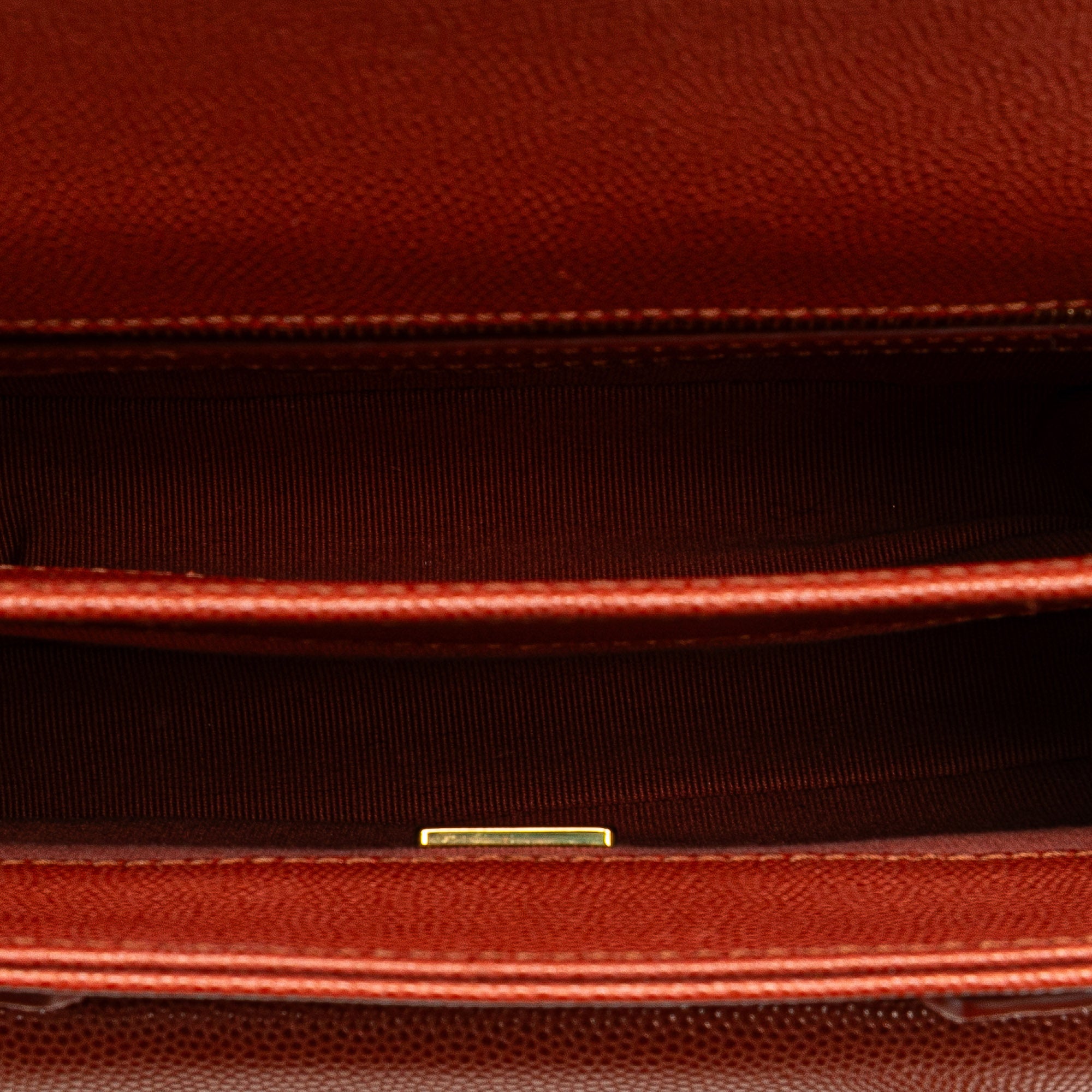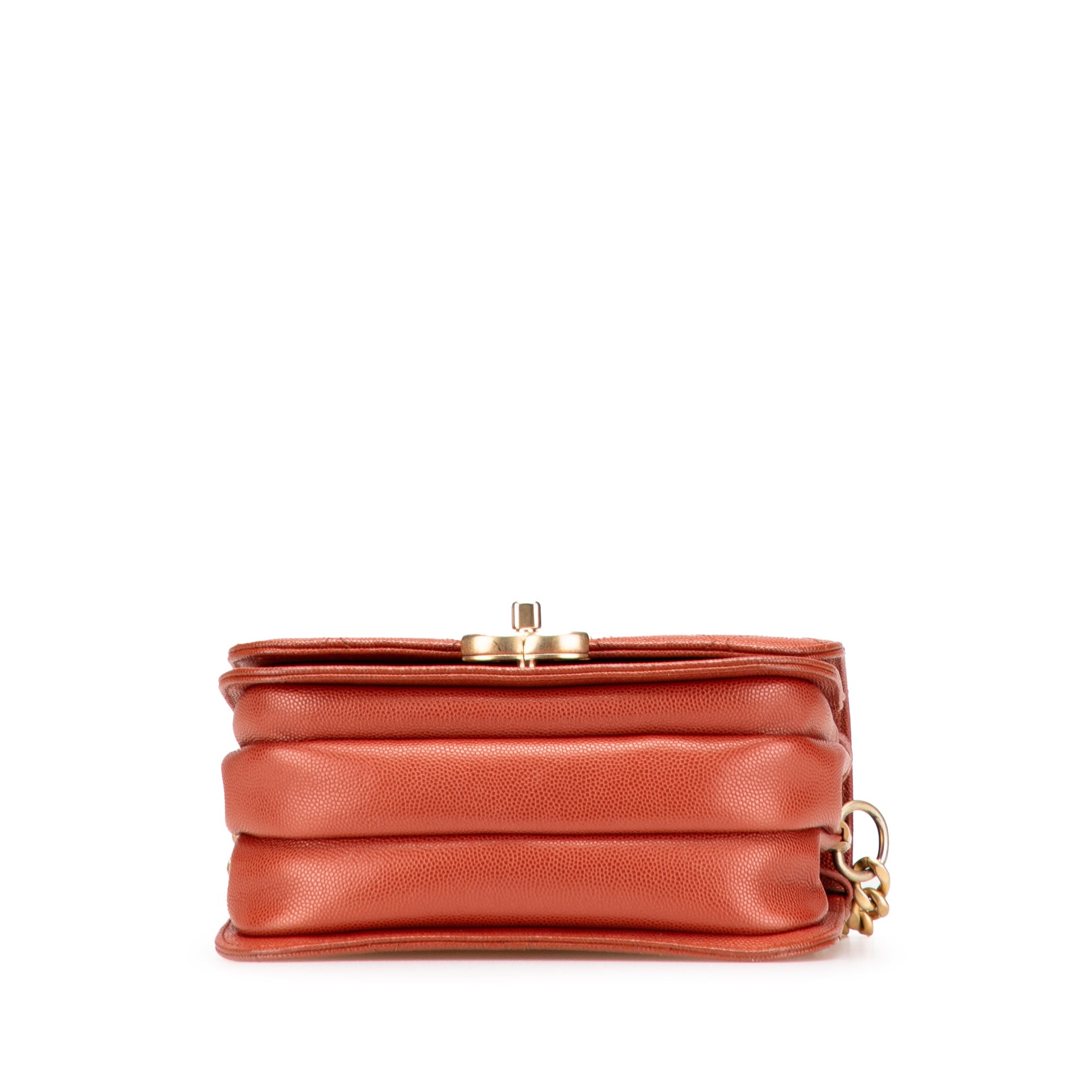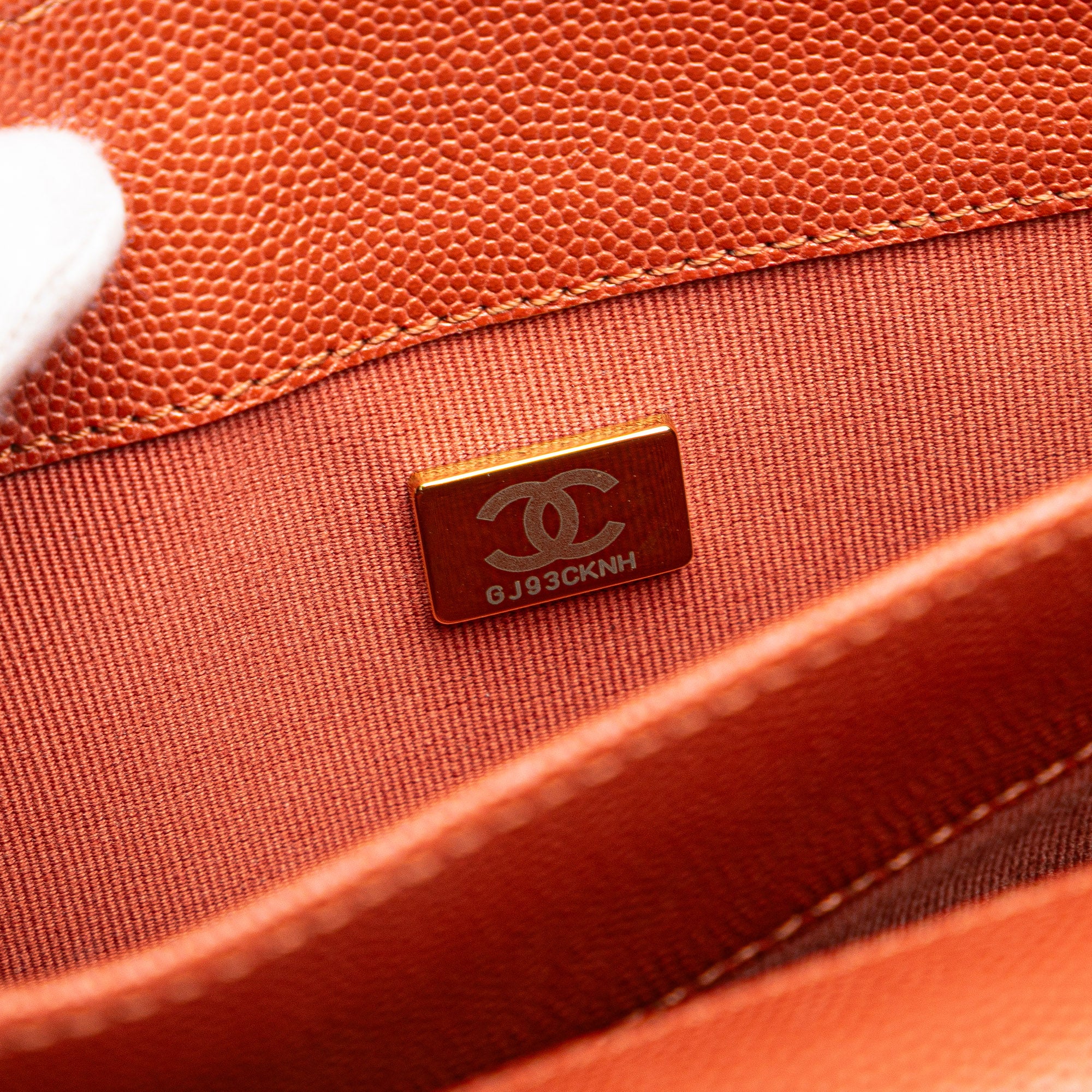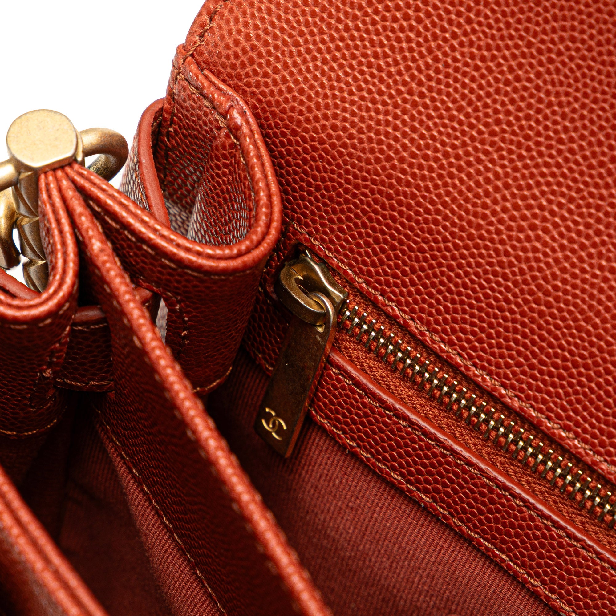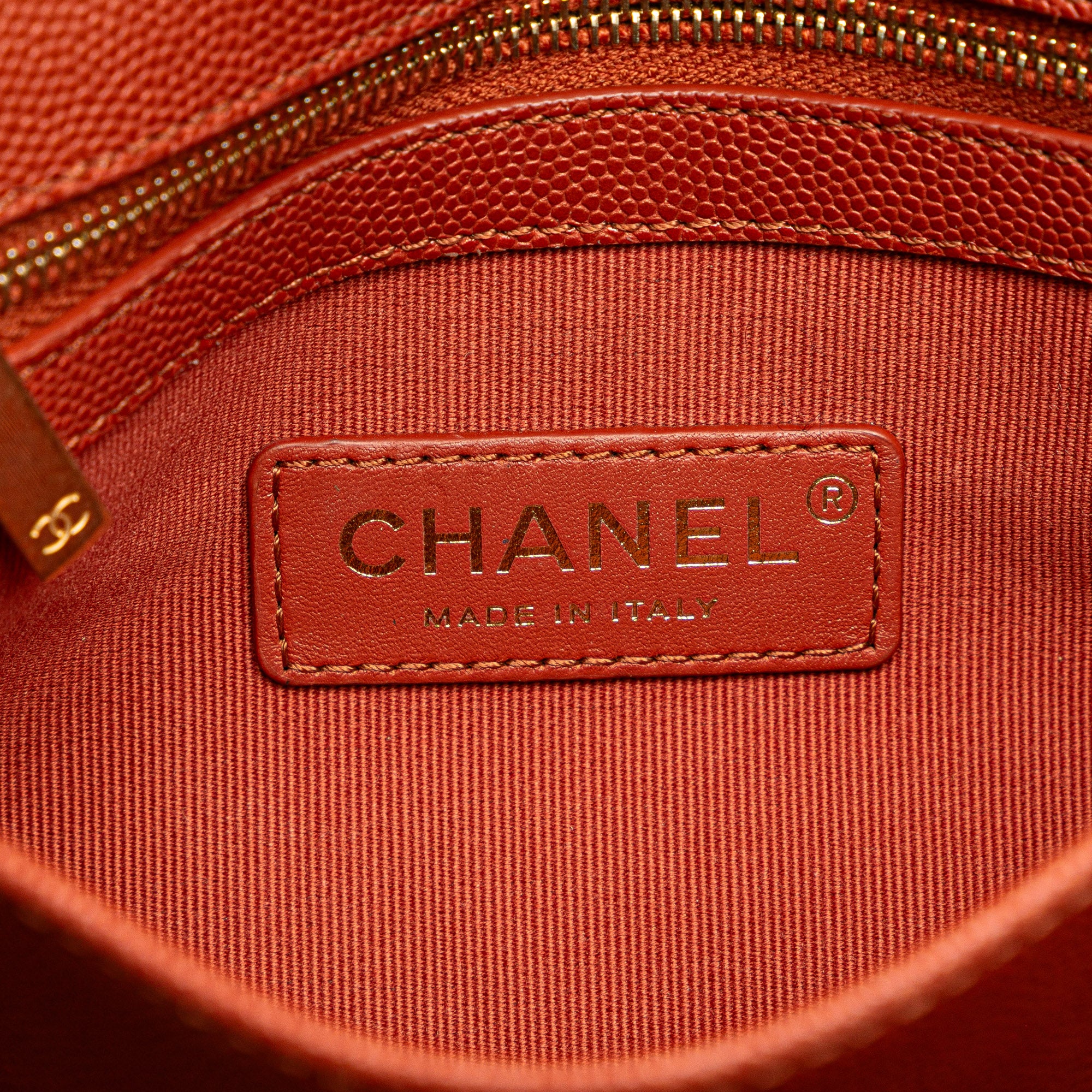 Product Details: Red Chanel Mini CC Quilted Caviar Messenger Single Flap Crossbody Bag. This crossbody bag features a quilted caviar leather body, a chain and flat leather shoulder strap, a front flap with CC twist lock closure, an exterior back slip pocket and interior zip and slip pockets. 6.7" L x 7.5" W x 3.1" D. Serial number GJ93CKNH.