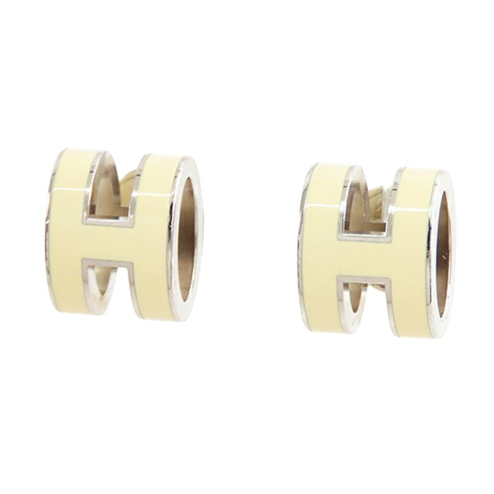 Product Details: Silver Hermès Lacquered Palladium Plated Mini Pop H Stud Earrings. These earrings feature lacquered palladium plated bodies and push back closures. 0.5" L x 0.4" W x 0" D.
