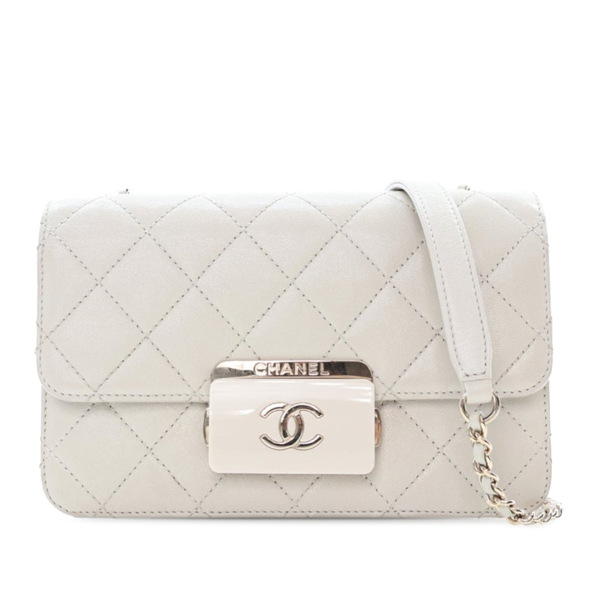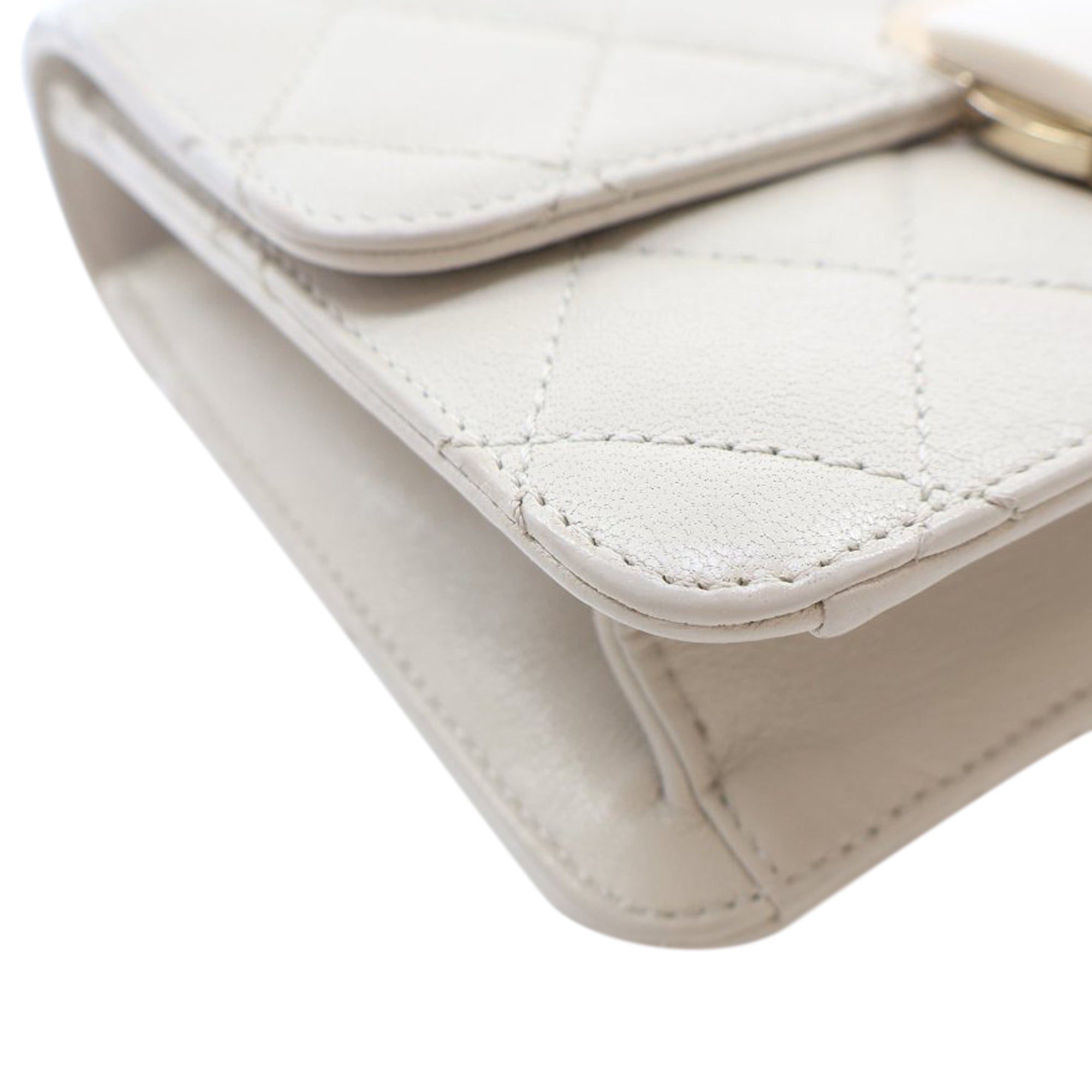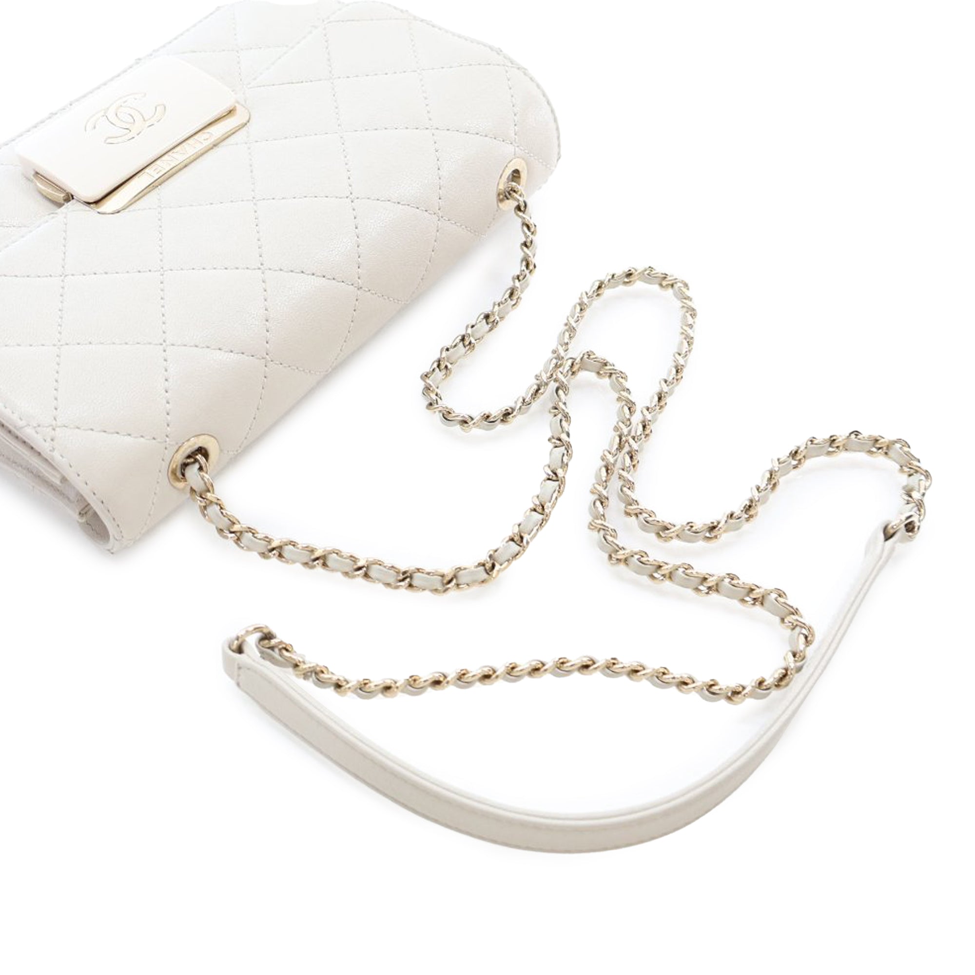 White Chanel Mini Lambskin Beauty Lock Flap Crossbody Bag