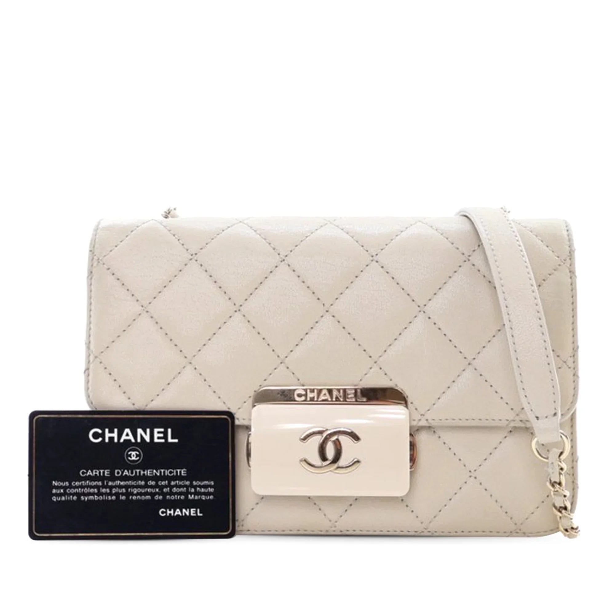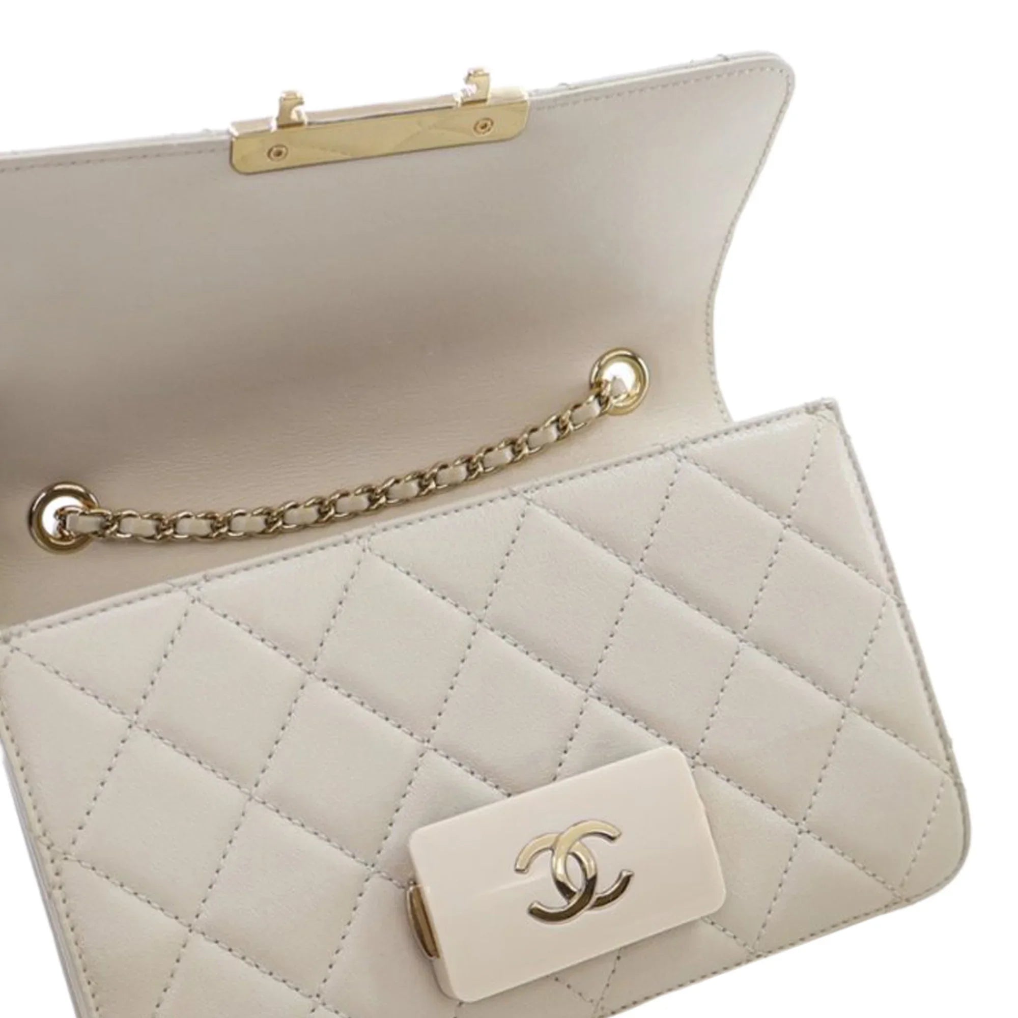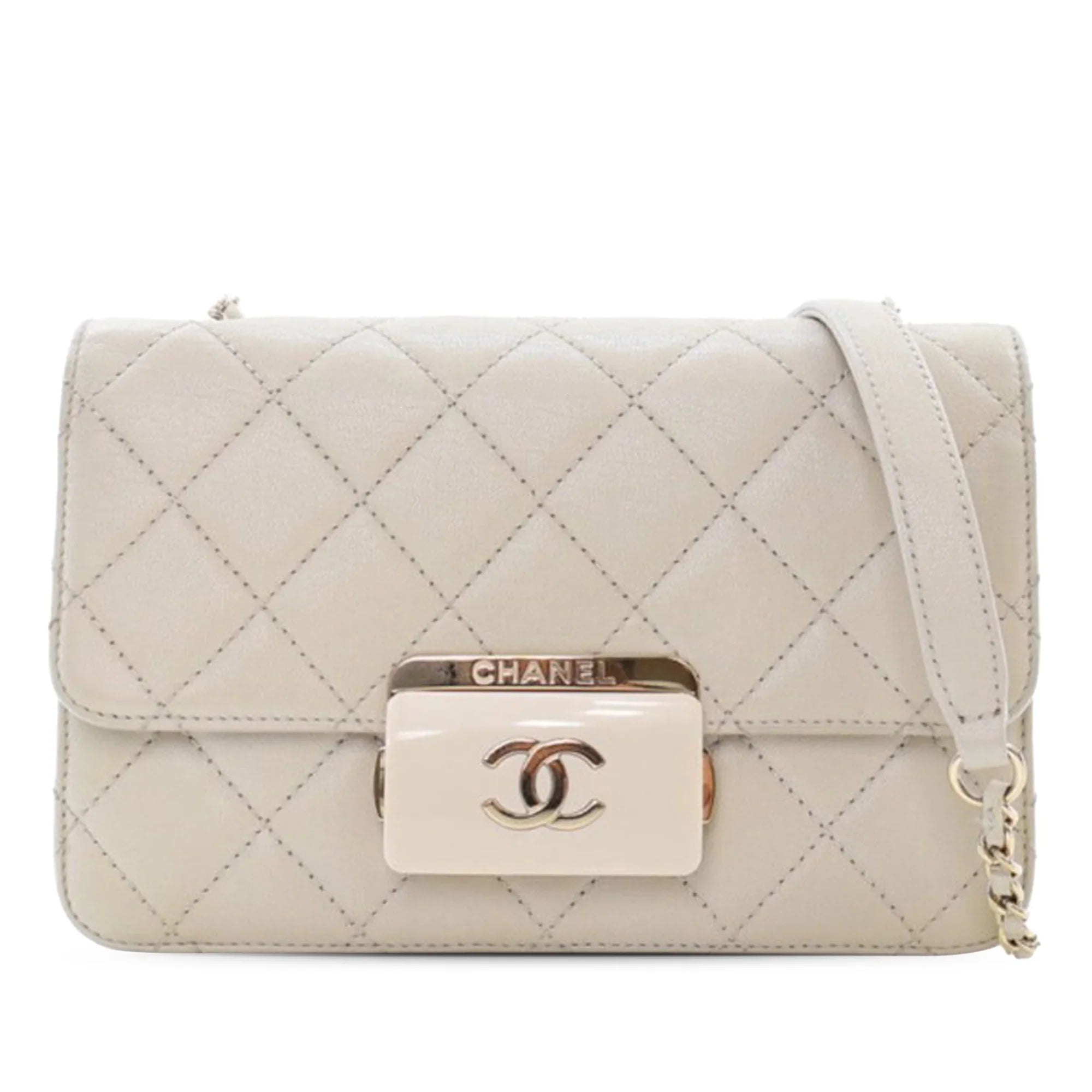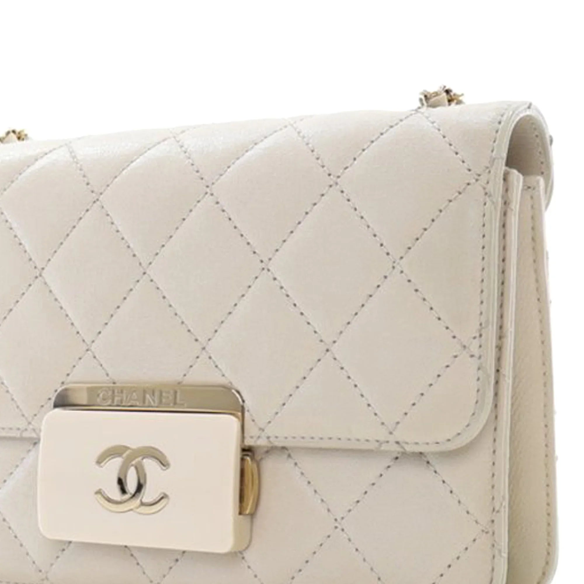 White Chanel Mini Sheepskin Beauty Lock Flap Crossbody Bag