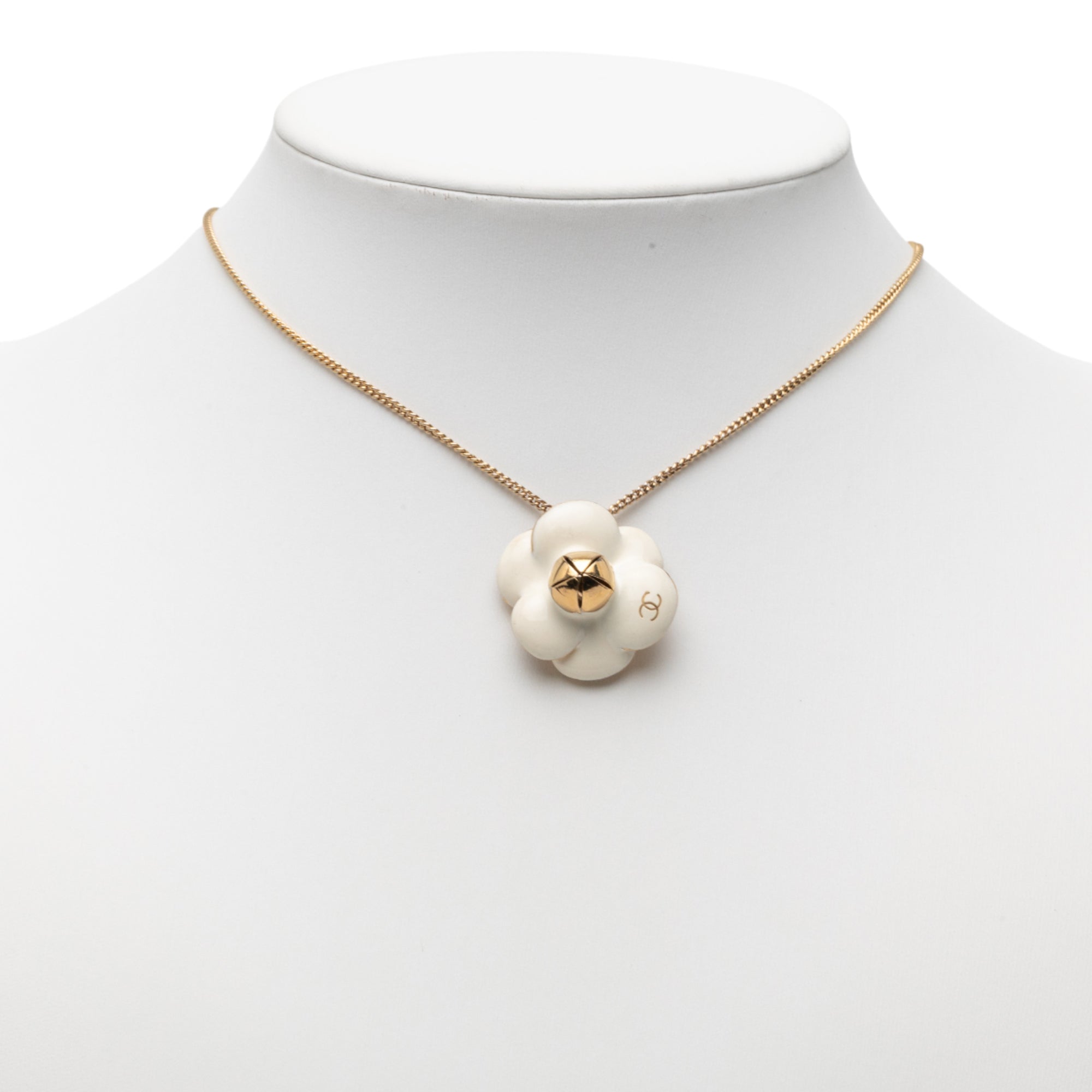 Gold Chanel CC Gold Plated Enamel Camellia Pendant Necklace