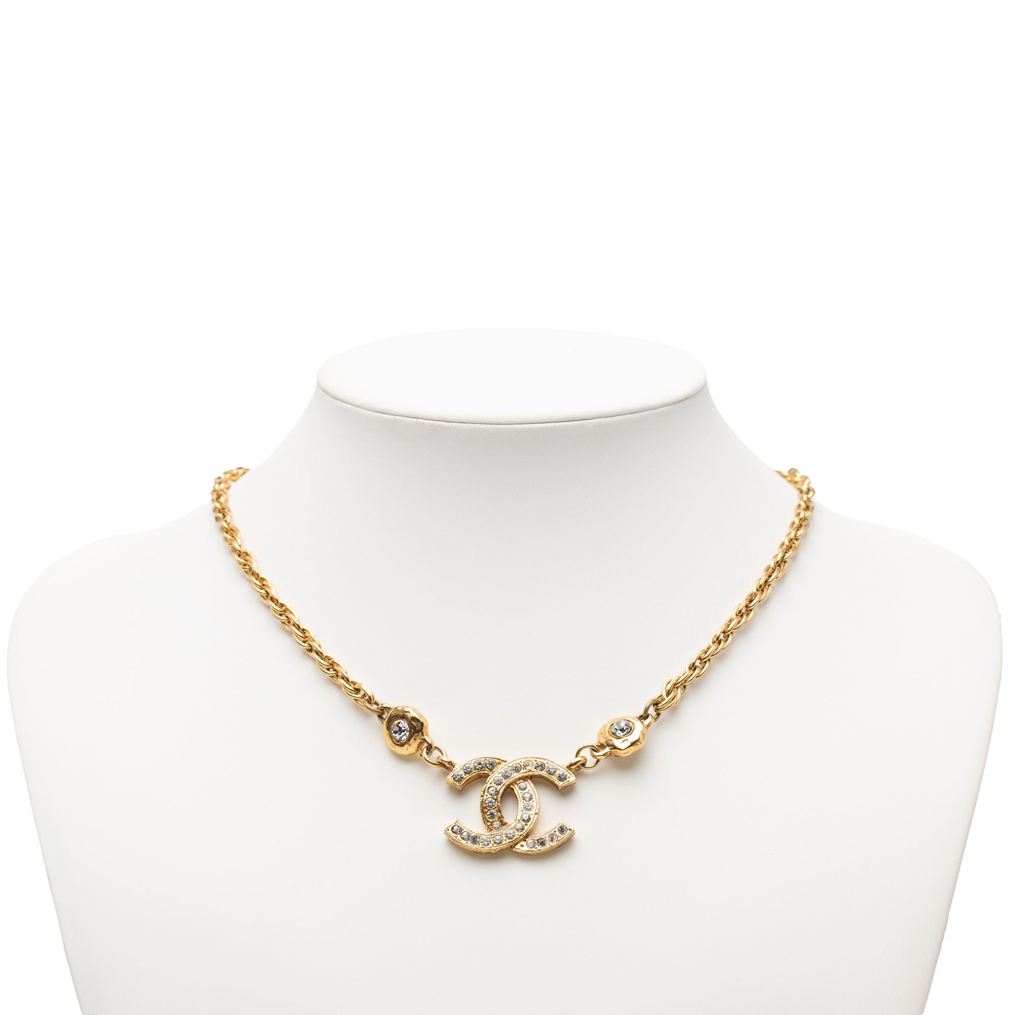 Gold Chanel Gold Plated CC Rhinestone Pendant Necklace