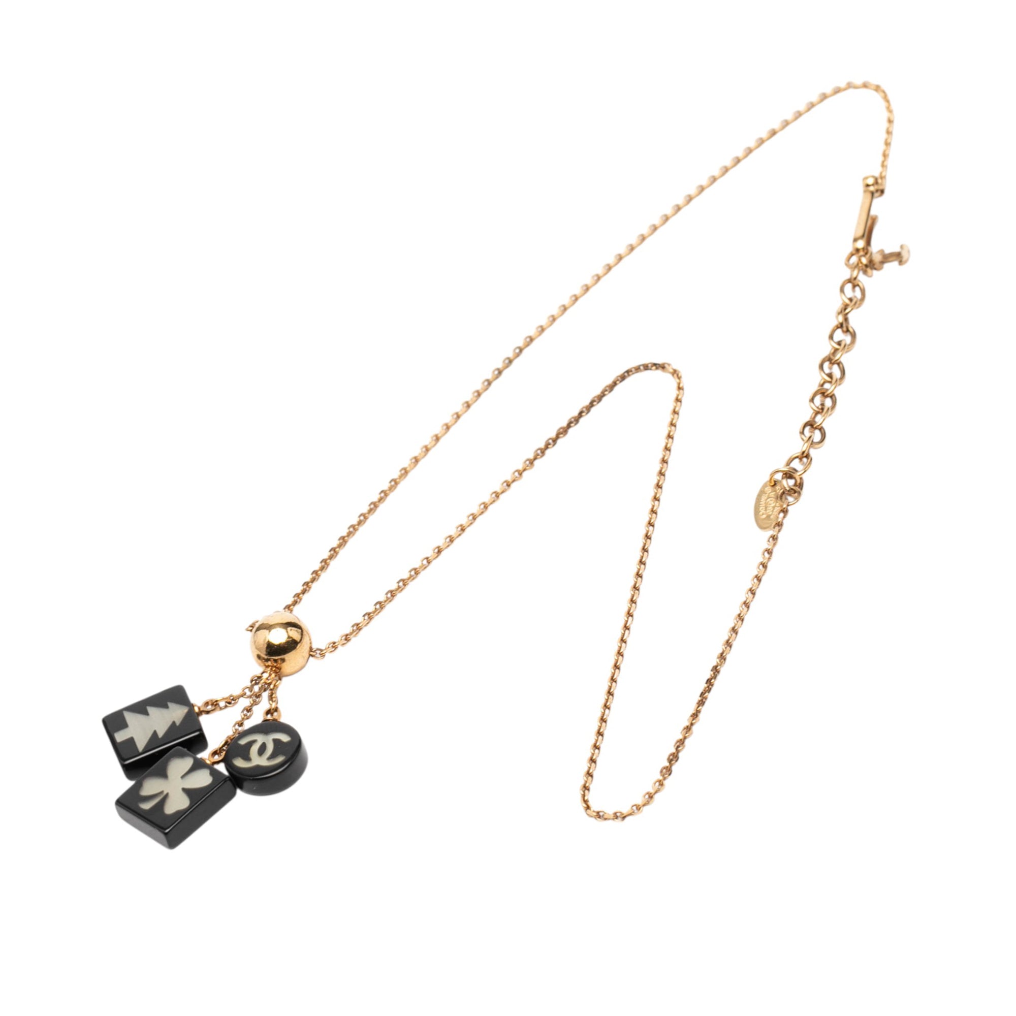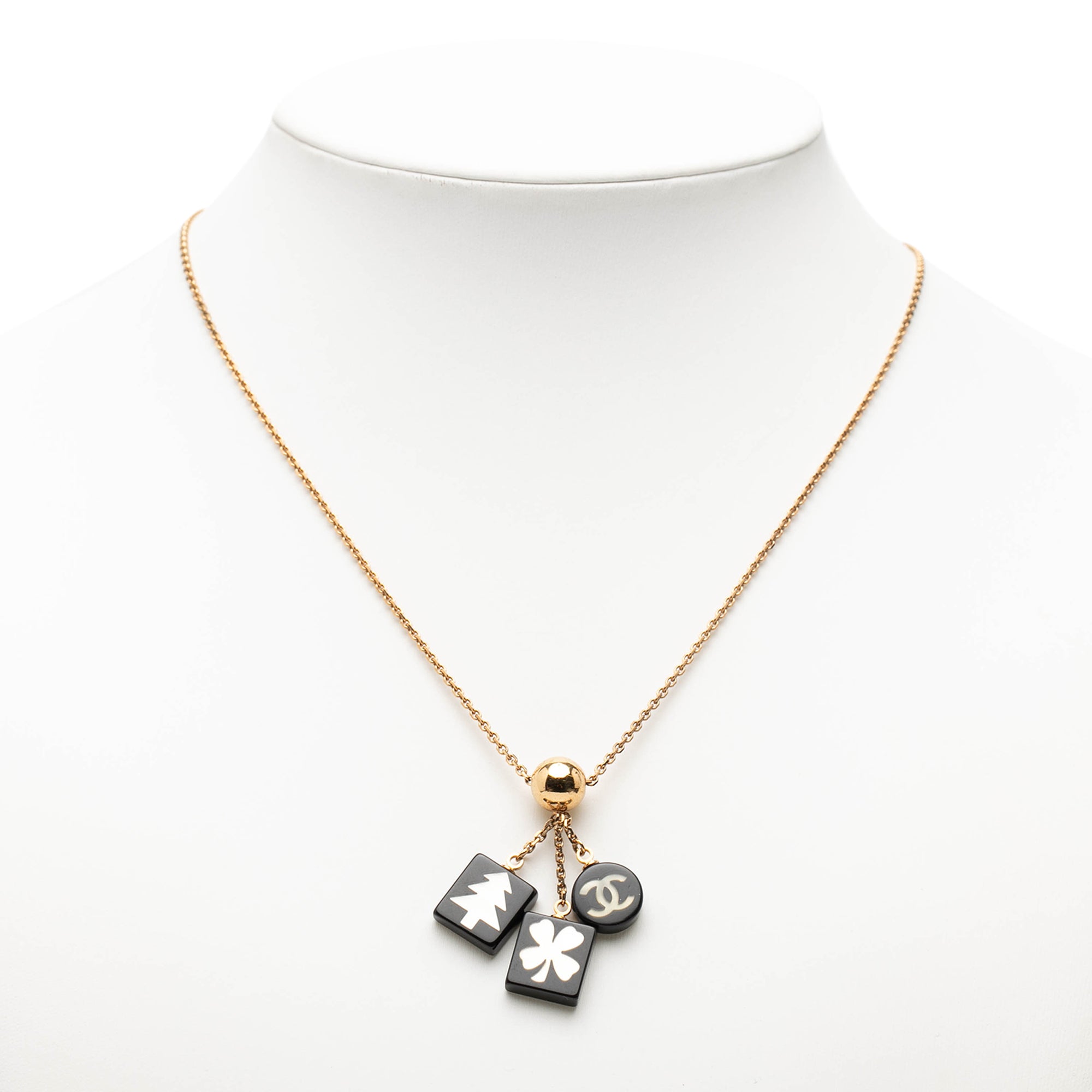 Gold Chanel Gold Plated Resin CC Logo Tree Clover Pendant Necklace