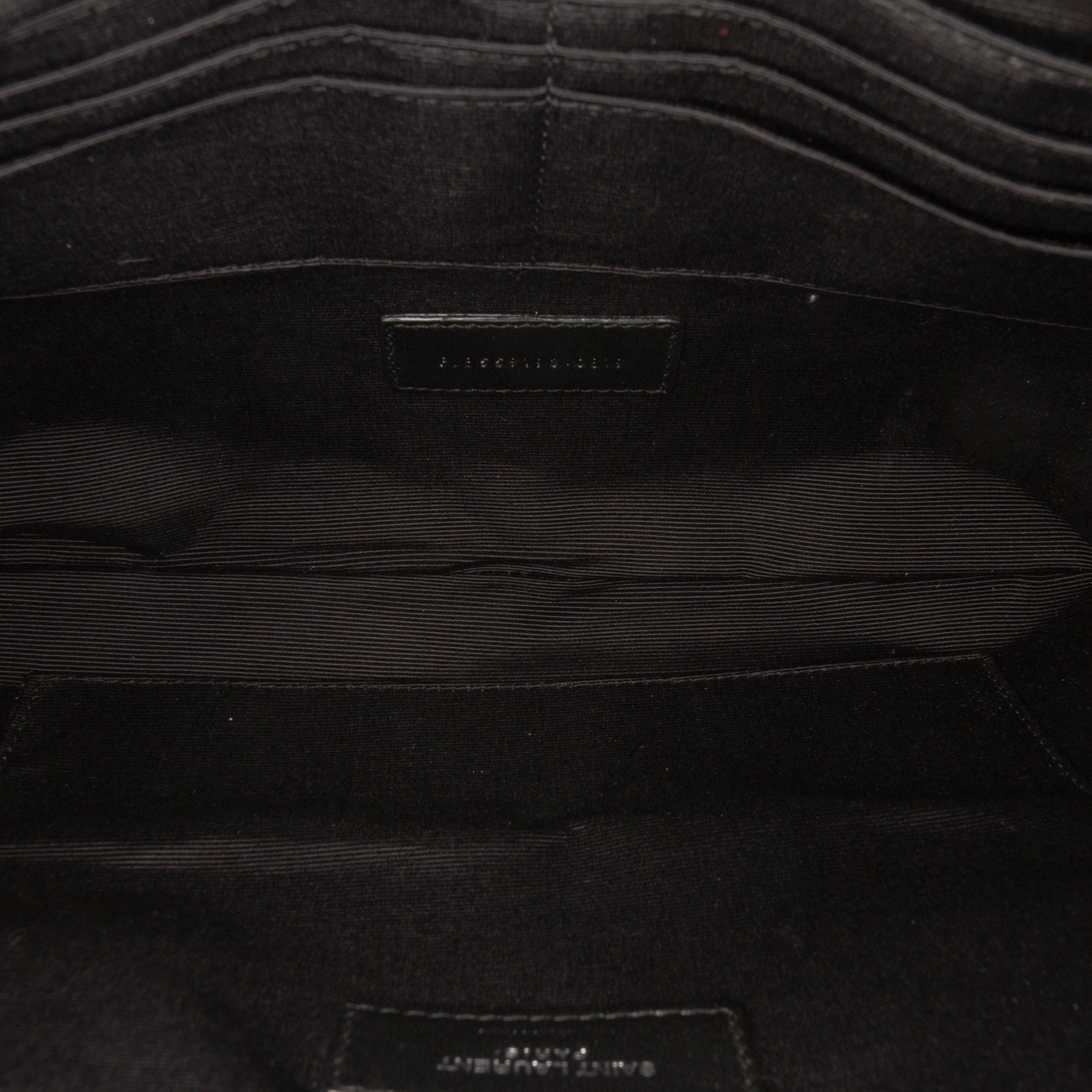 Black Saint Laurent Quilted Chevron Leather Monogram Document Holder Clutch Bag