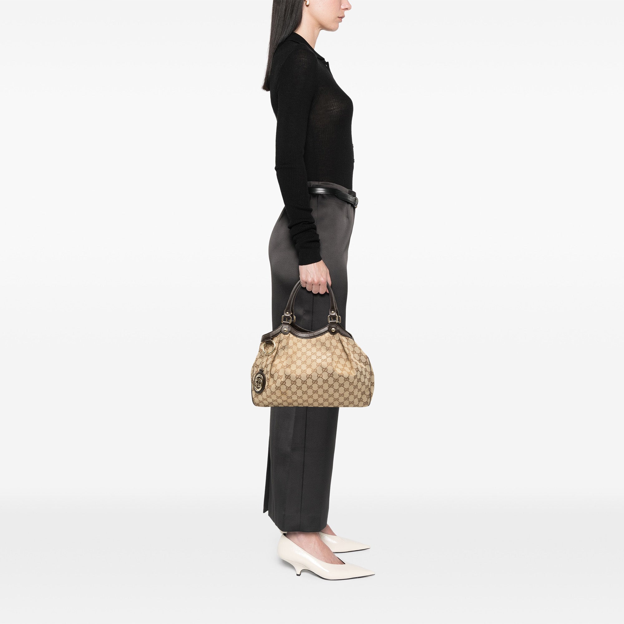 Please note this is a pre-owned item that may display signs of wear consistent with the condition listed above and shown in photos. Designer Revival guarantees this is an authentic Brown Gucci Medium GG Canvas Sukey Tote or 100% of your money back. Learn more about our authentication process.
