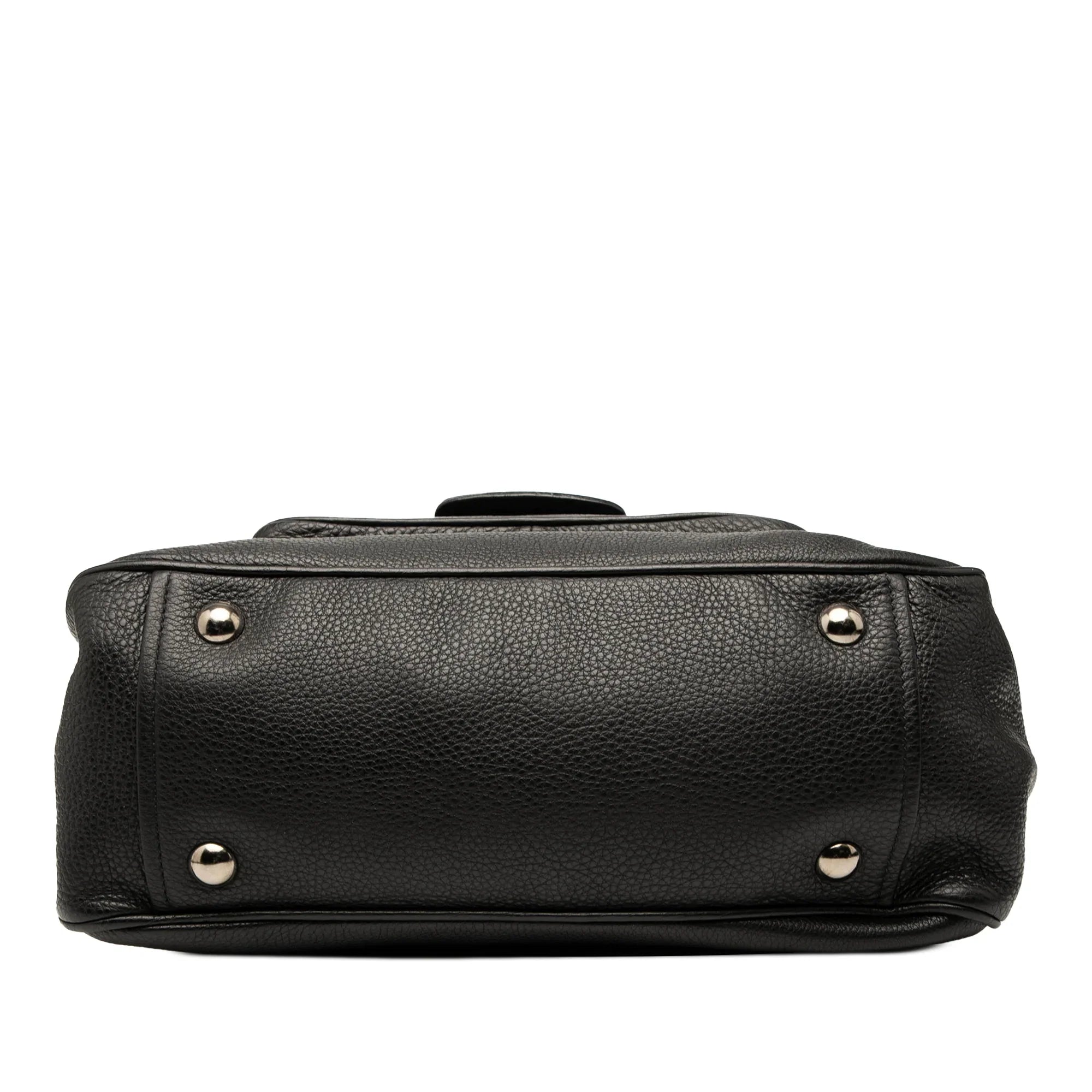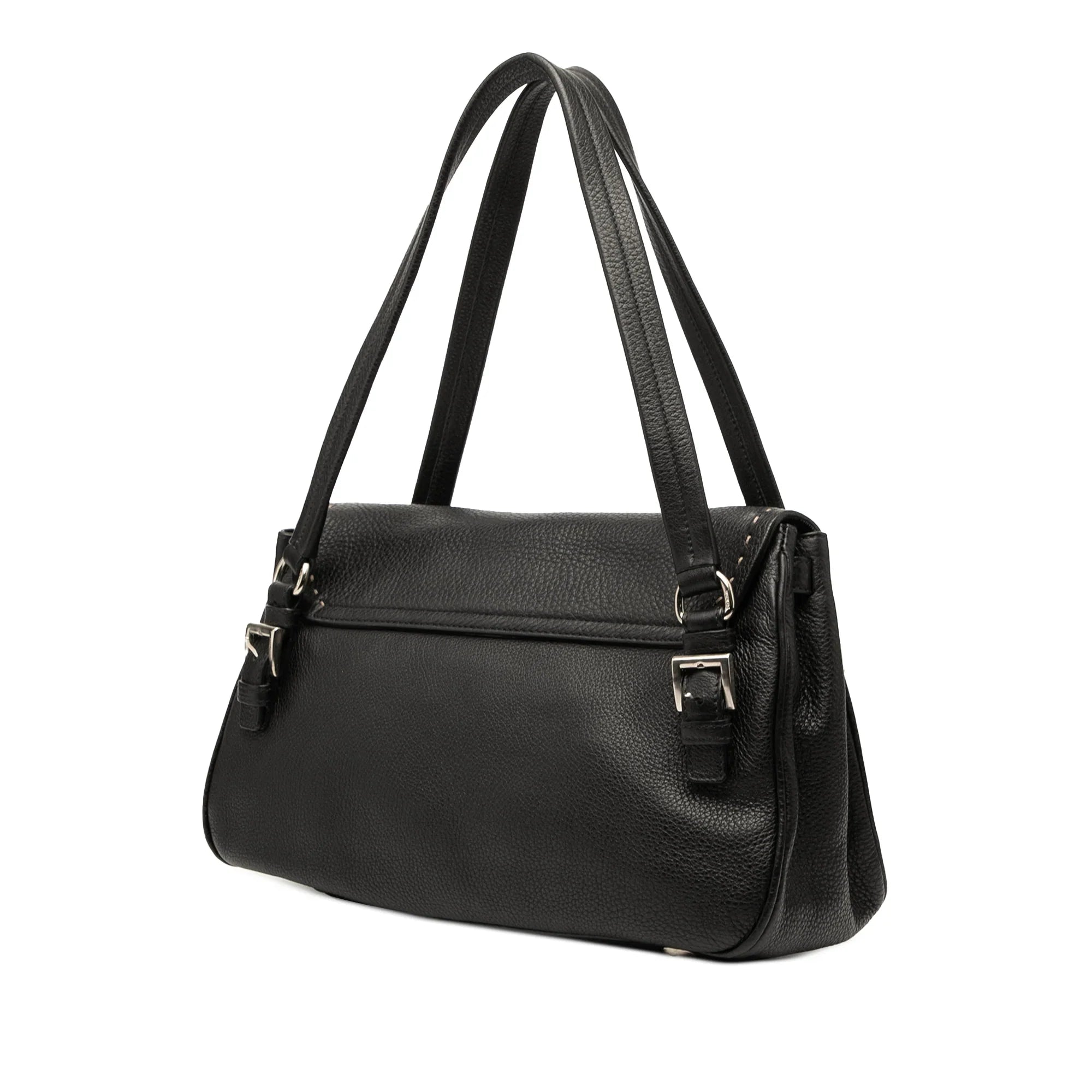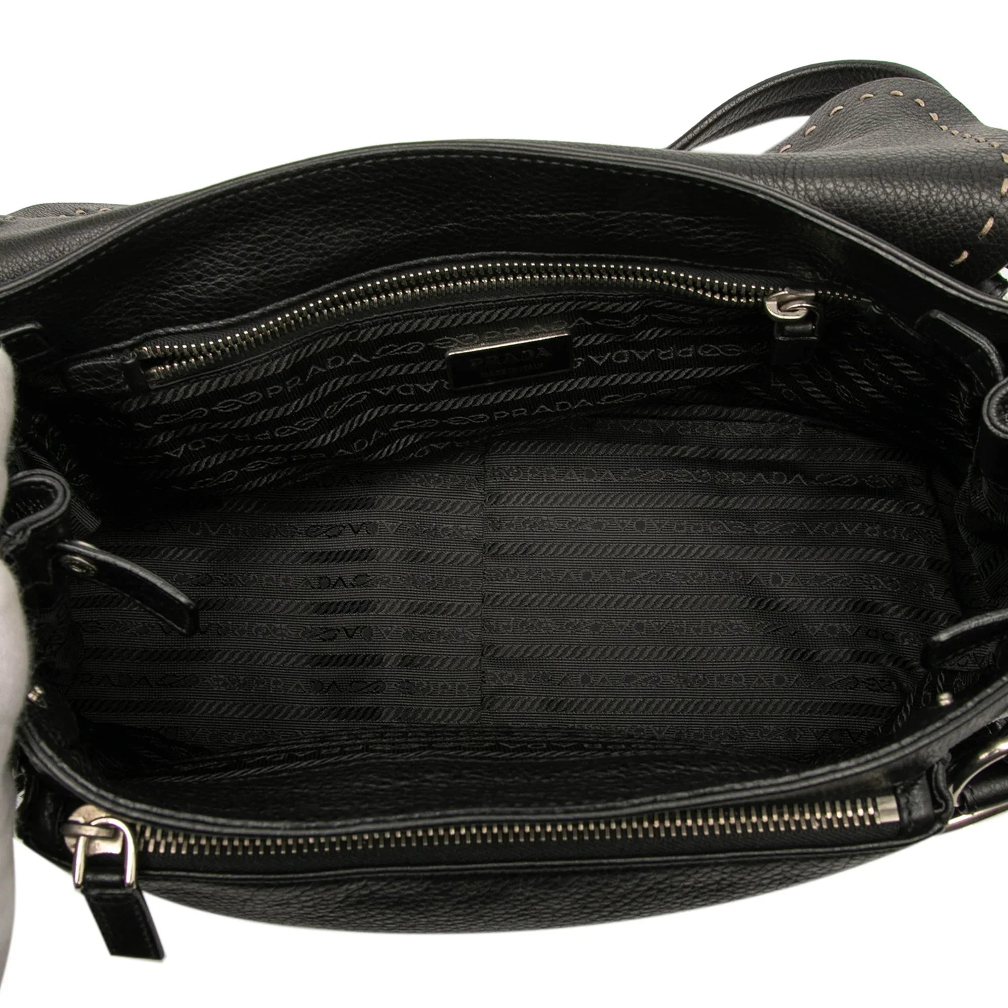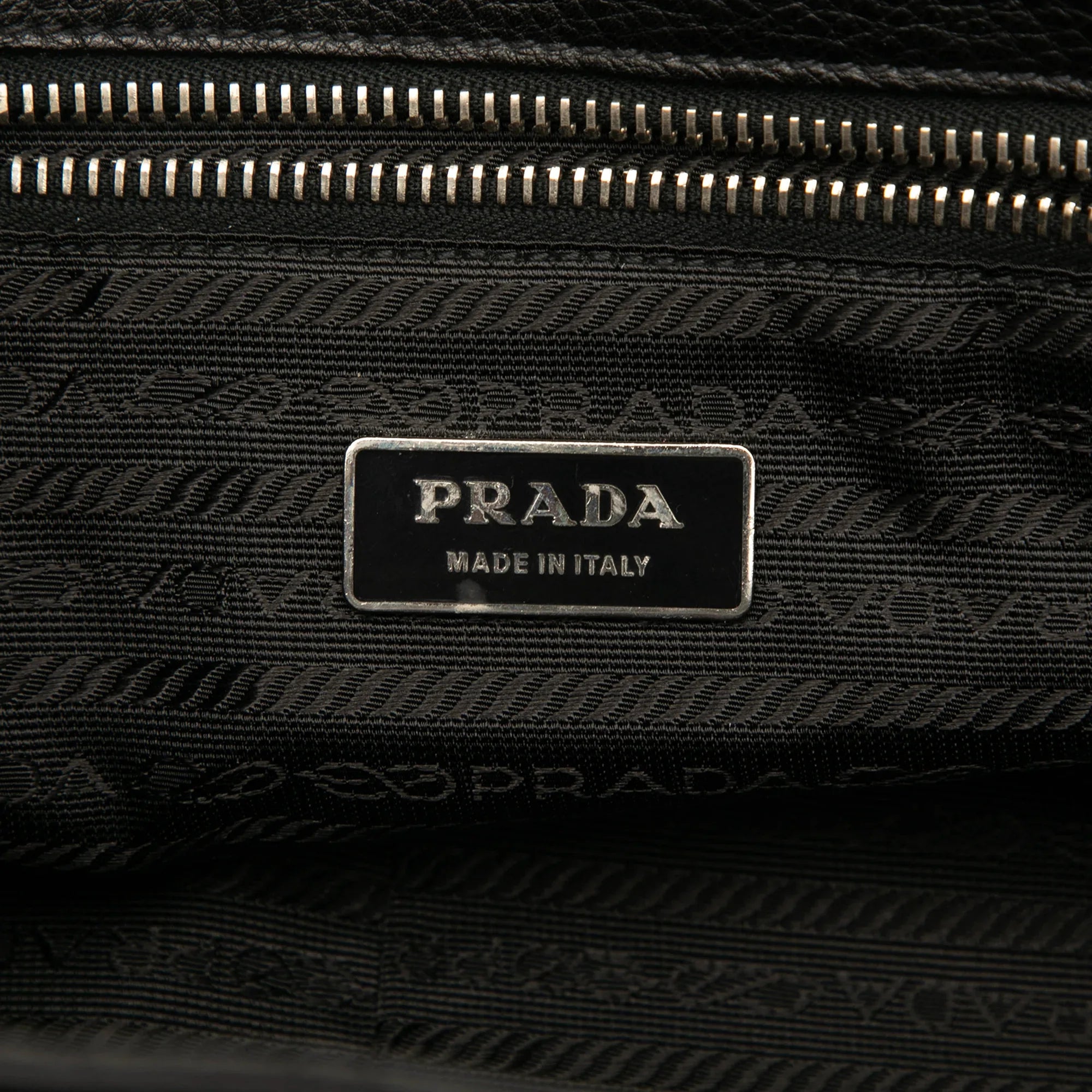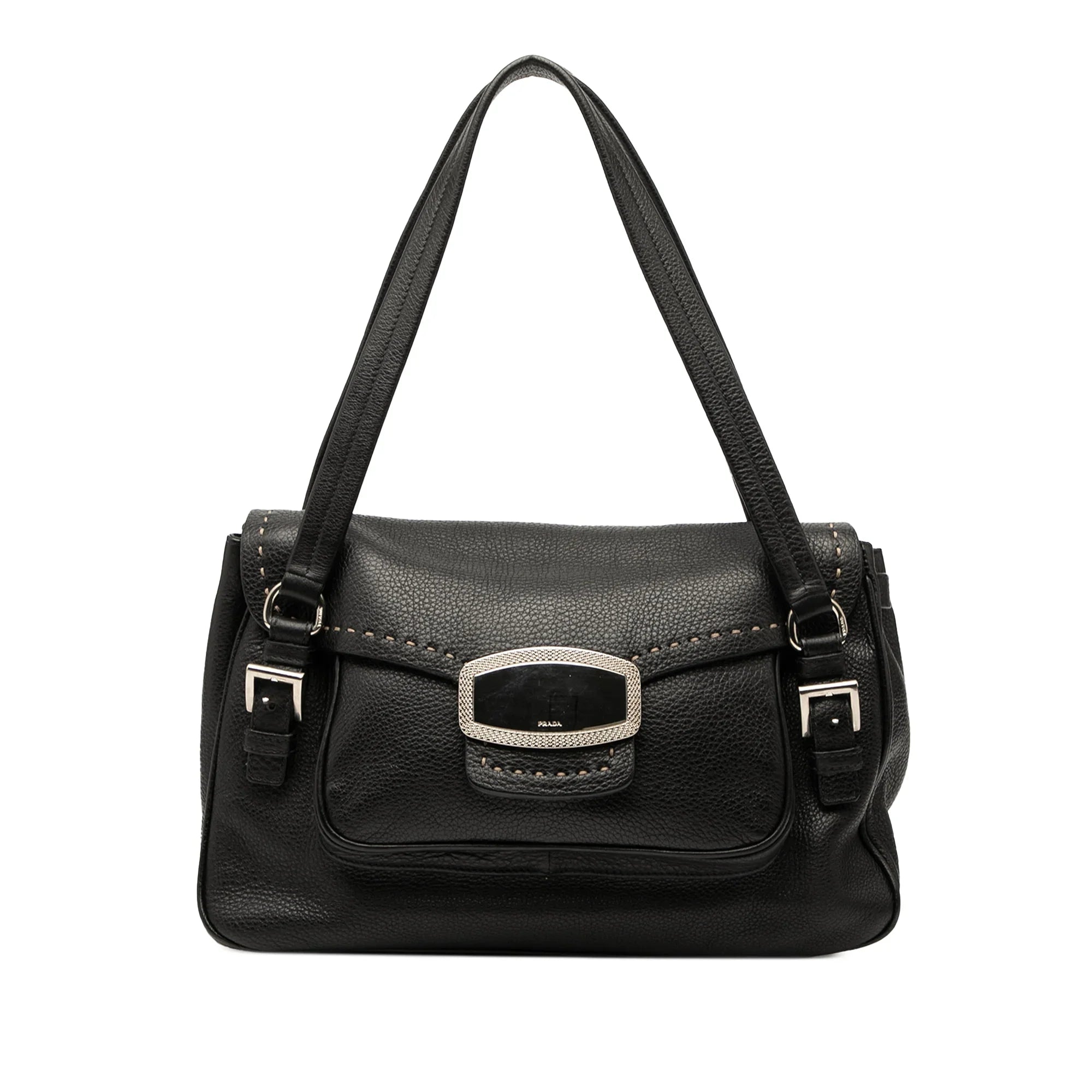 Black Prada Vitello Daino Pushlock Flap Shoulder Bag