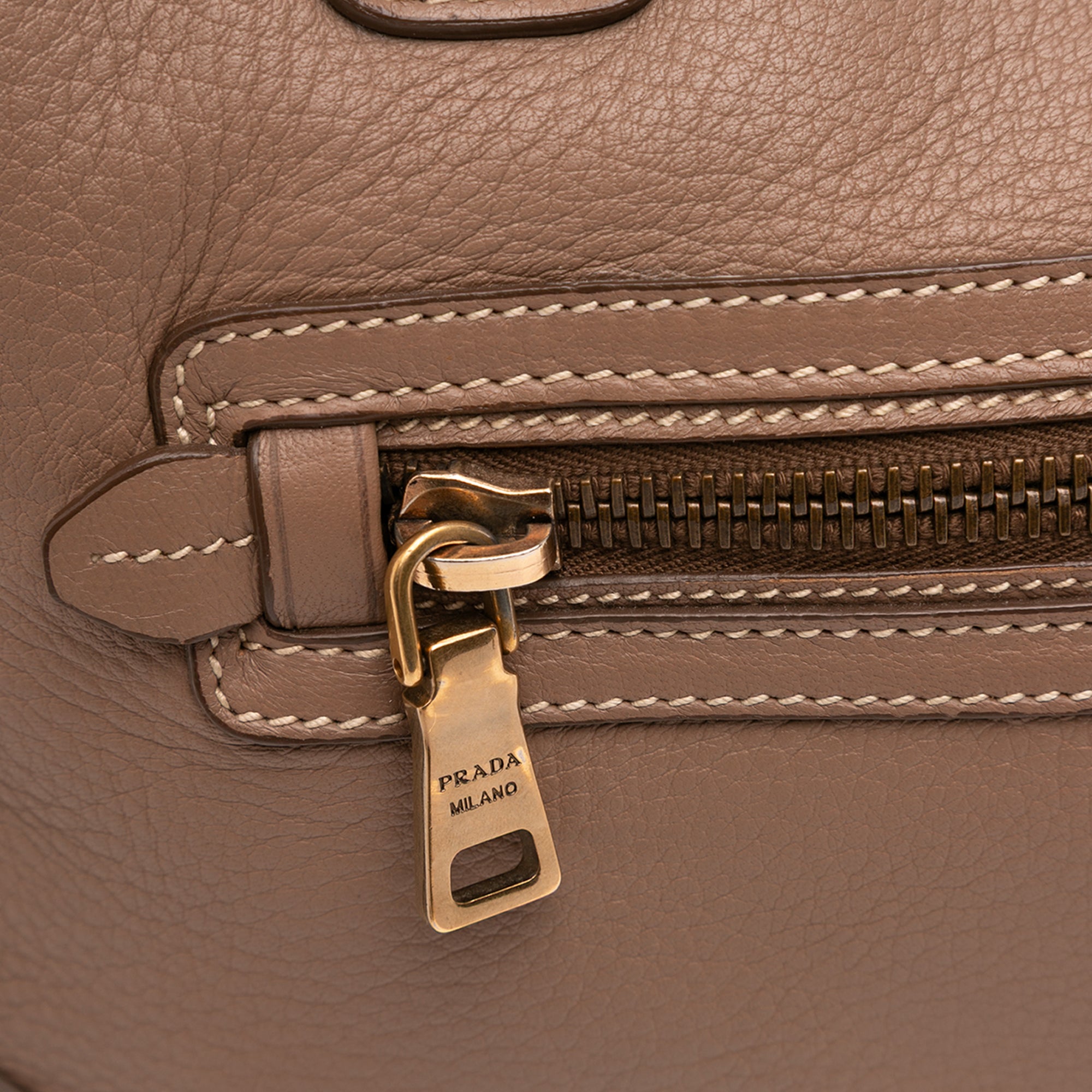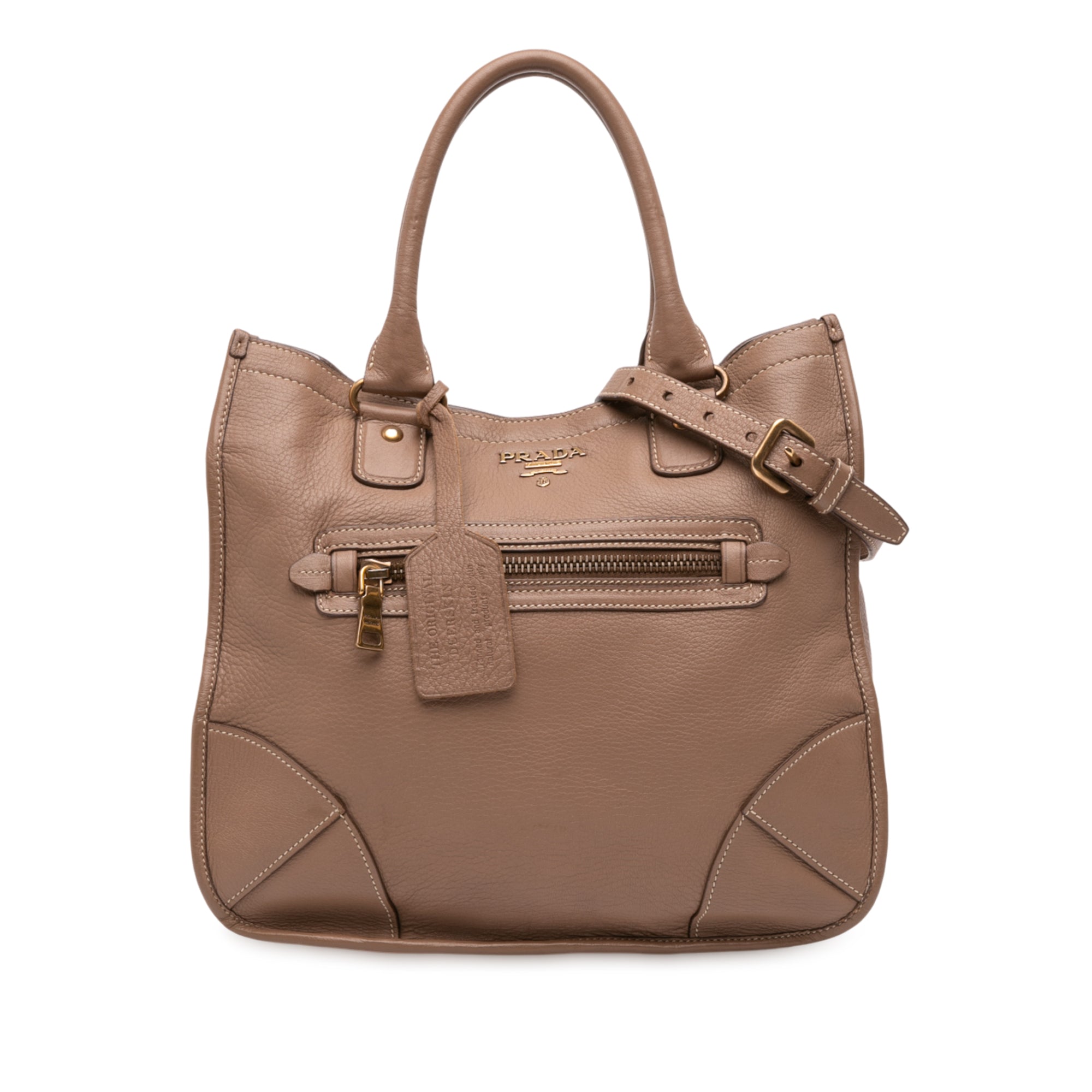Please note this is a pre-owned item that may display signs of wear consistent with the condition listed above and shown in photos. Designer Revival guarantees this is an authentic Brown Prada Cervo Open Convertible Tote Satchel or 100% of your money back. Learn more about our authentication process.