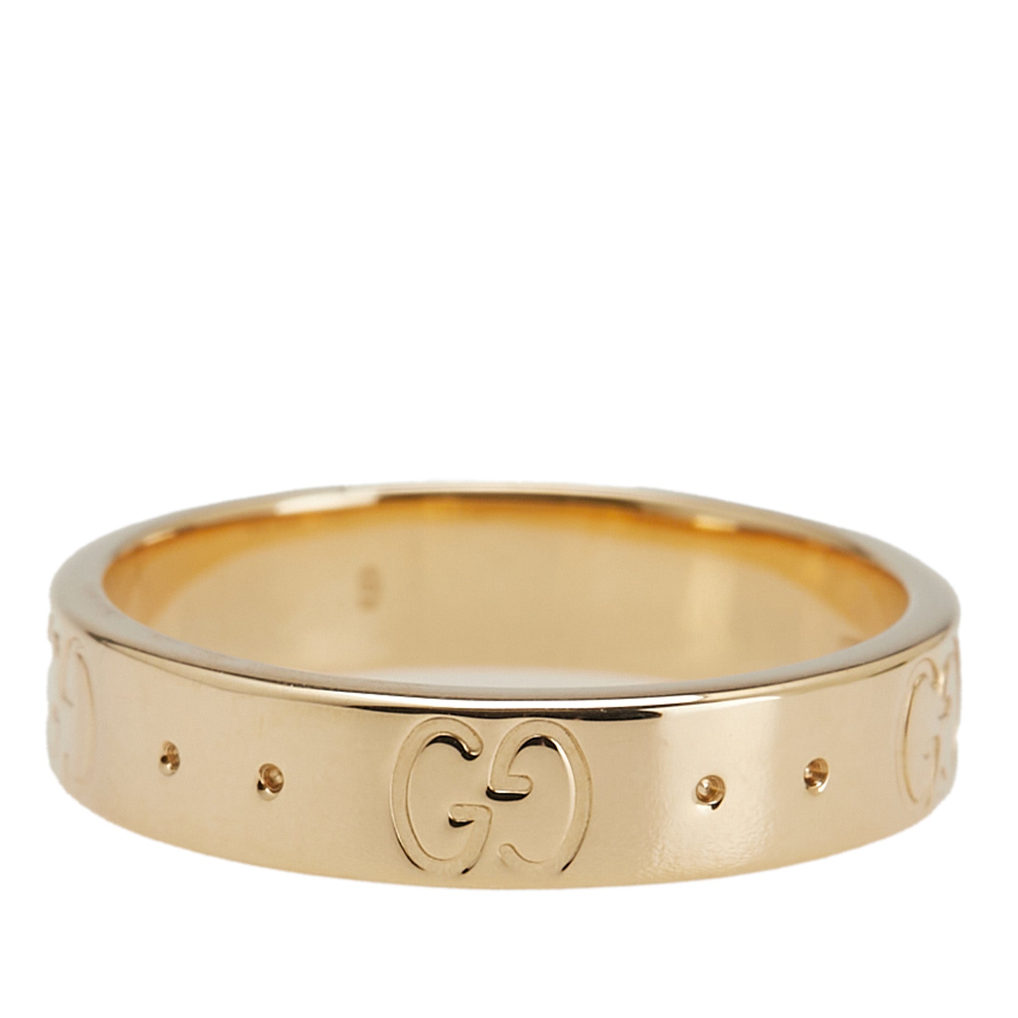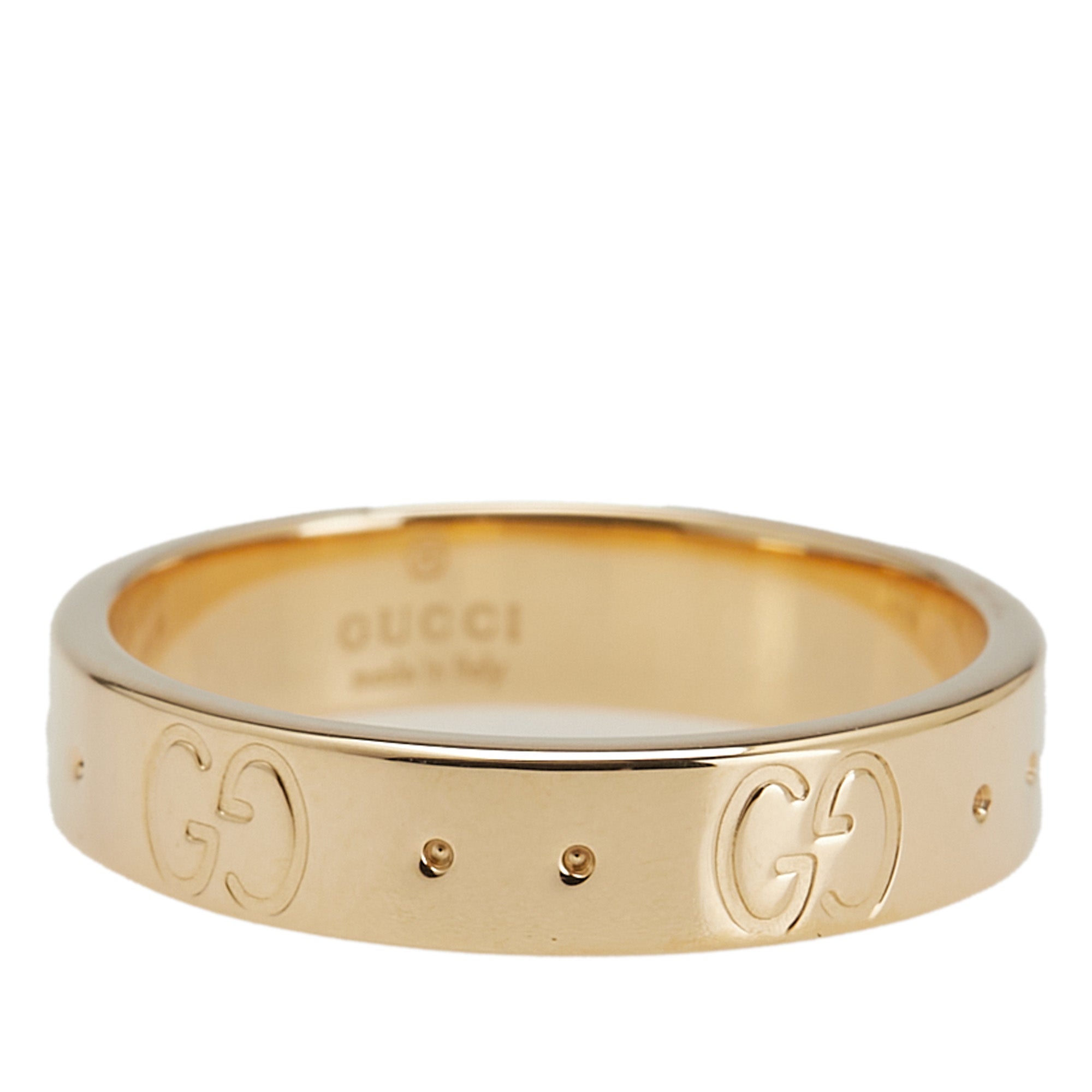 Product Details: Gold Gucci 18K Yellow Gold Icon Ring. This ring features a 18K yellow gold body 2.3" L x 0.6" W x 0" D.