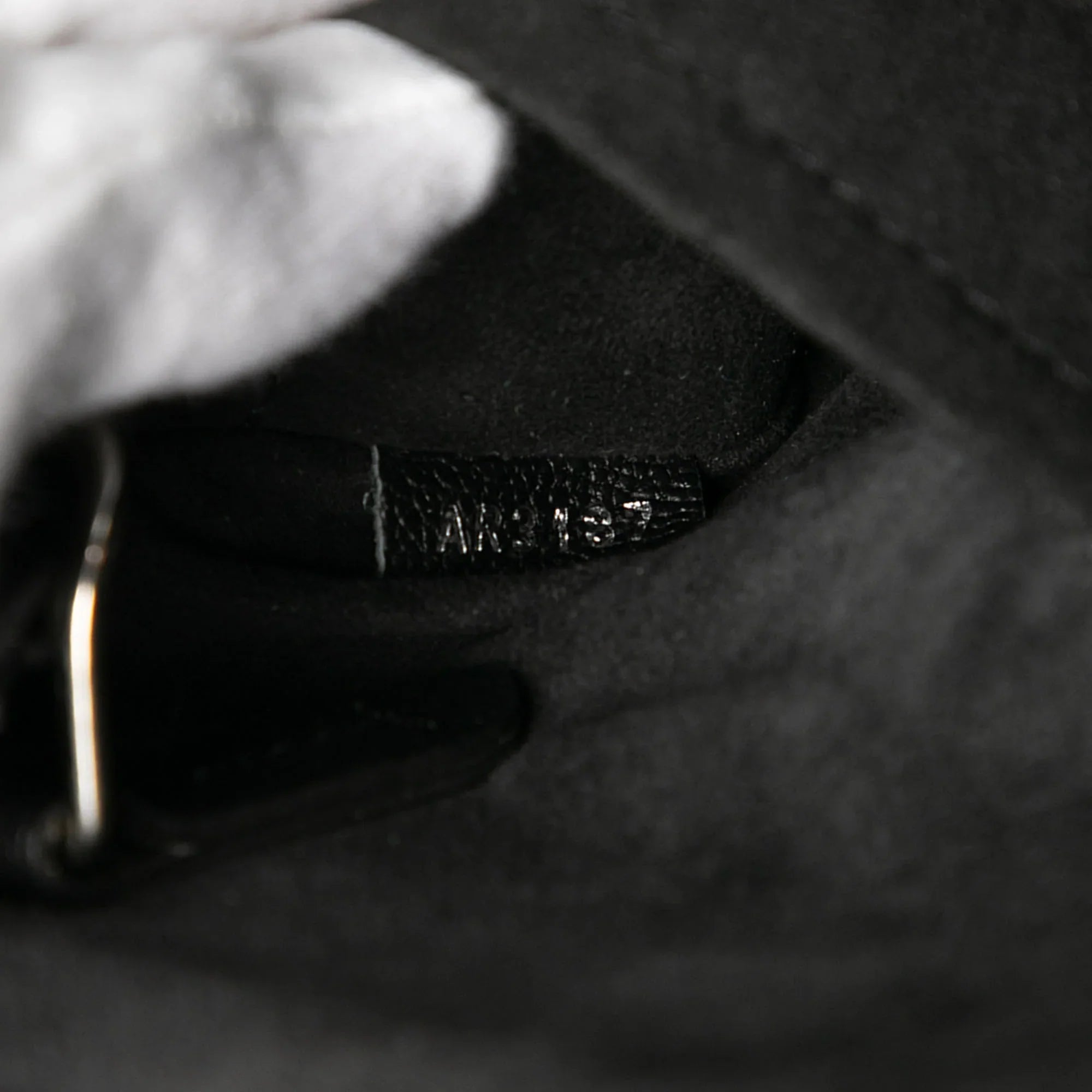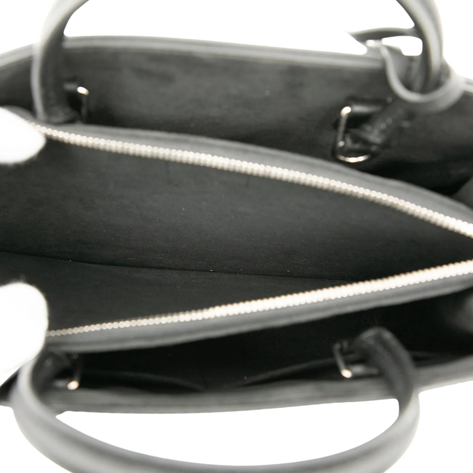 Product Details: Black Louis Vuitton Epi Twist Satchel. This satchel features an epi leather body, rolled leather handles, a detachable flat strap, an open top, an interior zip compartment, and interior slip pockets. 8.9" L x 12.2" W x 4.7" D, 4.3" drop. Serial number AR3187.