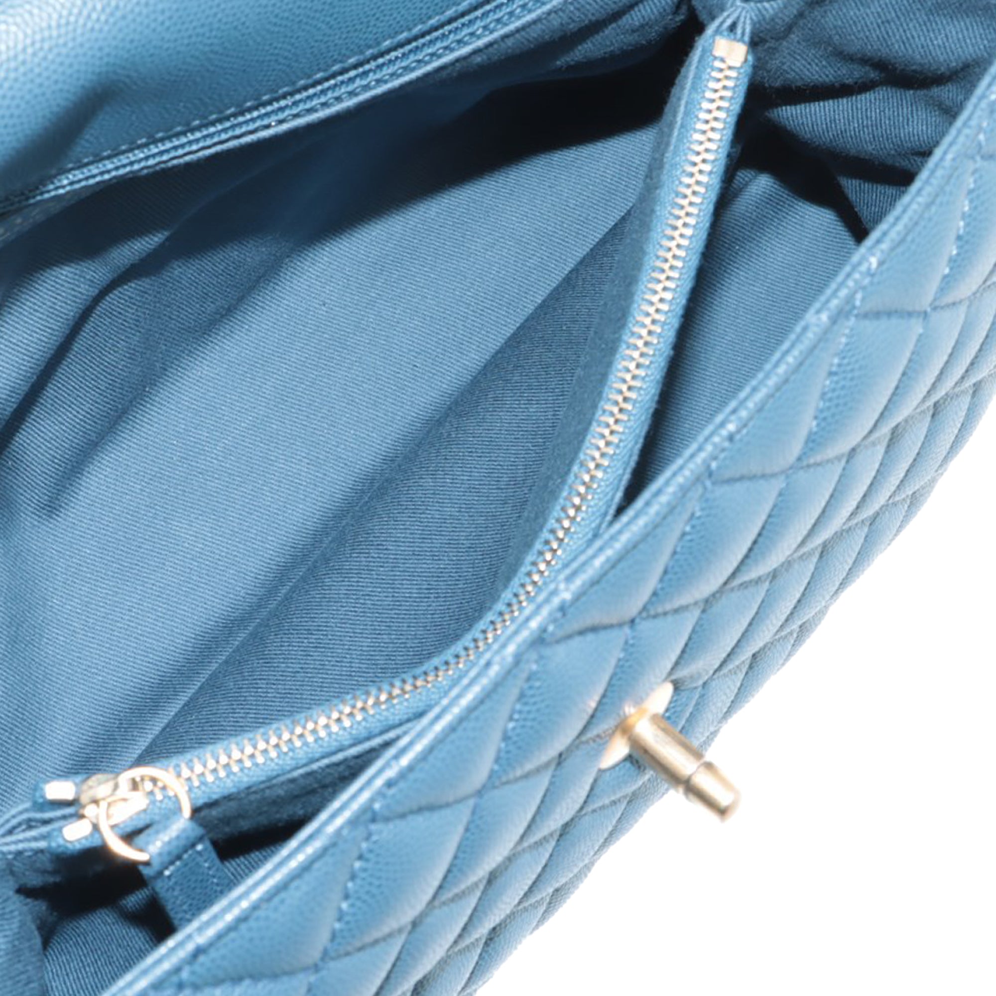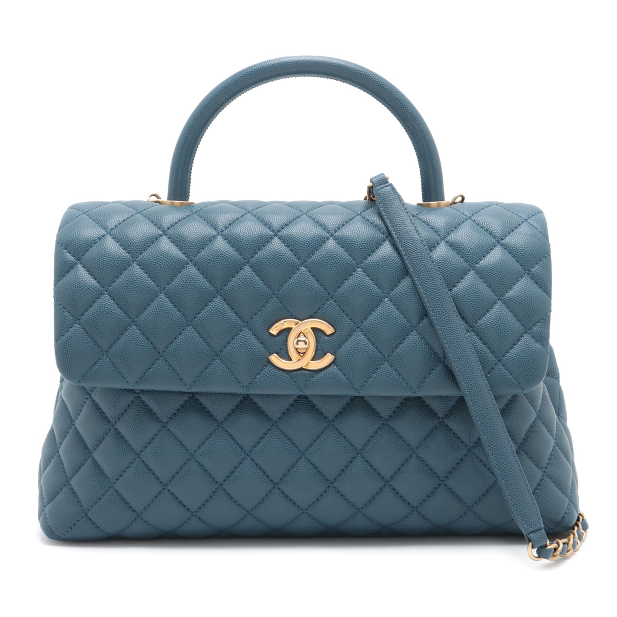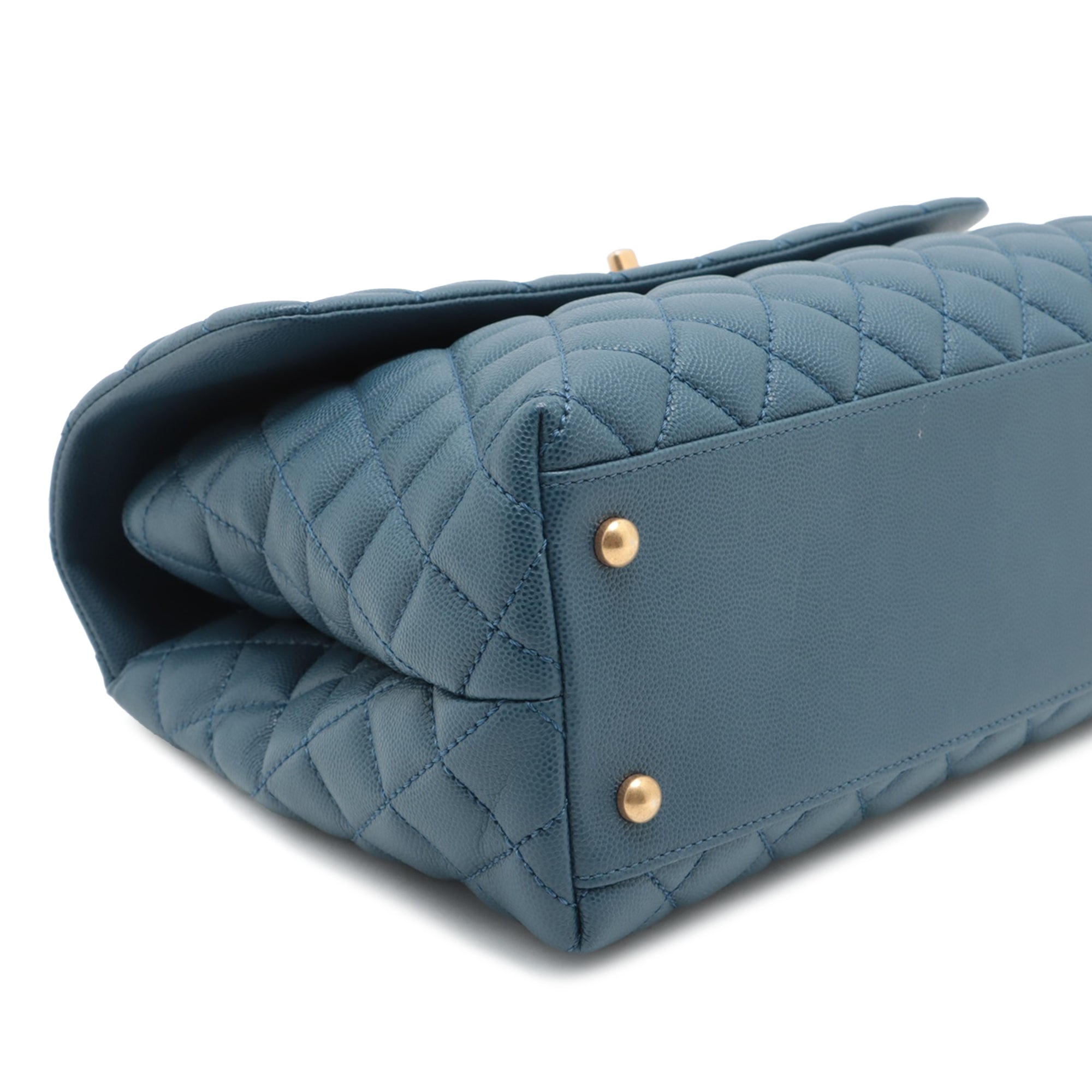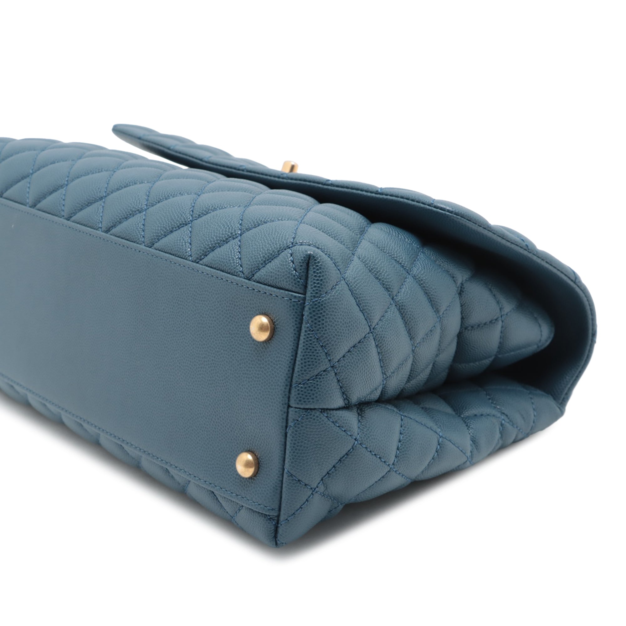 Blue Chanel Medium Quilted Caviar Coco Top Handle Bag Satchel