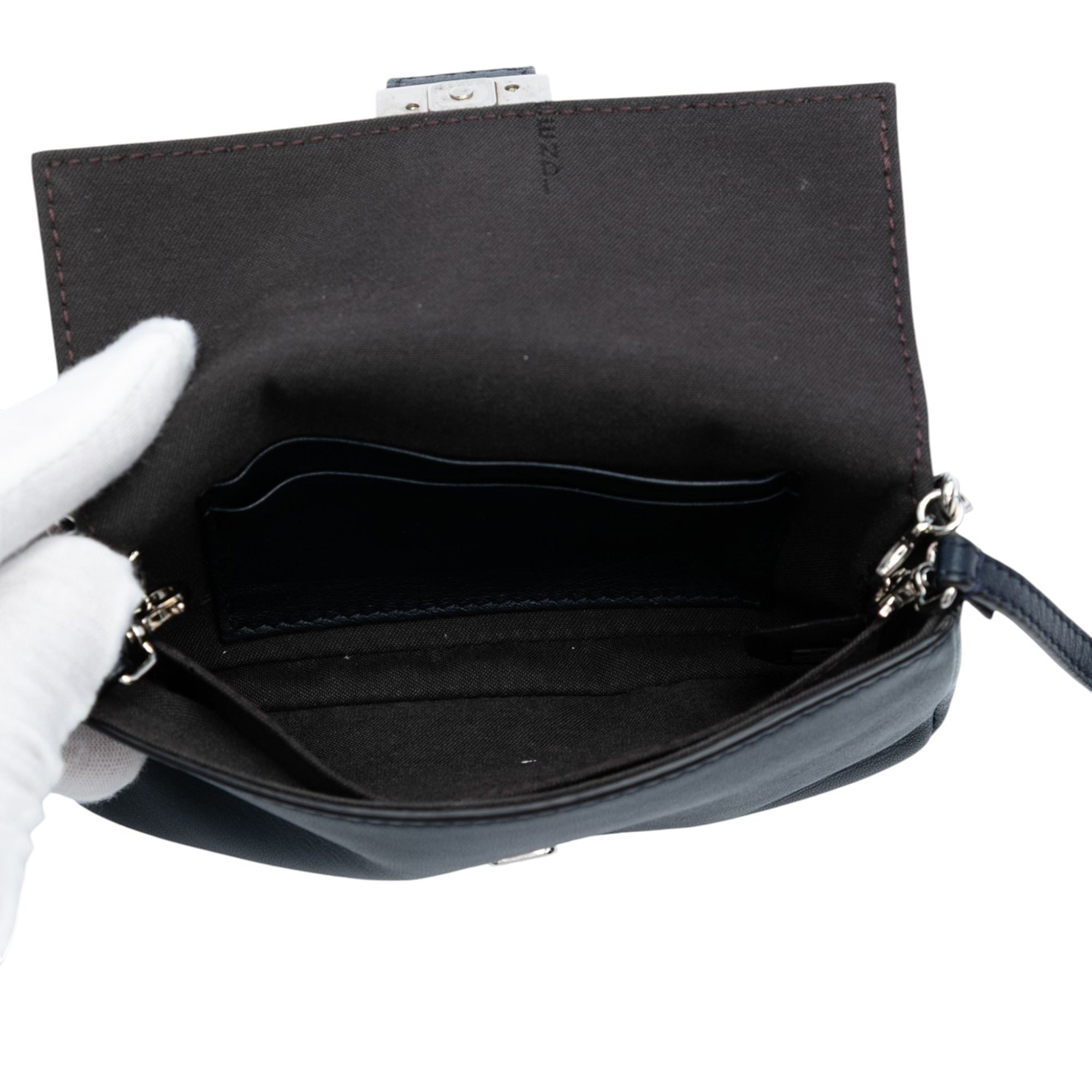 Please note this is a pre-owned item that may display signs of wear consistent with the condition listed above and shown in photos. Designer Revival guarantees this is an authentic Blue Fendi Micro Leather Baguette Satchel or 100% of your money back. Learn more about our authentication process.