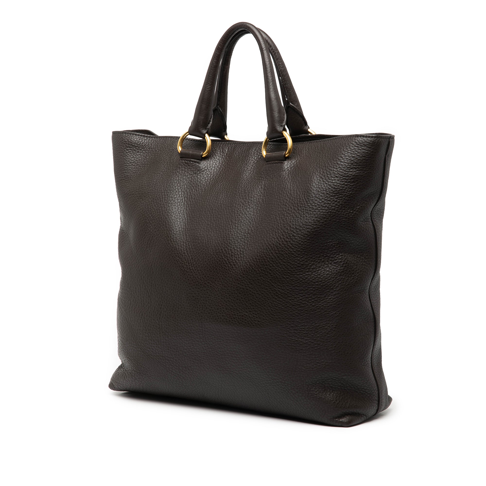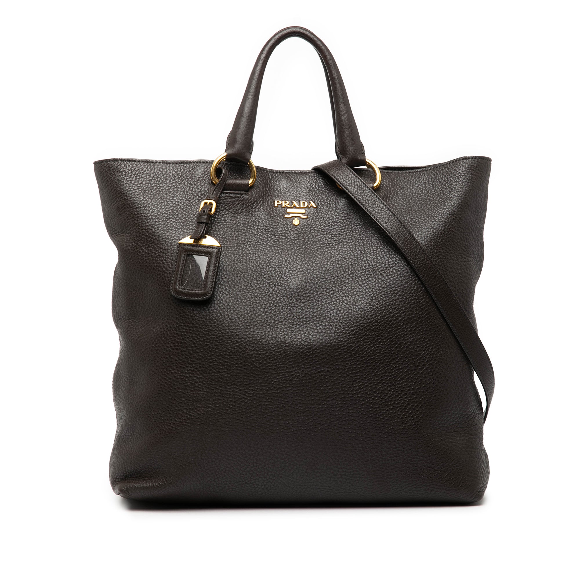 Brown Prada Vitello Daino Open Convertible Tote Satchel