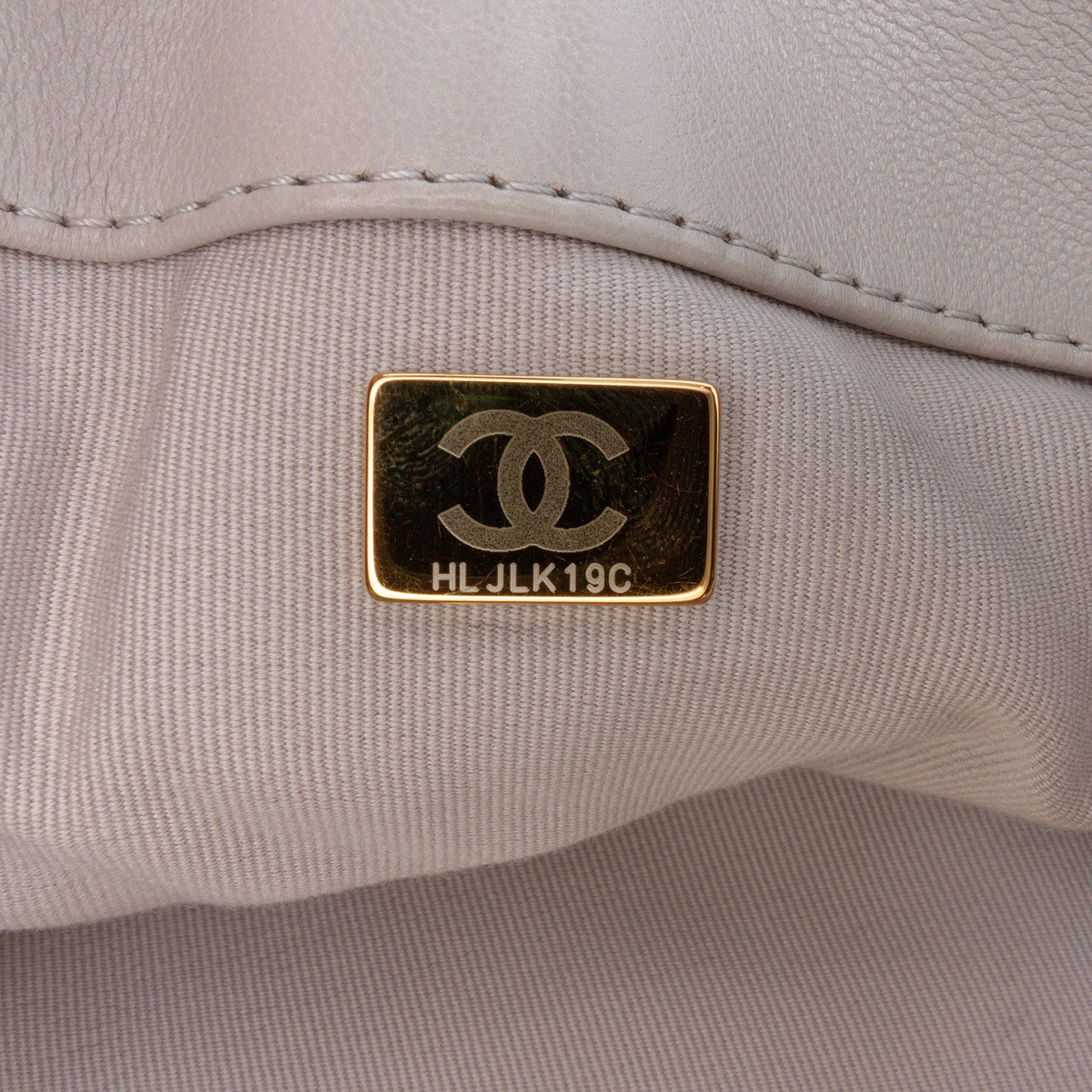 Please note this is a pre-owned item that may display signs of wear consistent with the condition listed above and shown in photos. Designer Revival guarantees this is an authentic Gray Chanel Large Lambskin 19 Flap Satchel or 100% of your money back. Learn more about our authentication process.