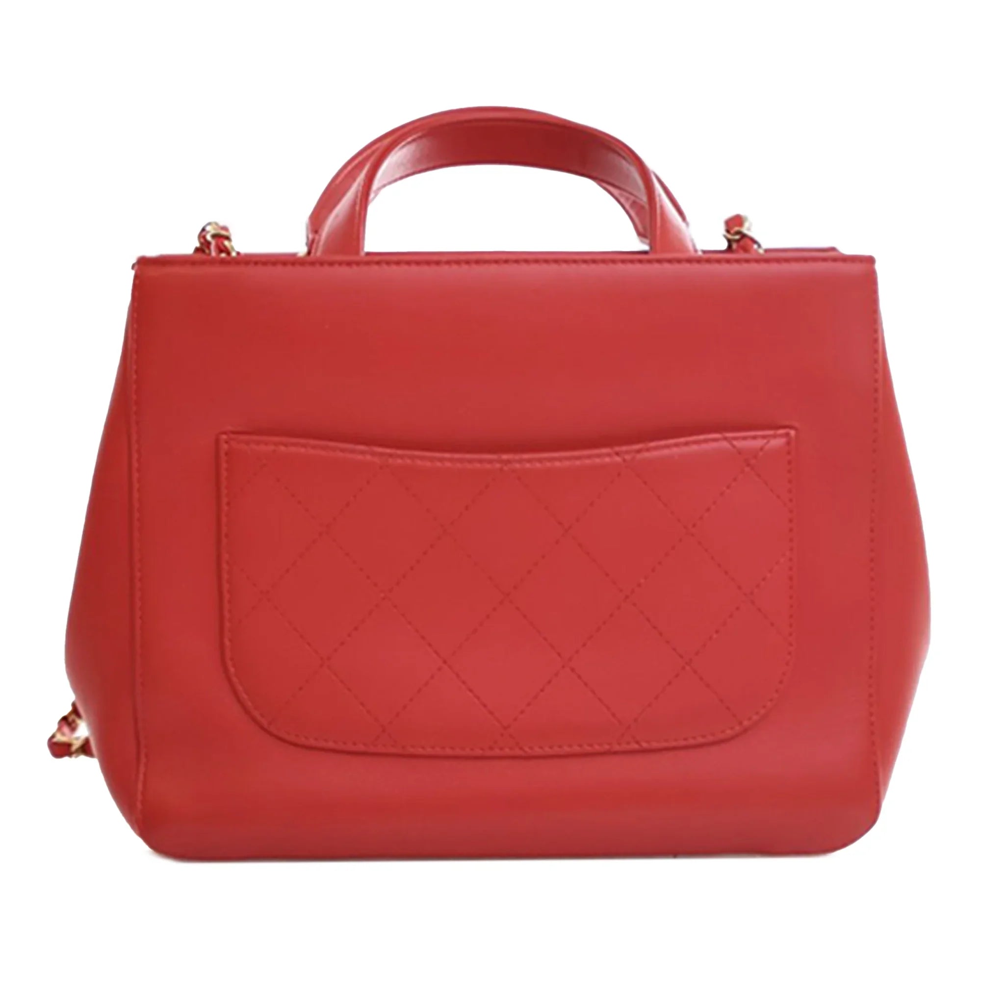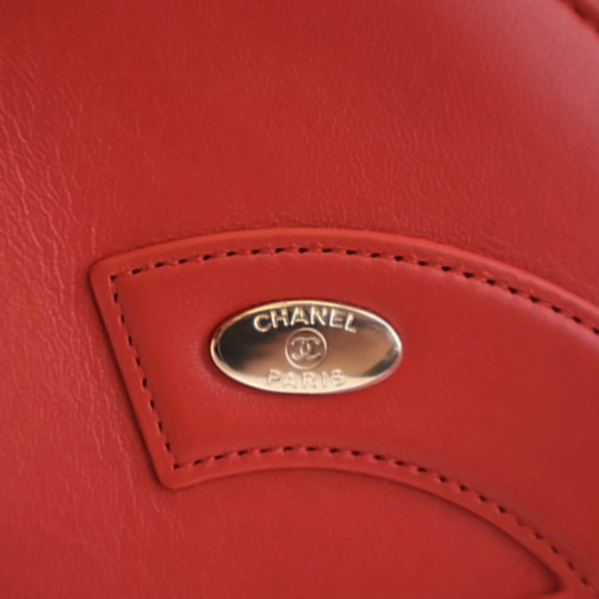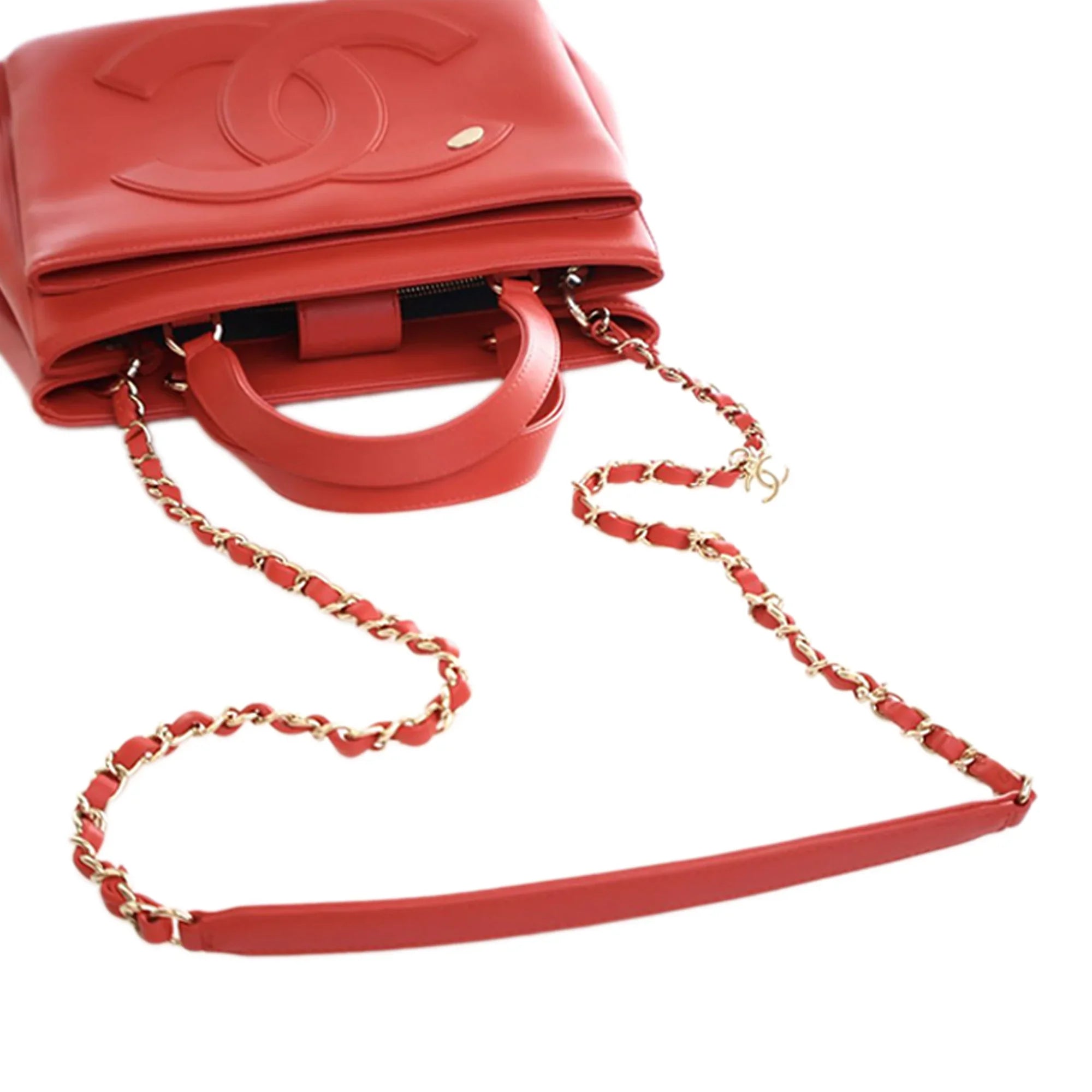 Red Chanel Small Lambskin CC Mania Shopping Tote Satchel