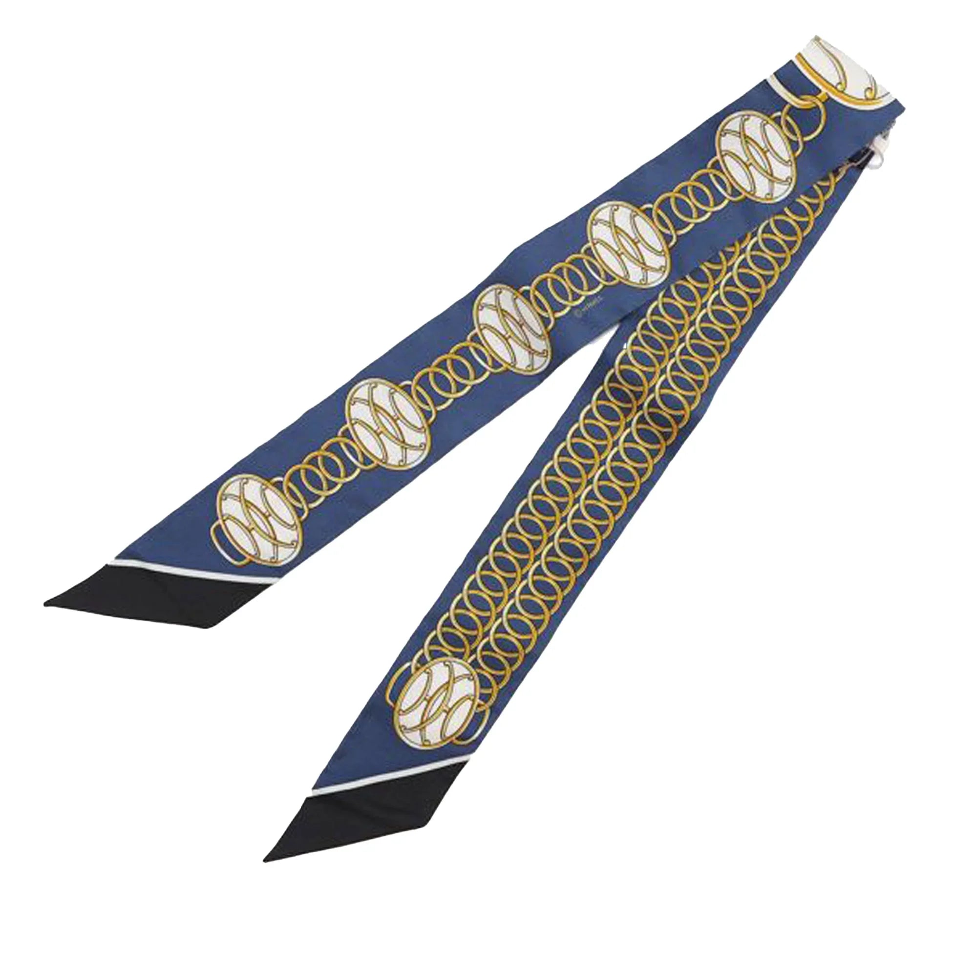 Blue Hermès Lift Profile Silk Twilly Scarf Scarves