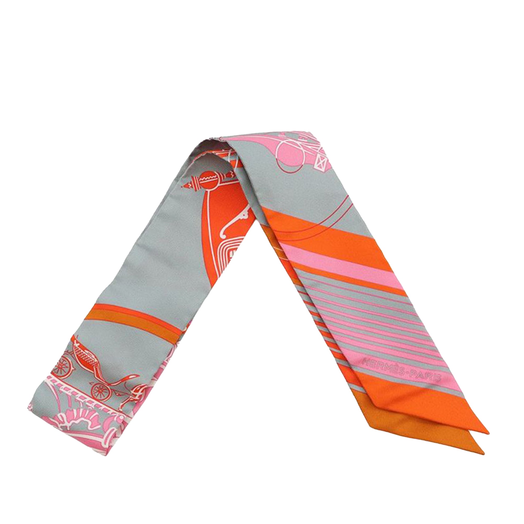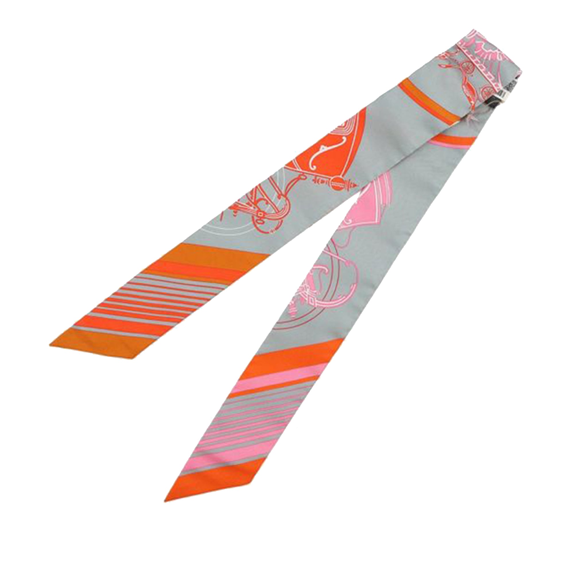 Gray Hermès Ex Libris Silk Twilly Scarf Scarves