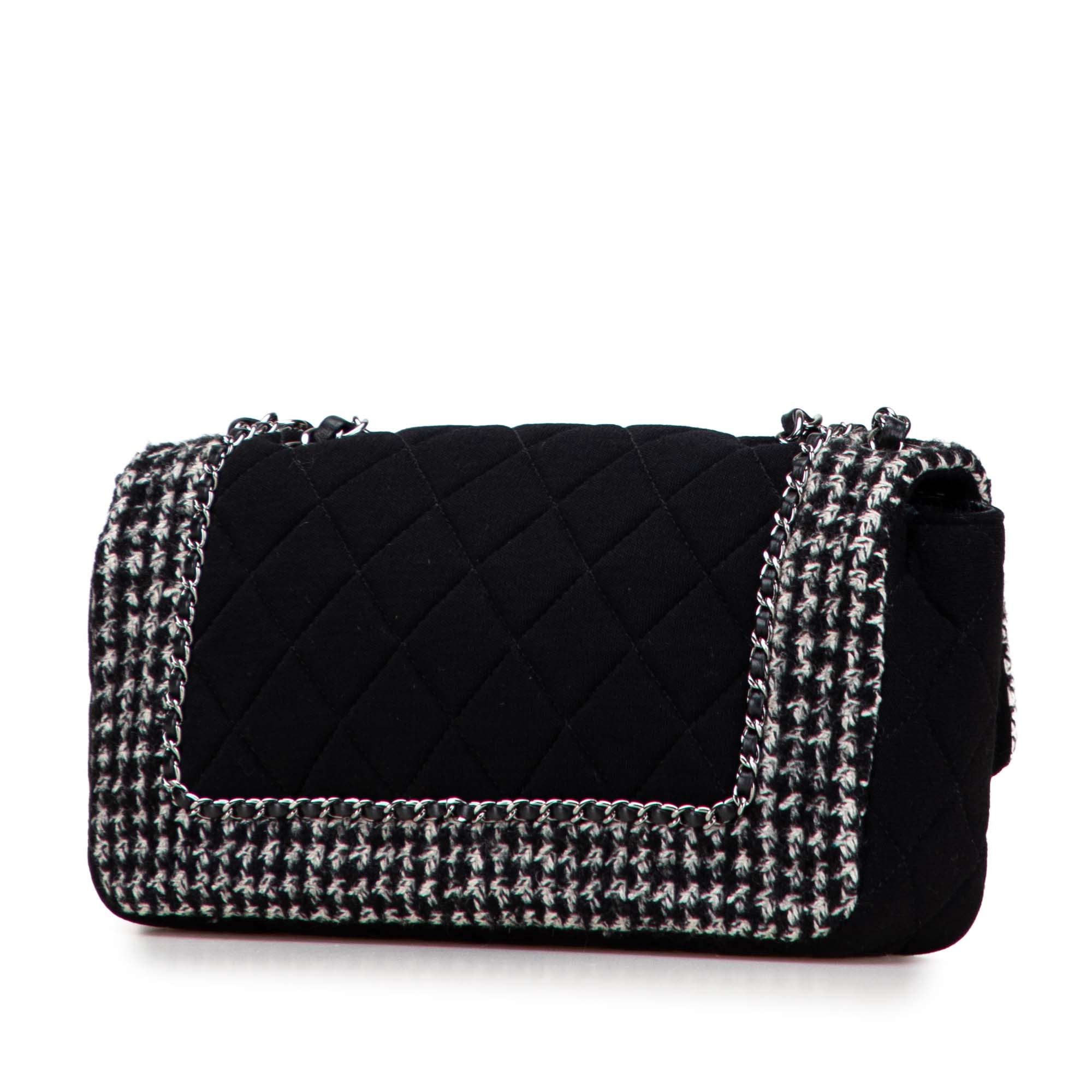 Black Chanel Medium Quilted Jersey and Tweed Chain Flap Shoulder Bag