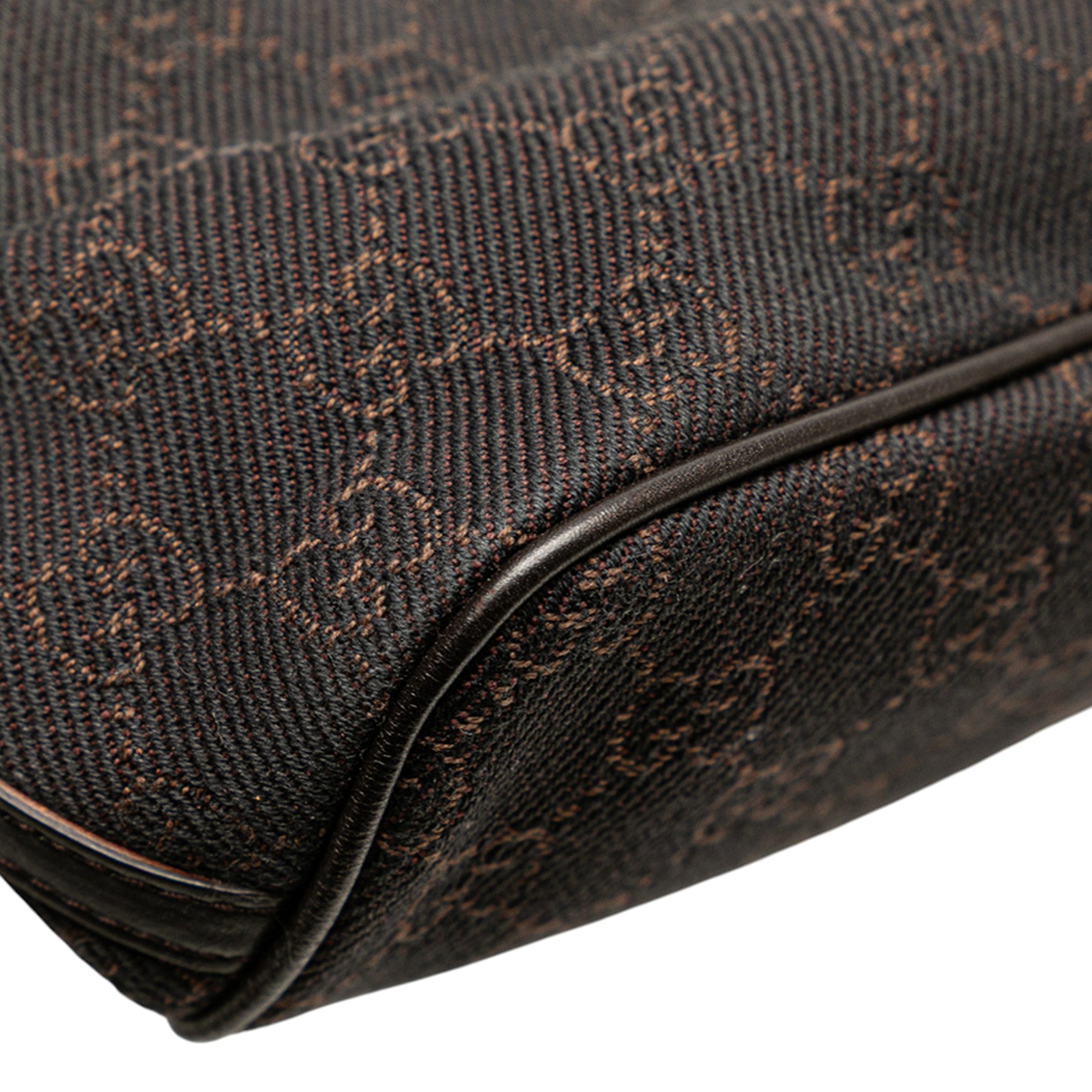 Please note this is a pre-owned item that may display signs of wear consistent with the condition listed above and shown in photos. Designer Revival guarantees this is an authentic Brown Gucci GG Denim Boat Shoulder Bag or 100% of your money back. Learn more about our authentication process.