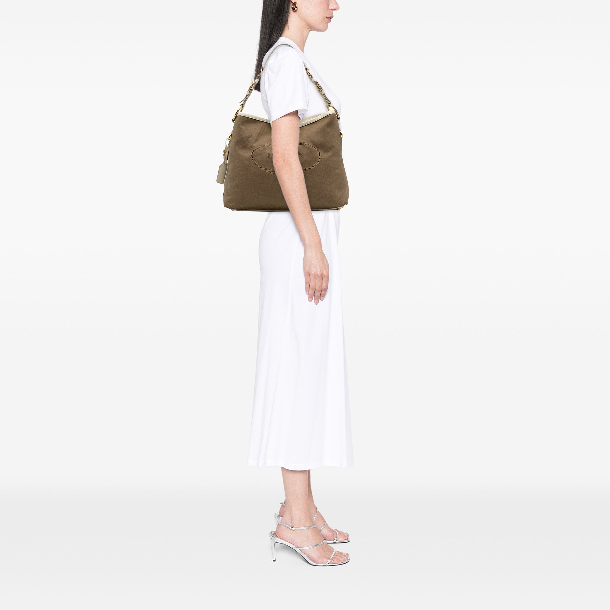 Brown Prada Canvas Canapa Logo Shoulder Bag