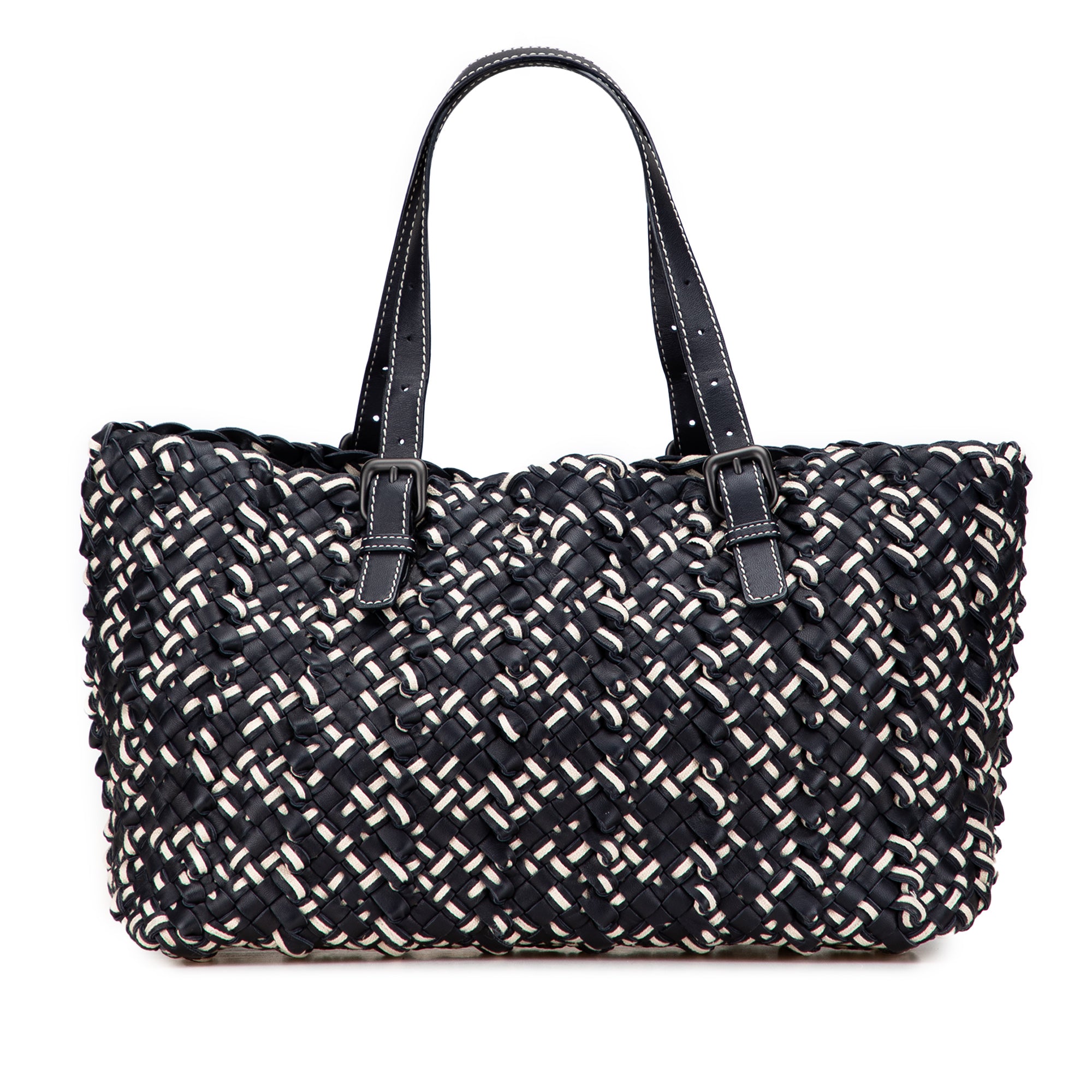 Black Bottega Veneta Large Leather Intrecciato Lido Tote