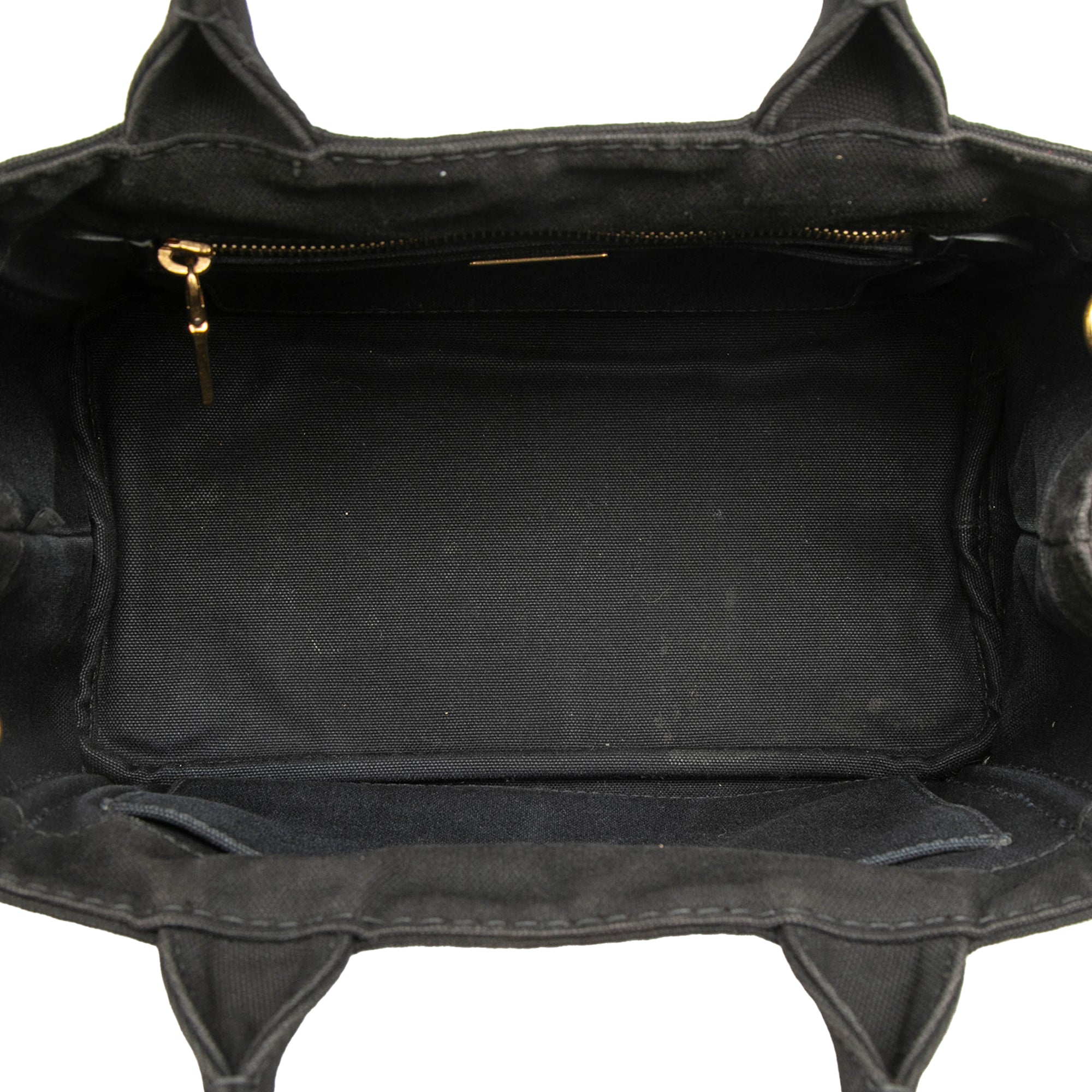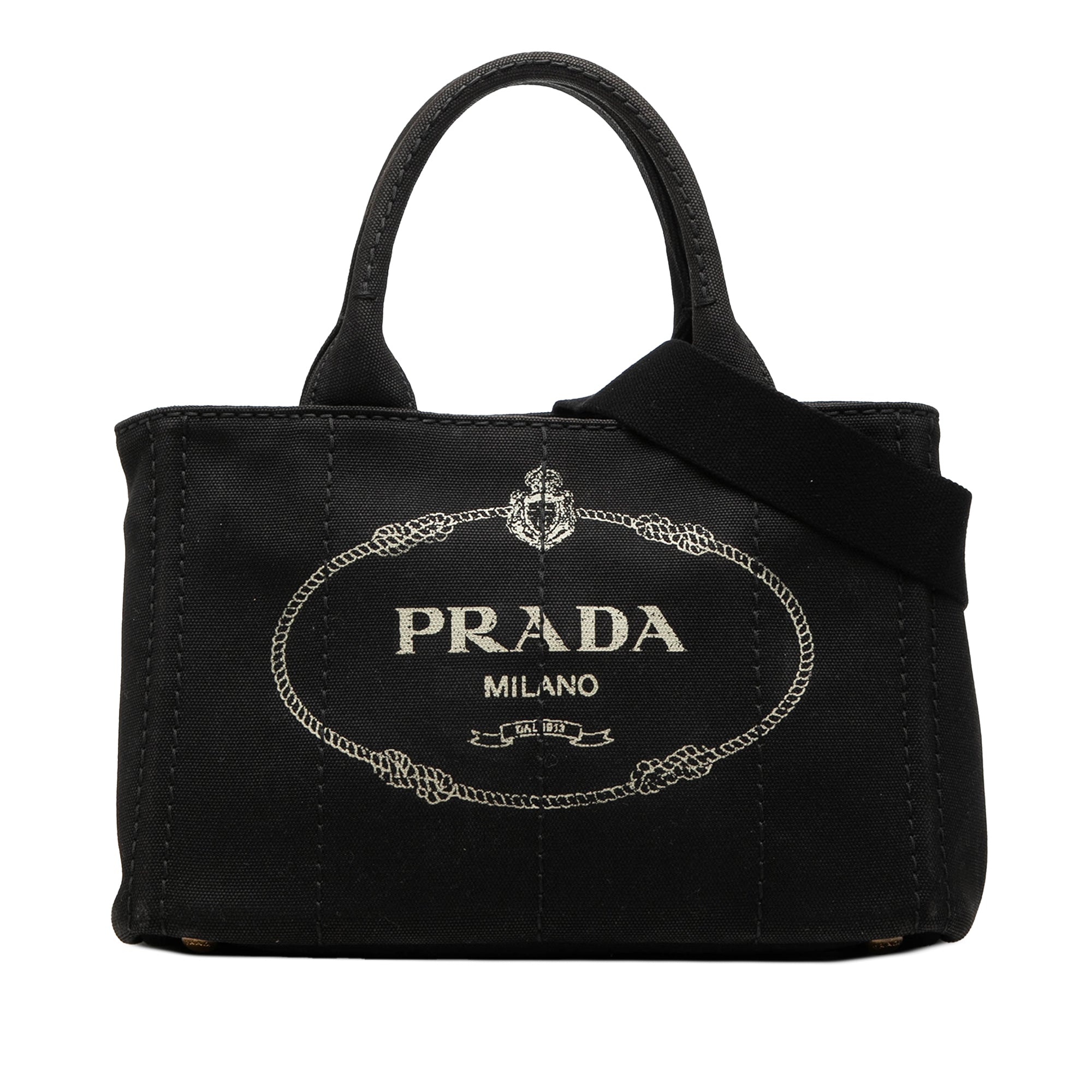 Please note this is a pre-owned item that may display signs of wear consistent with the condition listed above and shown in photos. Designer Revival guarantees this is an authentic Black Prada Small Canvas Canapa Logo Satchel or 100% of your money back. Learn more about our authentication process.
