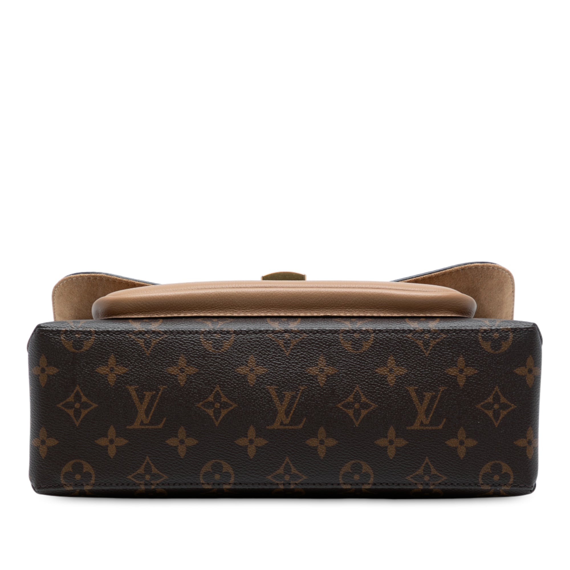Product Details: Brown Louis Vuitton Monogram Marignan Satchel. The Marignan features a monogram canvas body, a rolled leather top handle, a detachable and adjustable flat leather shoulder strap, a front flap with magnetic snap closure, and interior slip pockets. 8.7" L x 11.2" W x 4.7" D, 3.5" drop. Serial number AR2280.