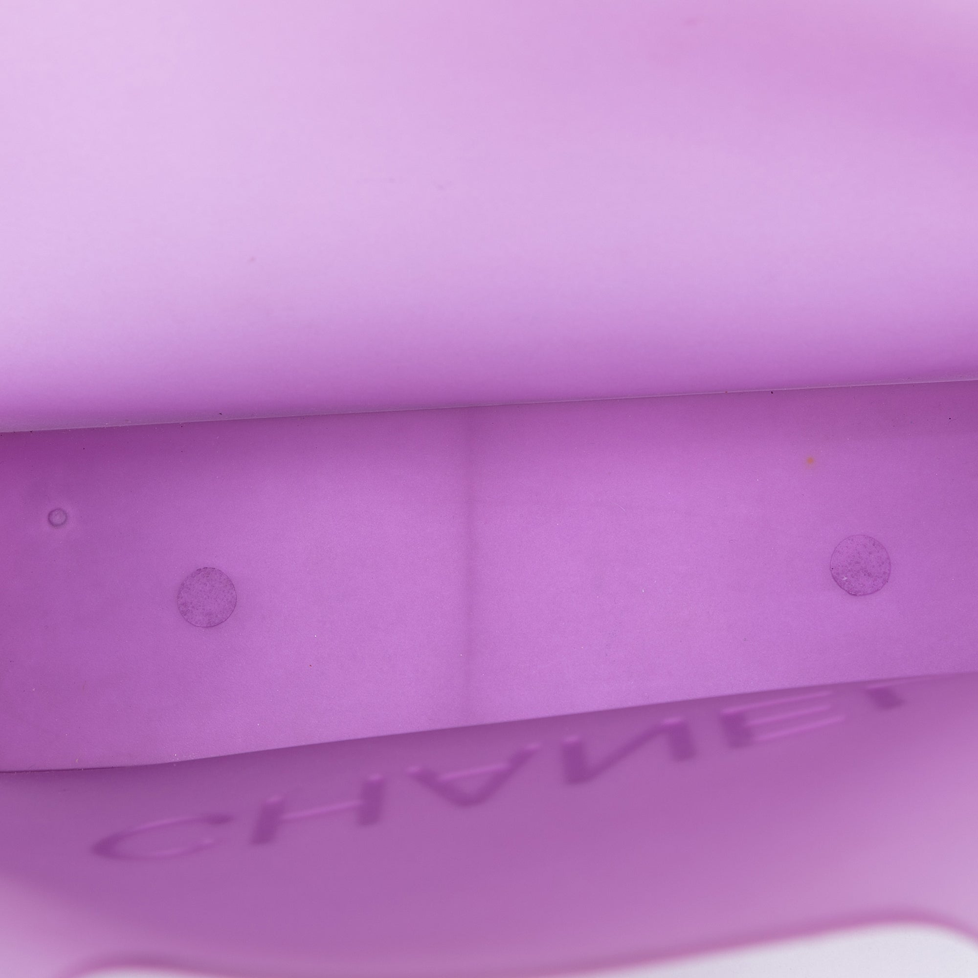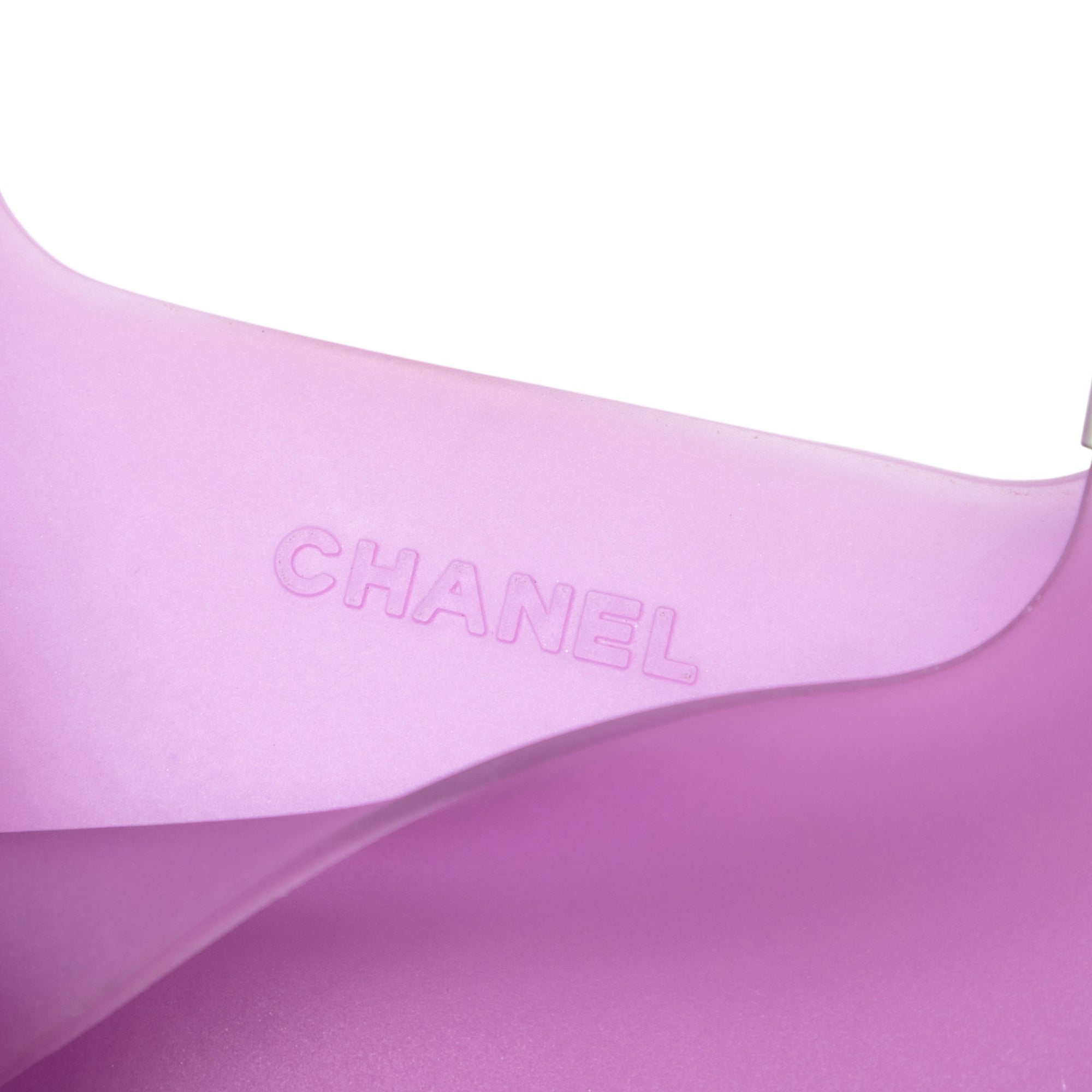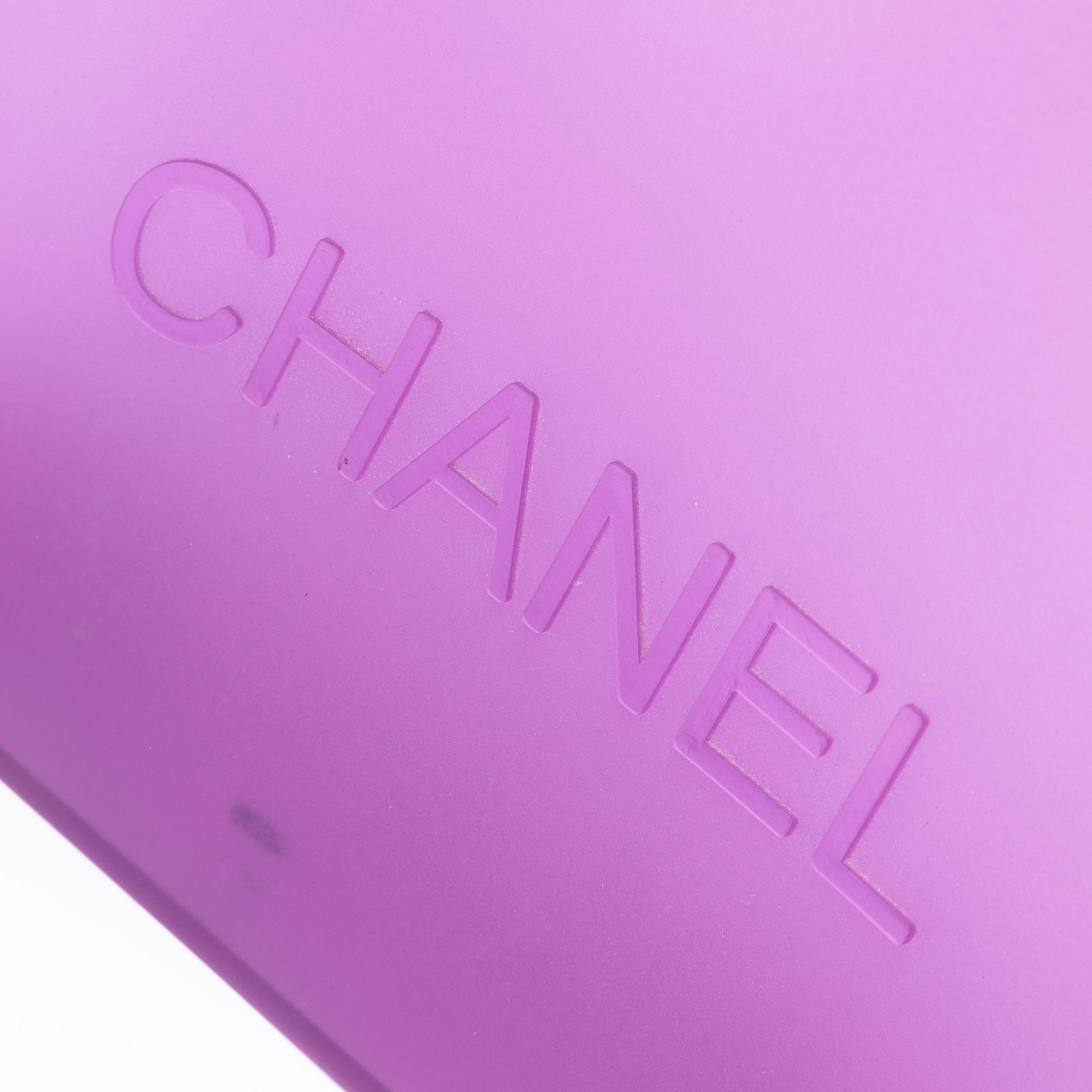 Please note this is a pre-owned item that may display signs of wear consistent with the condition listed above and shown in photos. Designer Revival guarantees this is an authentic Purple Chanel Small Rubber Logo Jelly Tote or 100% of your money back. Learn more about our authentication process.