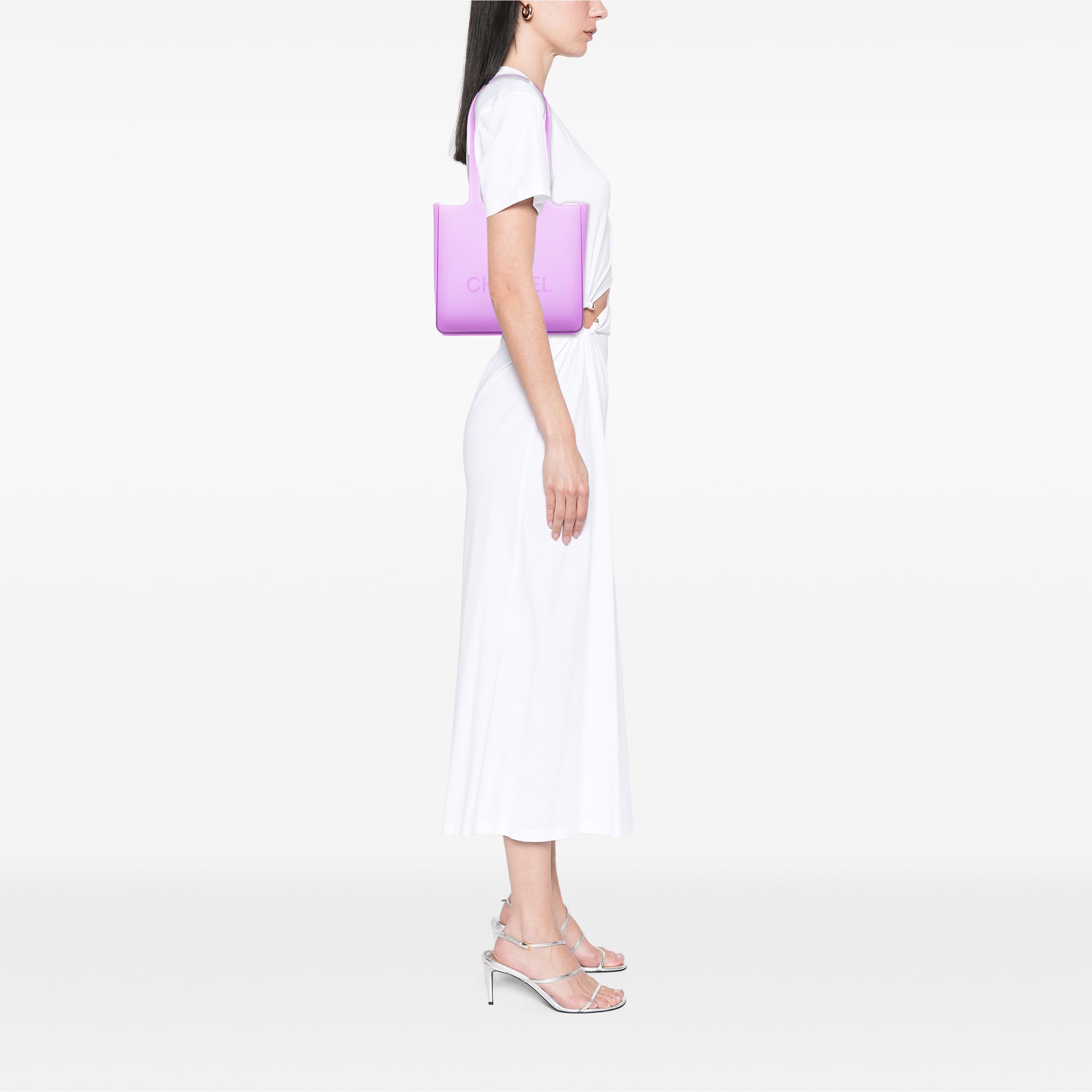 Purple Chanel Small Rubber Logo Jelly Tote