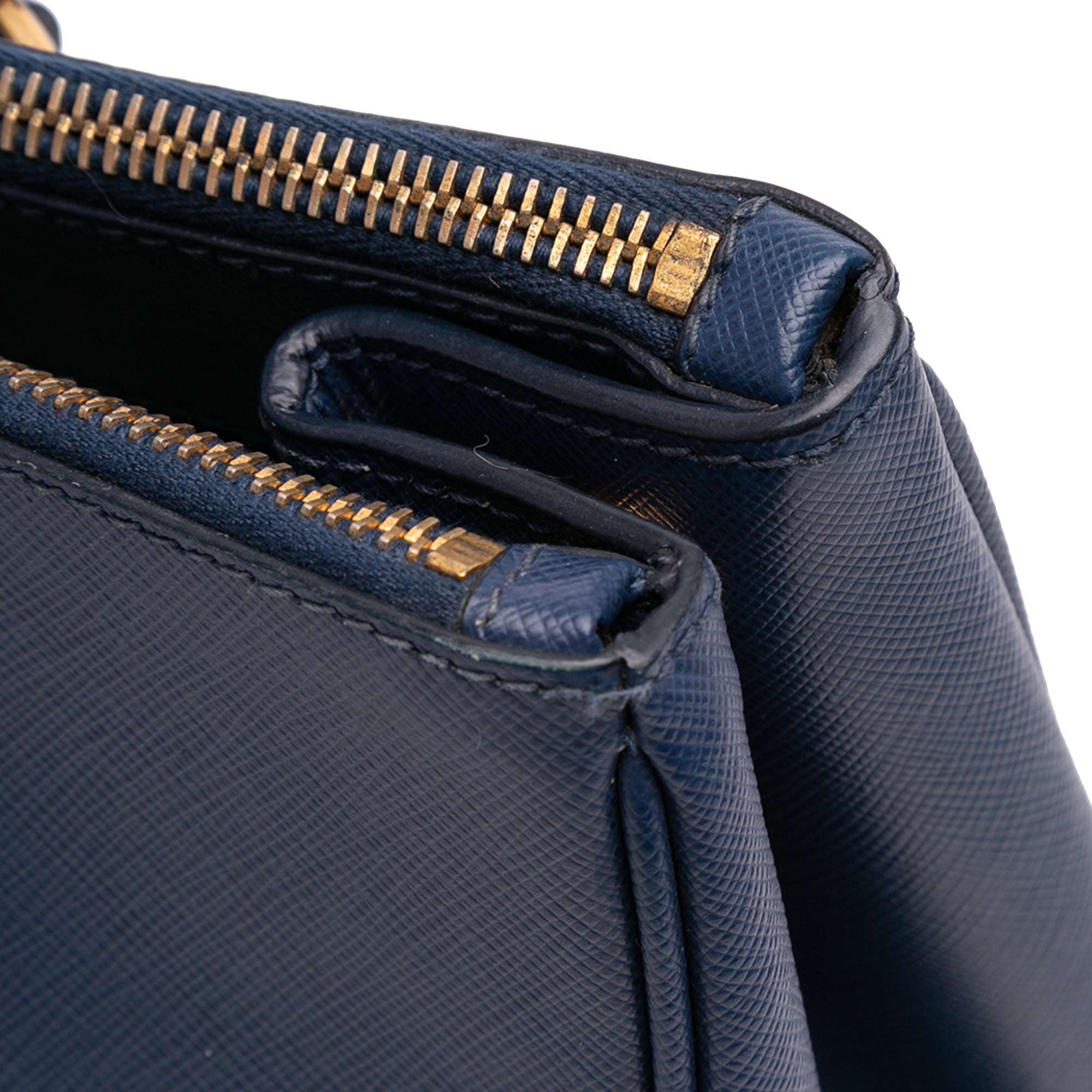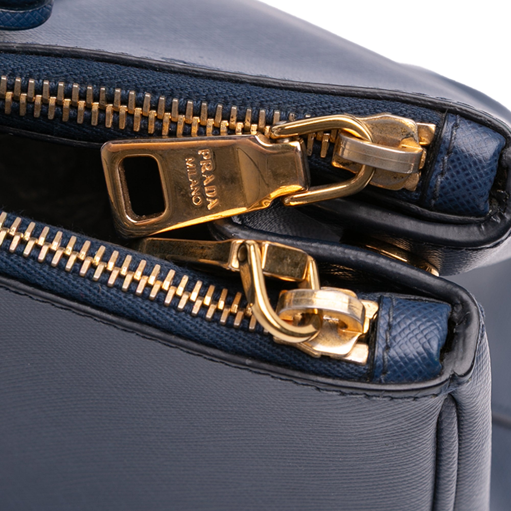 Blue Prada Medium Saffiano Lux Galleria Double Zip Satchel