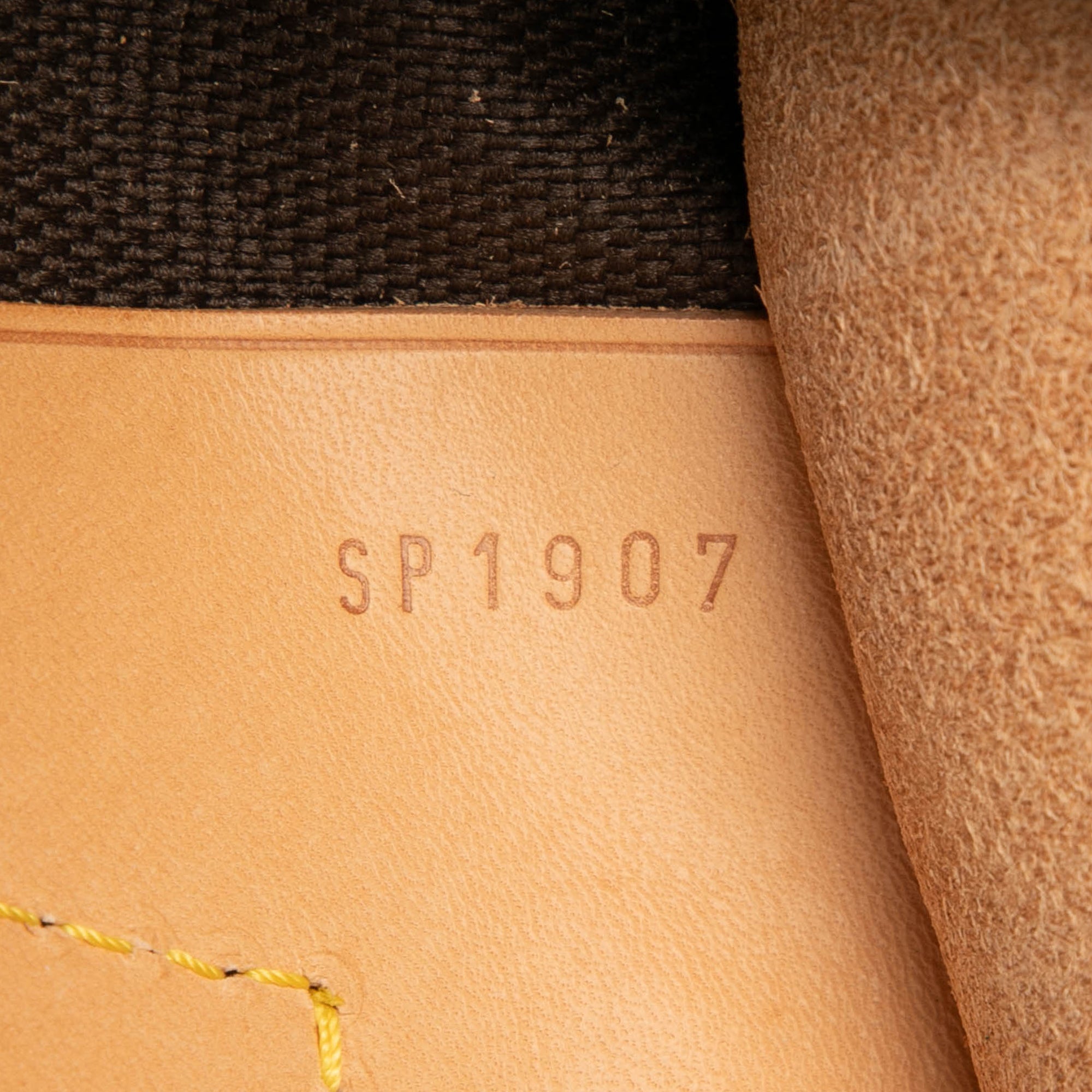 Product Details: Brown Louis Vuitton Monogram Housse Porte Habits Garment Cover Travel Bag. This garment bag features a monogram canvas body with vachetta leather trim, rolled vachetta leather handles, a top strap with snap closure, and a middle zip compartment. 20.1" L x 24.8" W x 0.4" D, 2.8" drop. Serial number SP1907.