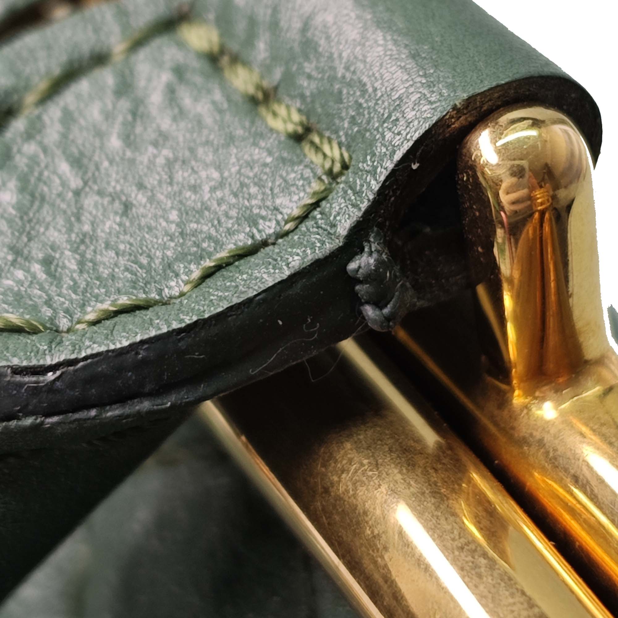 Please note this is a pre-owned item that may display signs of wear consistent with the condition listed above and shown in photos. Designer Revival guarantees this is an authentic Green Chanel Small Quilted Calfskin Colosseum Lock Frame Bowling Bag Satchel or 100% of your money back. Learn more about our authentication process.